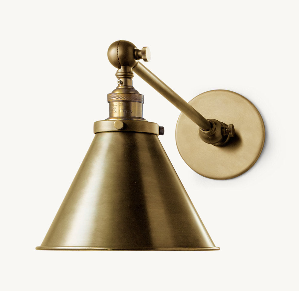 Reflecting the industrial aesthetic of the early 20th century, our library sconce is a classic of the genre. Designed for versatility, it directs light downward toward reading materials, yet its double joints also increase its range.