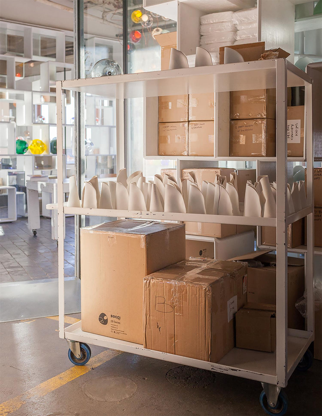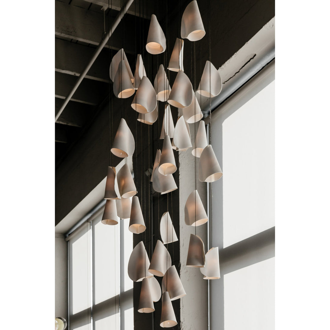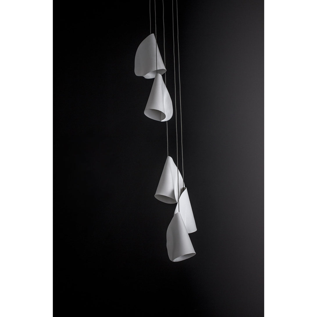The 21 series is the result of a unique process in which thin sheets of porcelain are hand-formed into intricate, organic structures. Each piece is naturally formed, resulting in a distinctive shape for each iteration. The porcelain is left unglazed on the outside, while the inside is glazed to a clean finish.