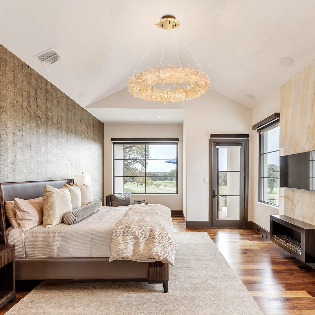 This geode quartz crystal chandelier will undoubtedly make a statement in any room with its awe-inspiring design. The delicate, natural Geode Quartz Crystal is carefully cut and polished to emphasize its natural beauty, creating an ethereal glow when lit up with dimmable LED 3000K lighting. This modern chandelier is available in various sizes, including 60cm, 80cm, 100cm, and 120cm, or it can be custom-made to your preferred size, suitable for any room like foyer, living room, or bedroom.