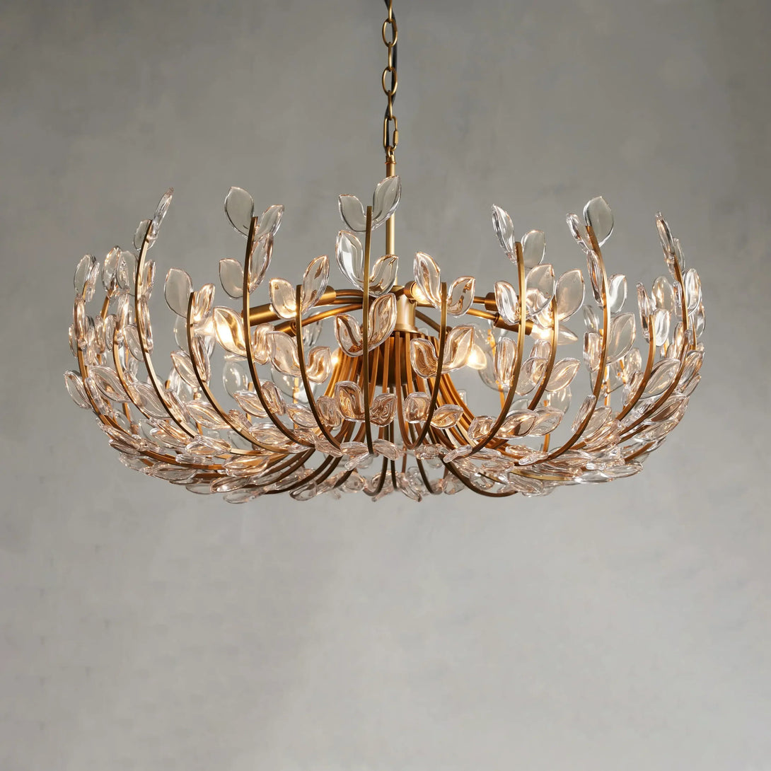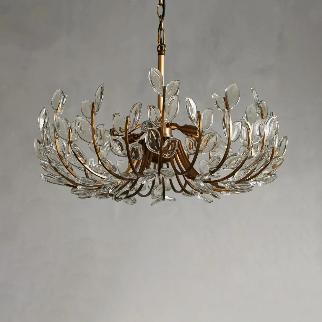Handcrafted from steel with brass plating, Adela scatters light through its beautiful glass petals. A lovely statement for any living space, softly sculpted petals create an organic feel, while steel branches secure the canopy and provide structure to the piece.