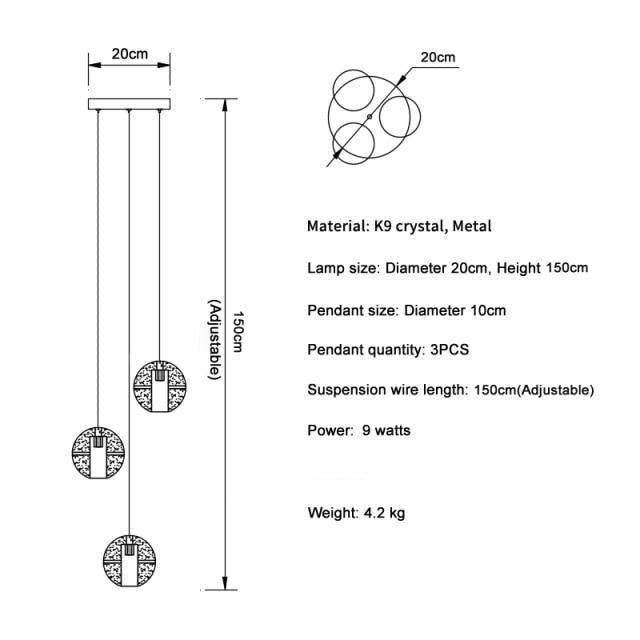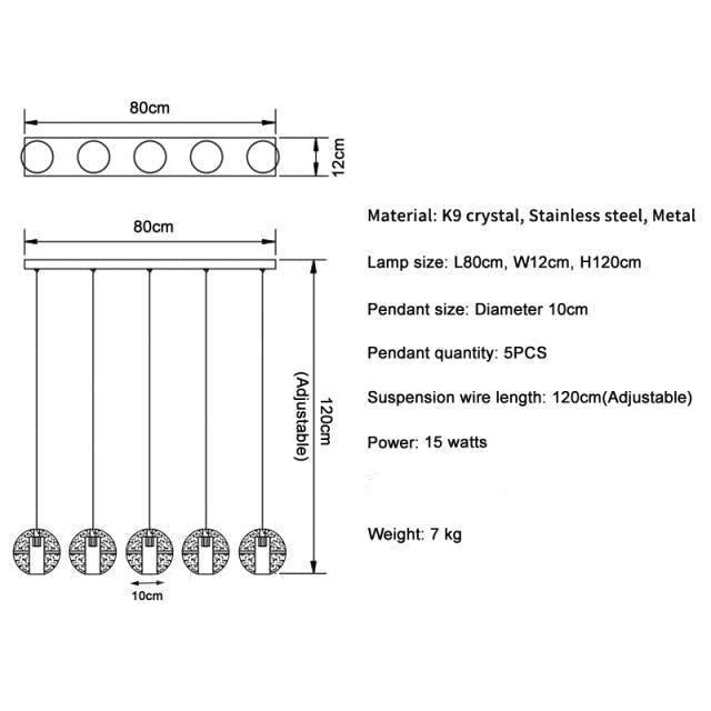 Give your 2-story staircase or tall ceiling a modern look with this chandelier. The globe lights appear to suspend in the air loosely which gives the illusion of floating orbs. The globes are made of clear crystal and use a G4 type bulb. The canopy is made of polished steel. See the diagrams for the different styles and measurements. |