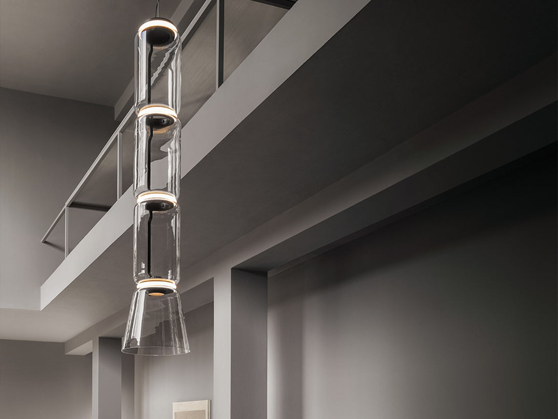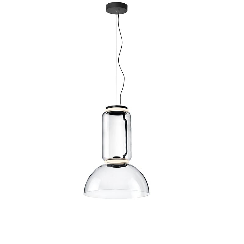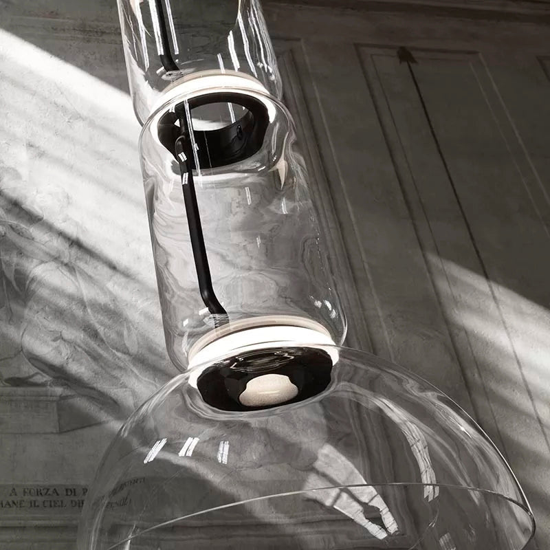 Composed of a cylindrical body and one, two, or three hand-blown transparent crystal half-spheres, it amazes with its perfect transparency: on, it reveals a warm bulb whose intensity you can modulate; off, it catches the rays of the sun.