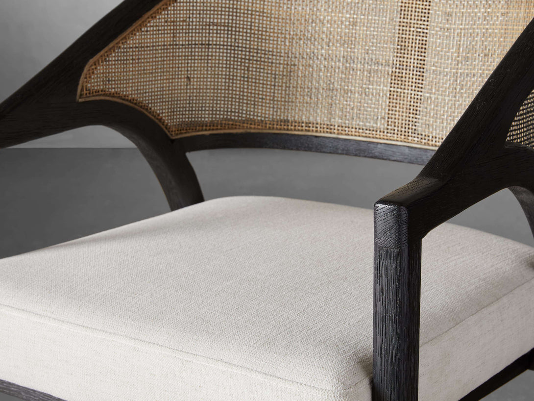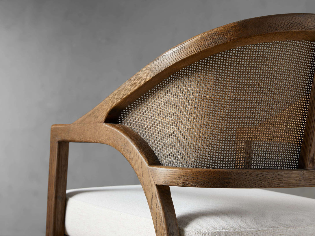 With its gently curved backrest, wickerwork craftsmanship, and stylish bell-shaped legs, our Aimee dining table series is meticulously crafted to blend classic French antique furniture with iconic mid-century modern design. Each frame is made of solid oak and paired with thick, comfortable cushions to provide a warm and cozy experience that perfectly complements any home décor style.