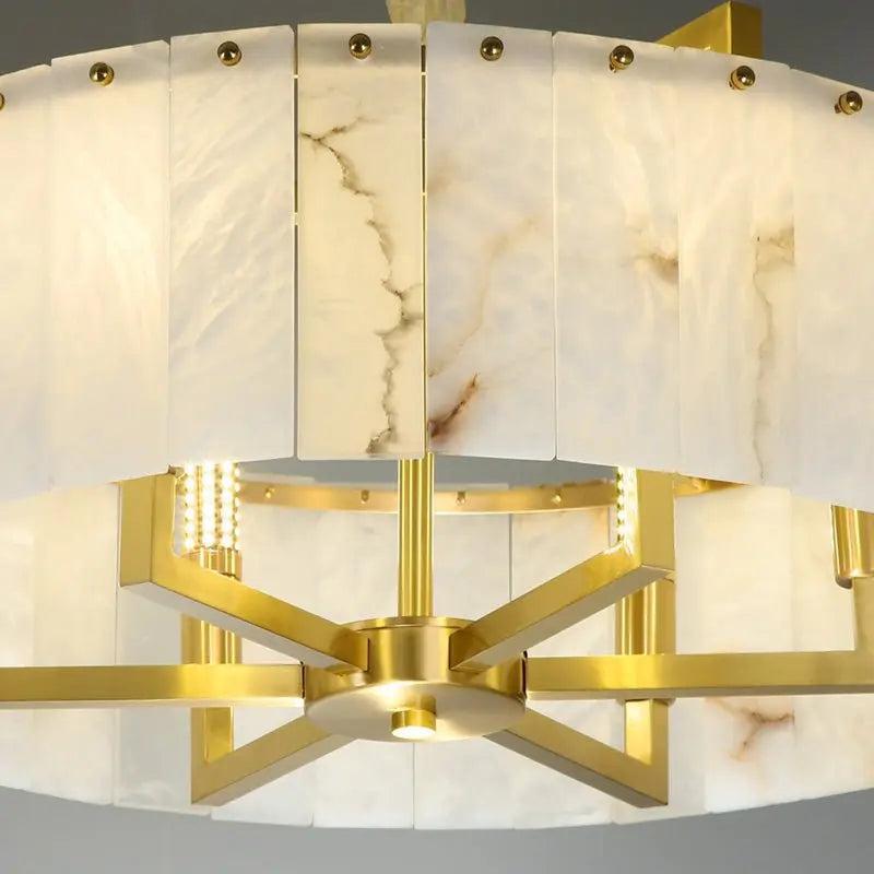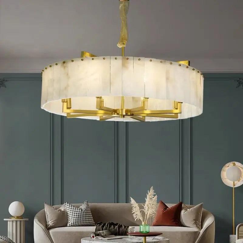 This Alabaster Brass Round Chandelier Lighting is the perfect addition to any home. Its classic design features an elegant alabaster hue and solid brass construction. making it both stylish and sturdy. Perfect for illuminating any room with a warm. welcoming light. |