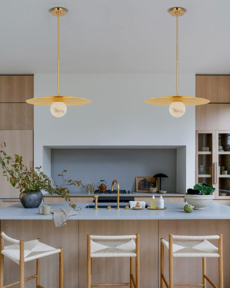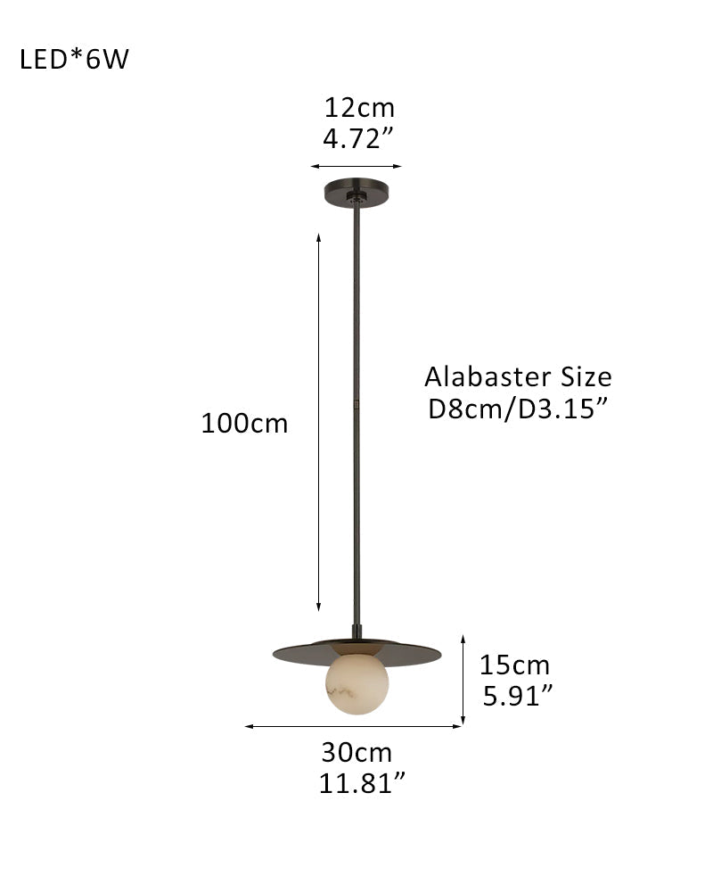 Alabaster Globes LED Disc Pendant Light in Lacquered Brass/Bronze Stainless Frame