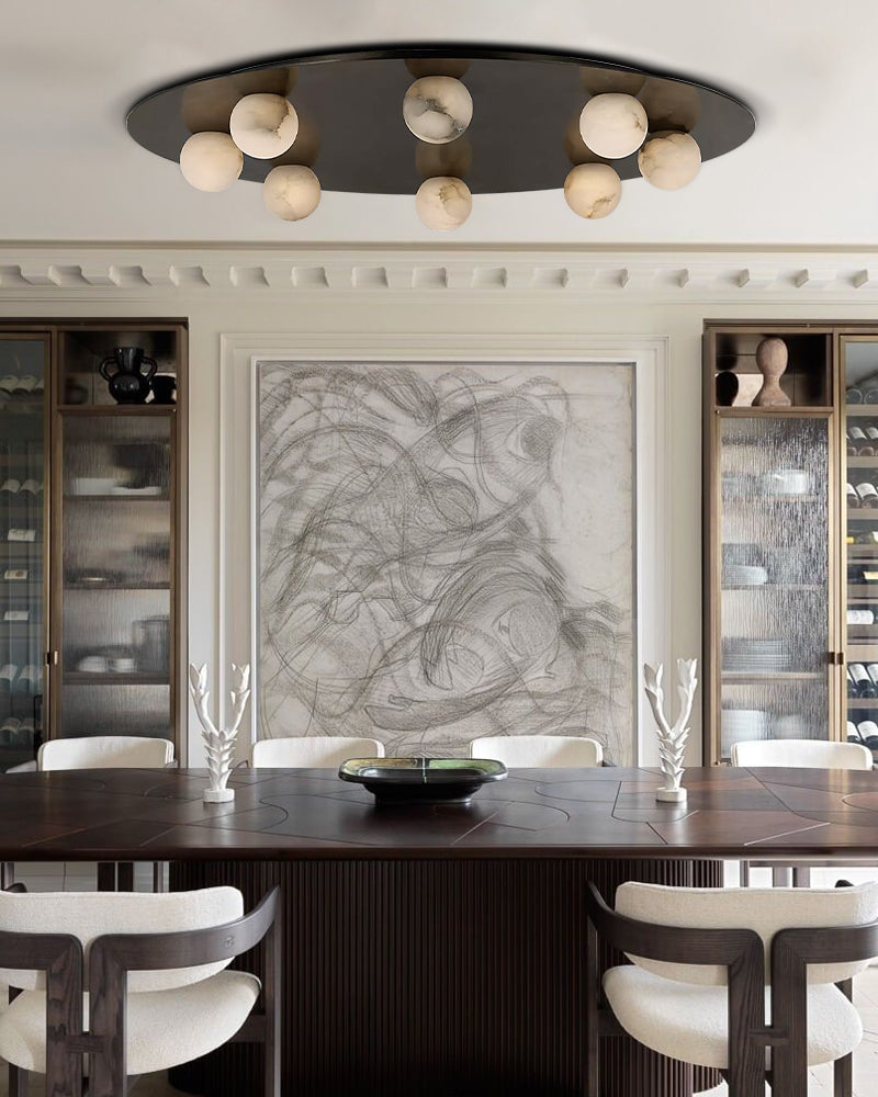 - Provides soft, glare-free illumination through an alabaster globe shade.