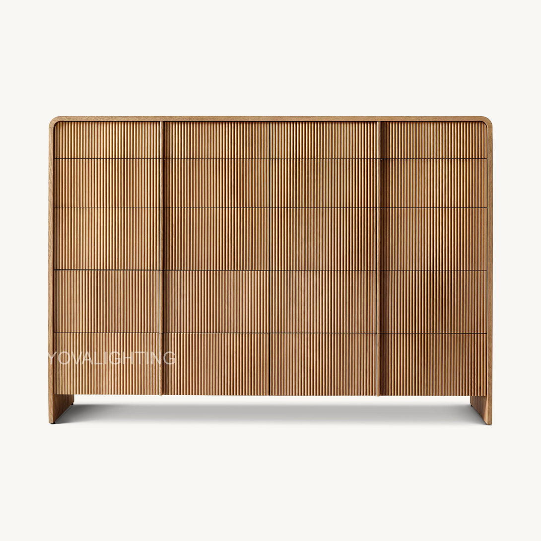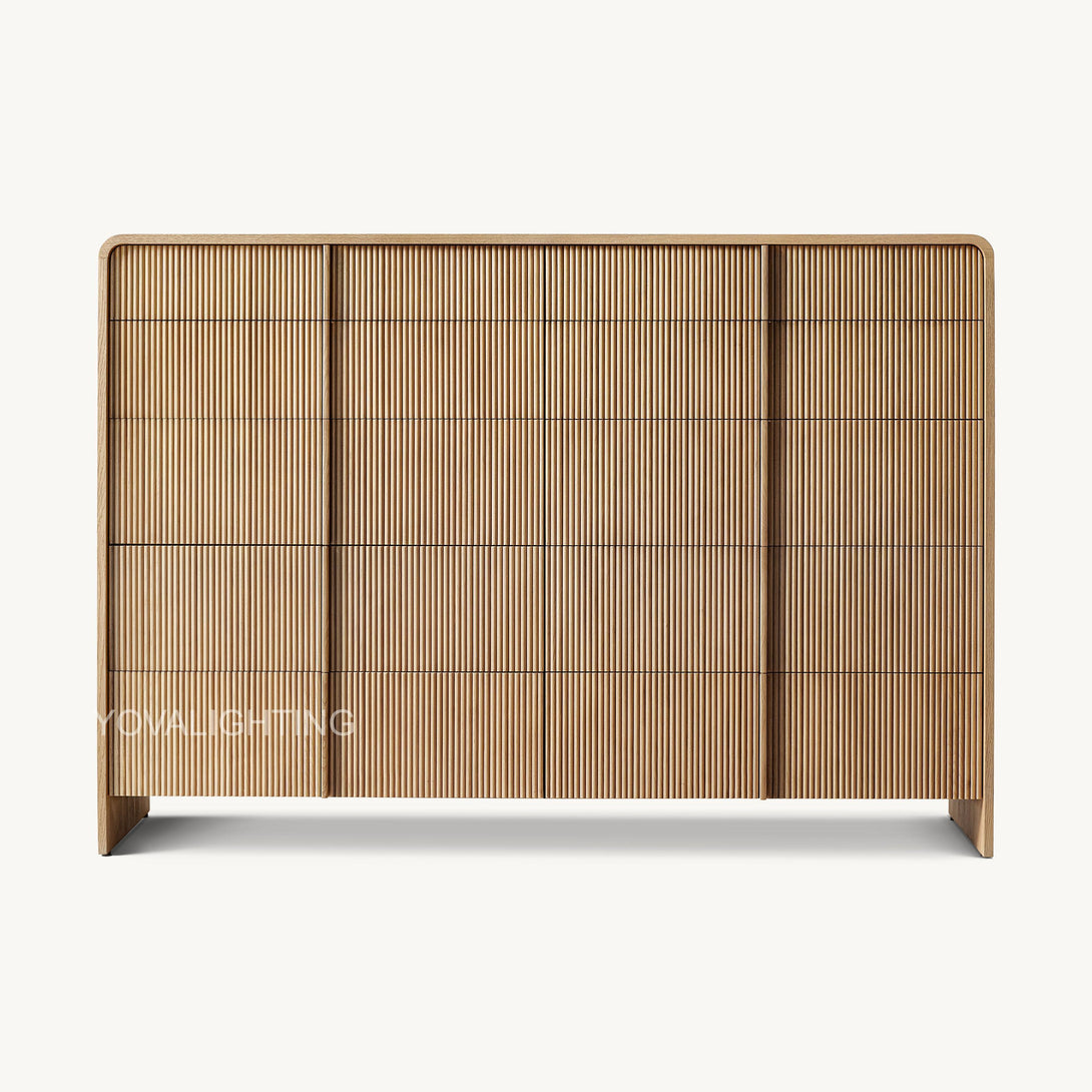 -Drawer fronts feature solid American white oak slats