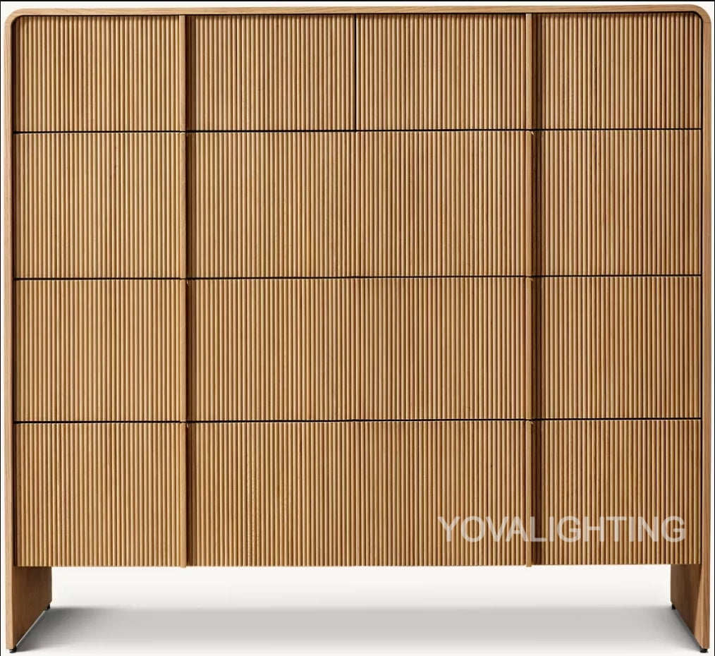 -The drawer fronts are crafted with solid American white oak reeding, showcasing a commitment to quality and craftsmanship.