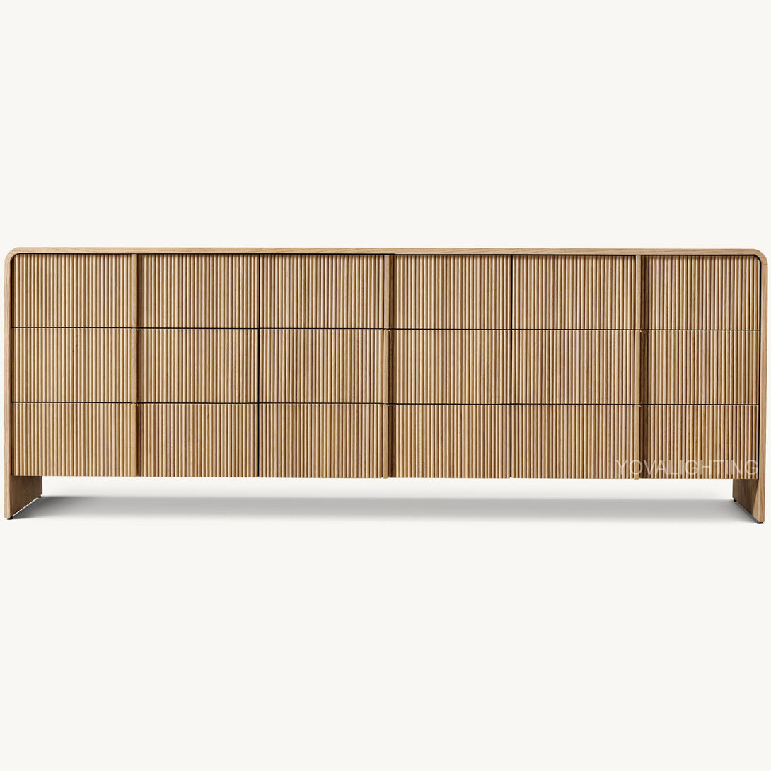 -The drawer fronts are crafted with solid American white oak reeding, showcasing a commitment to quality and craftsmanship.
