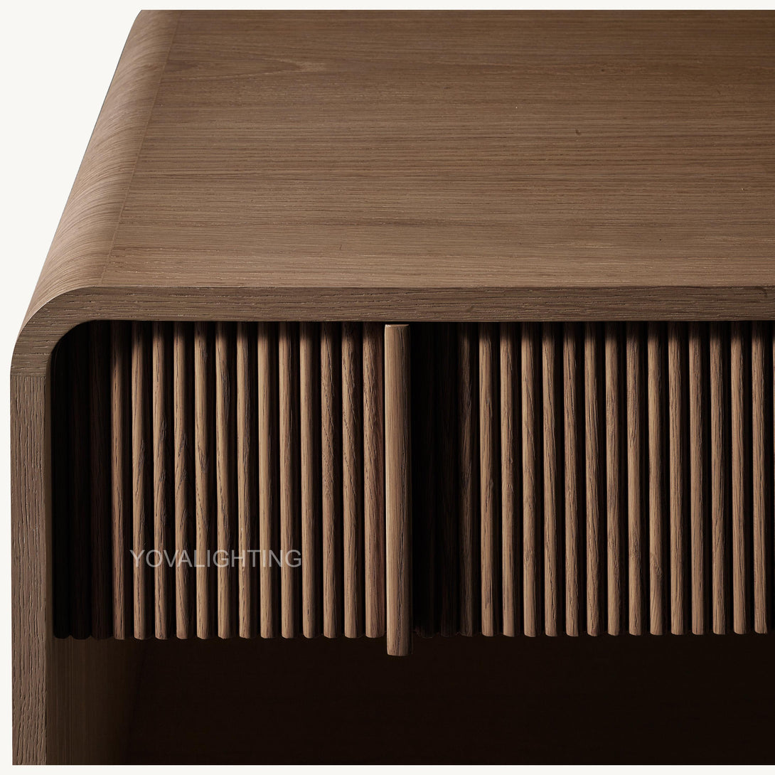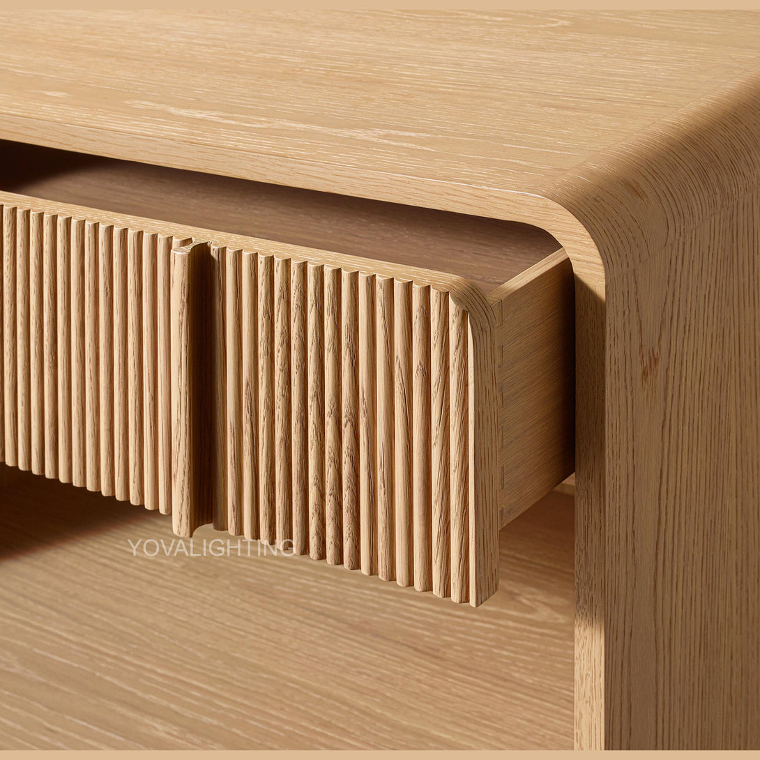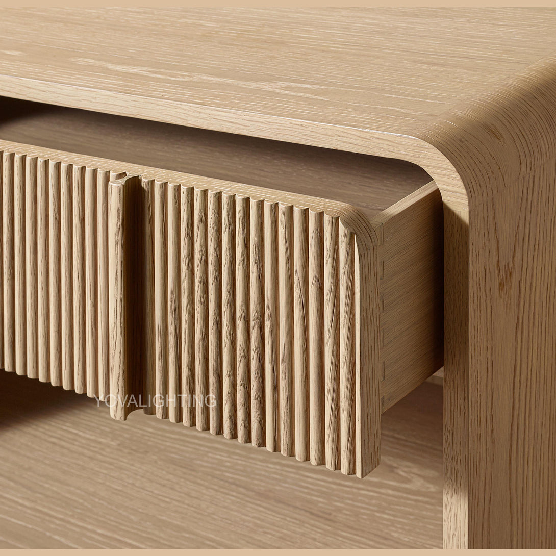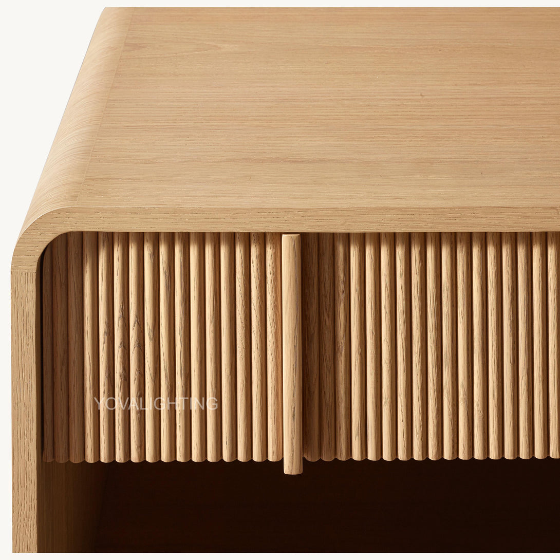 -The drawer fronts are crafted with solid American white oak reeding, showcasing a commitment to quality and craftsmanship.
