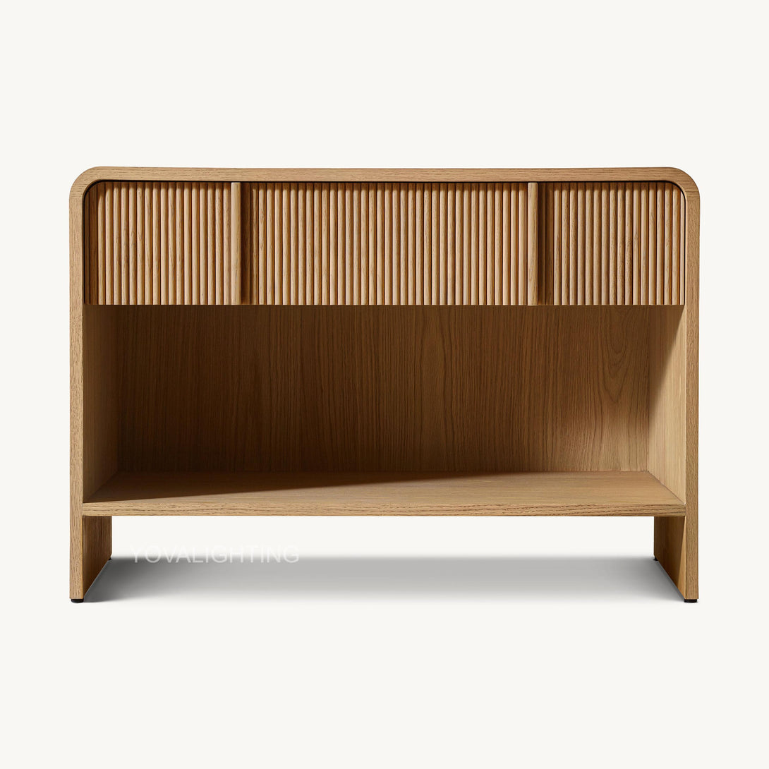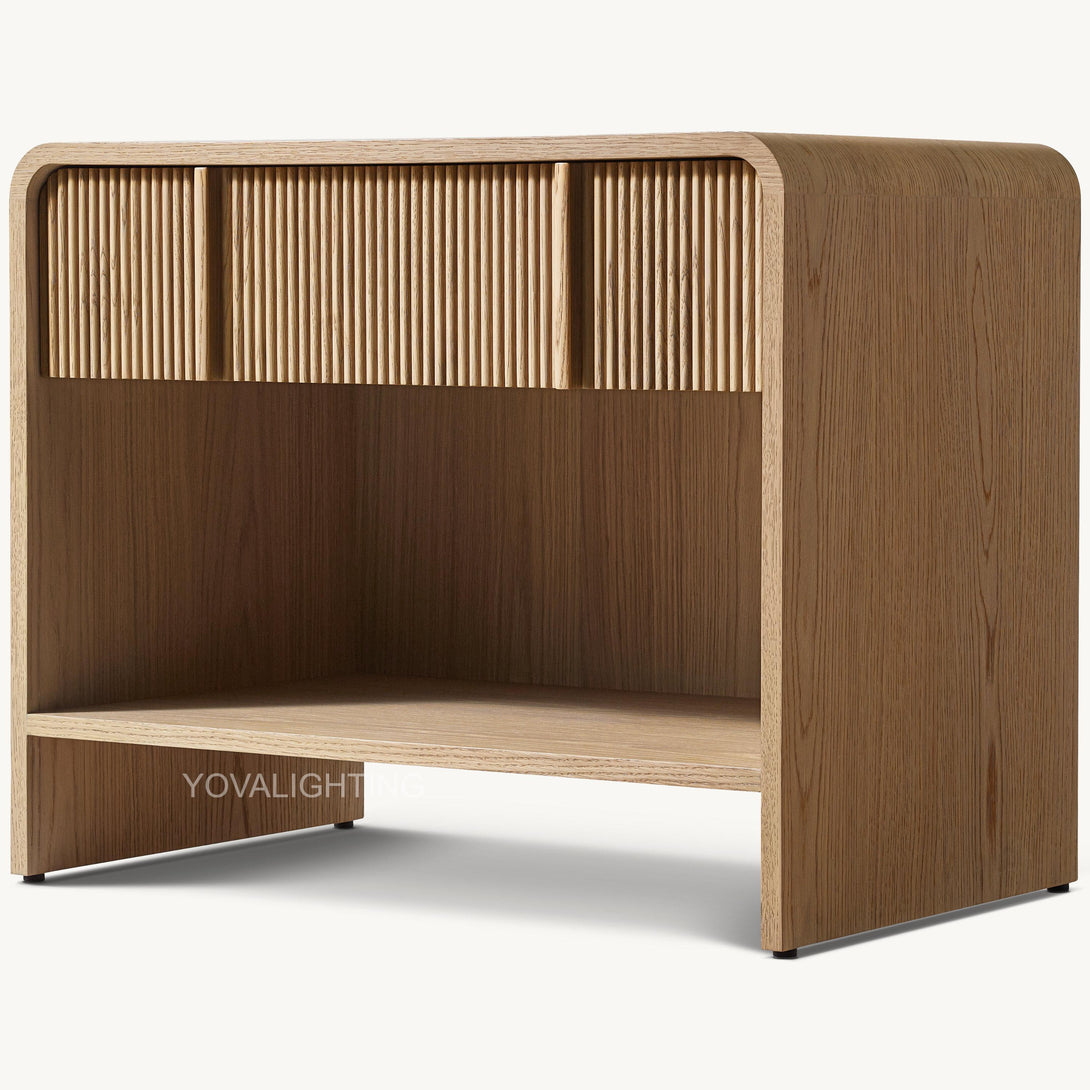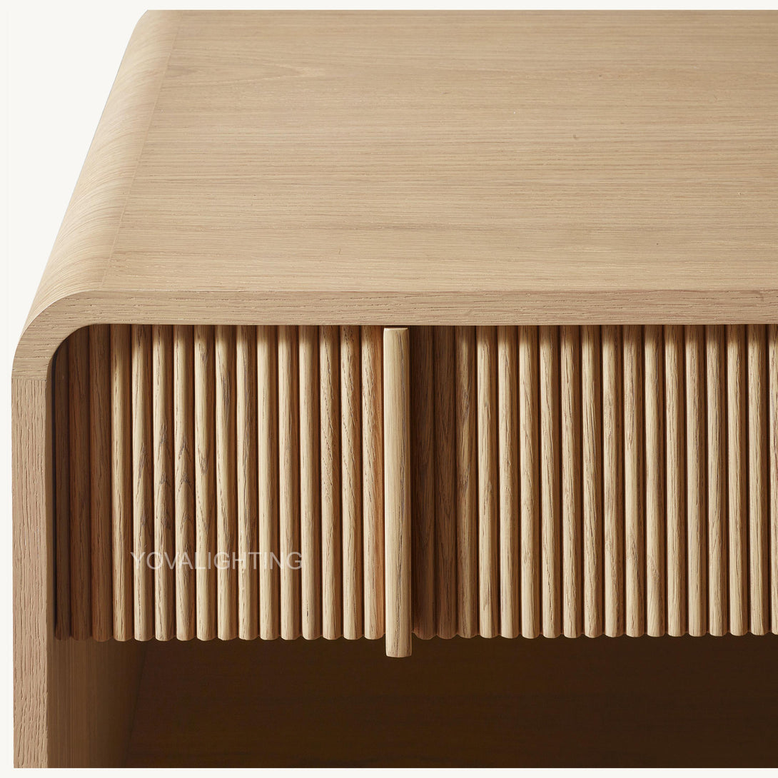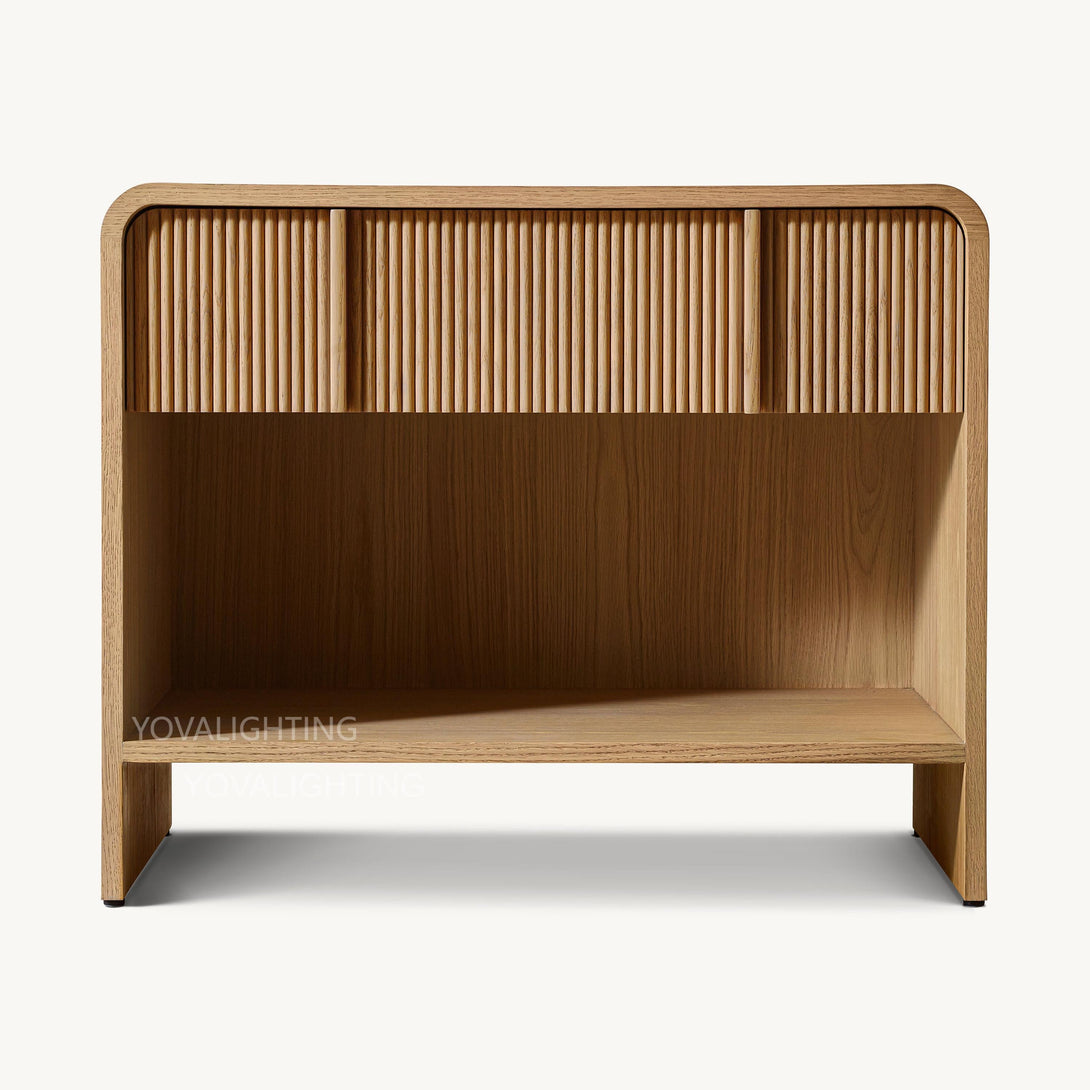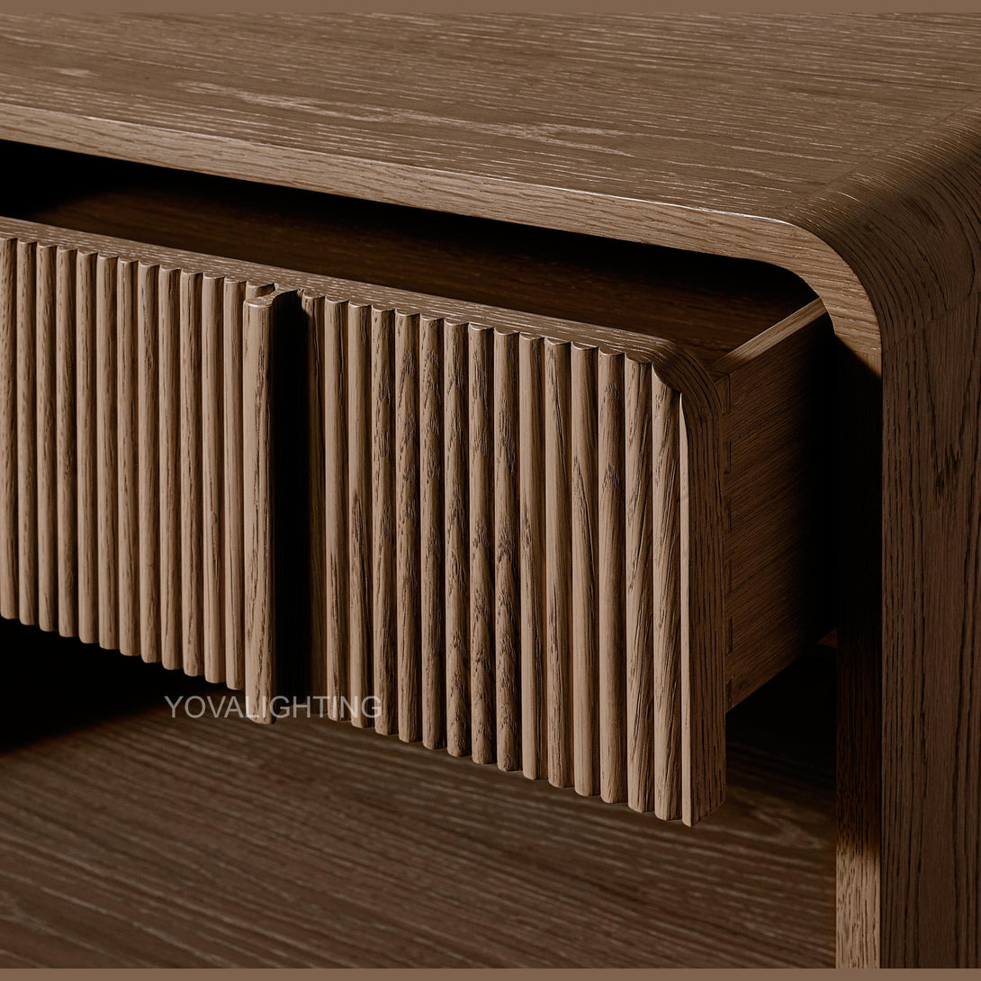 -The drawer fronts are crafted with solid American white oak reeding, showcasing a commitment to quality and craftsmanship.