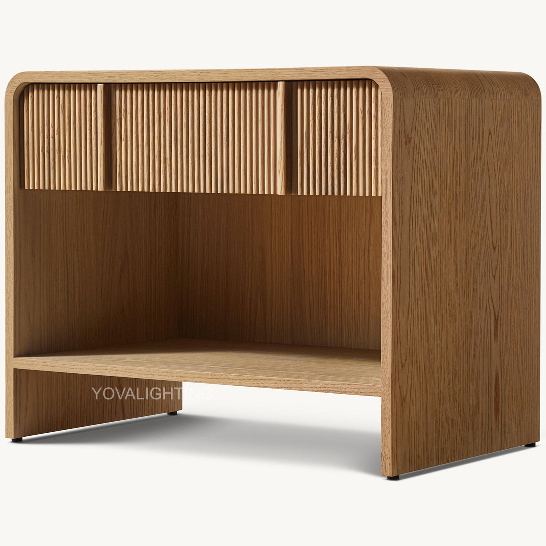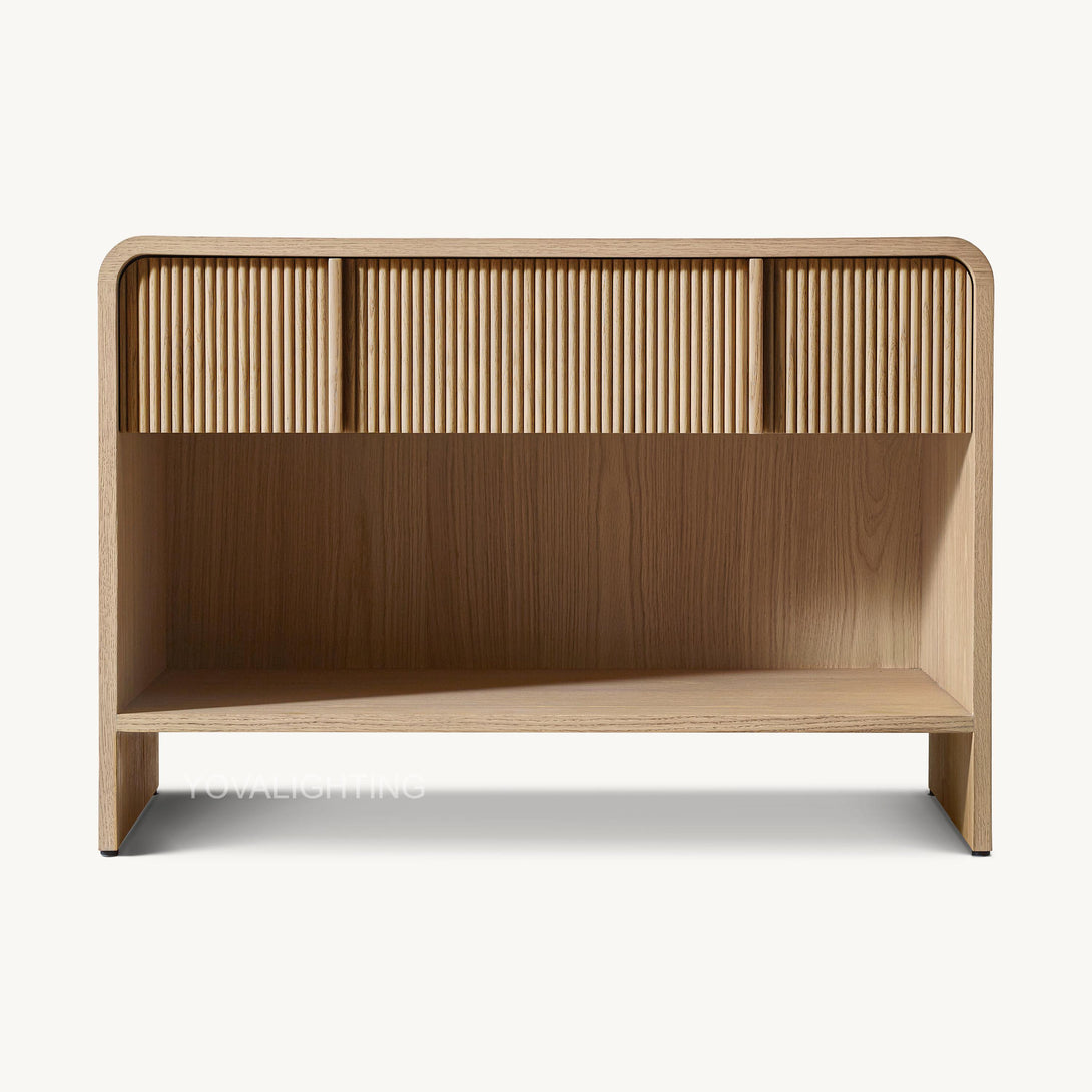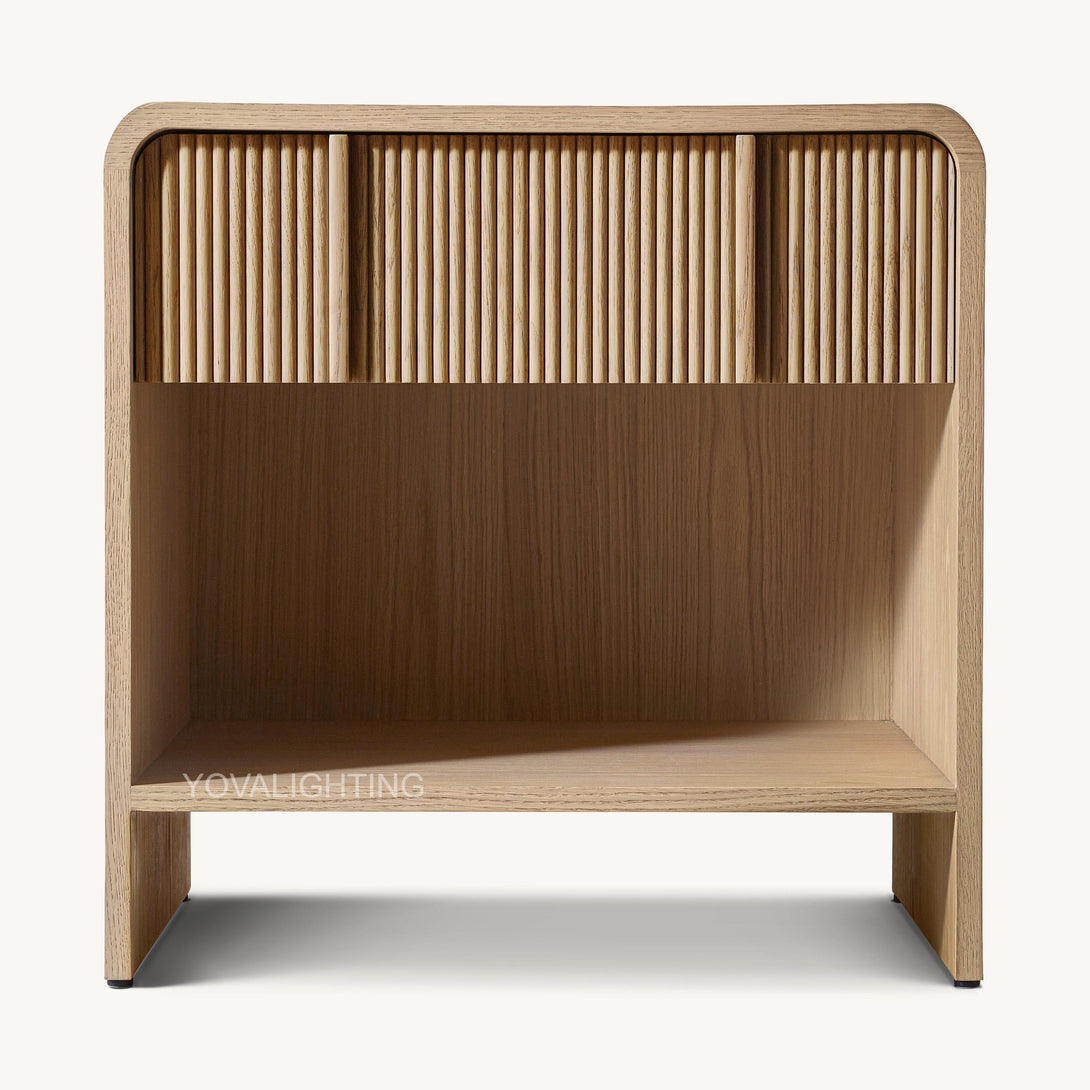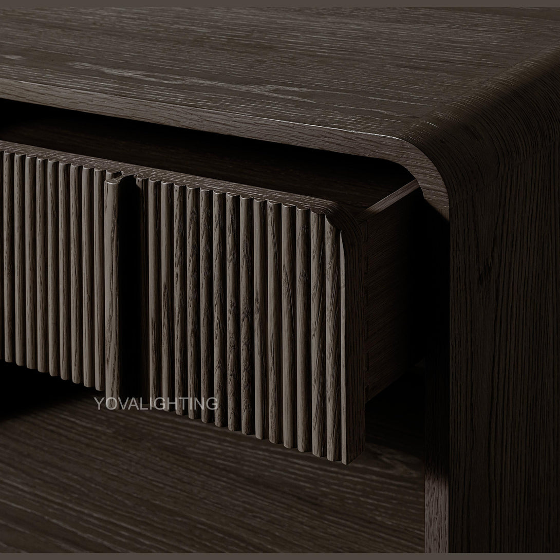 -The drawer fronts are crafted with solid American white oak reeding, showcasing a commitment to quality and craftsmanship.