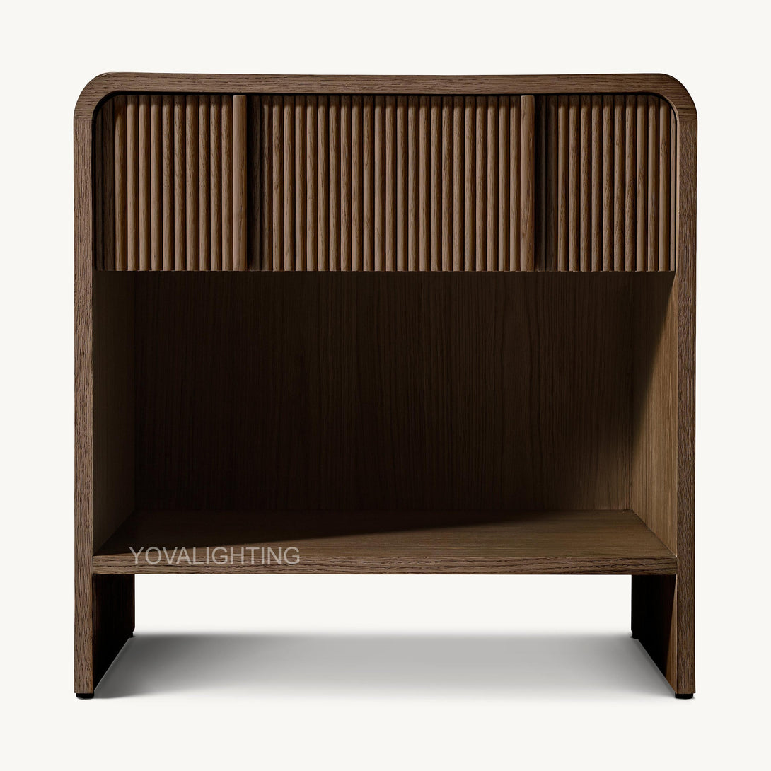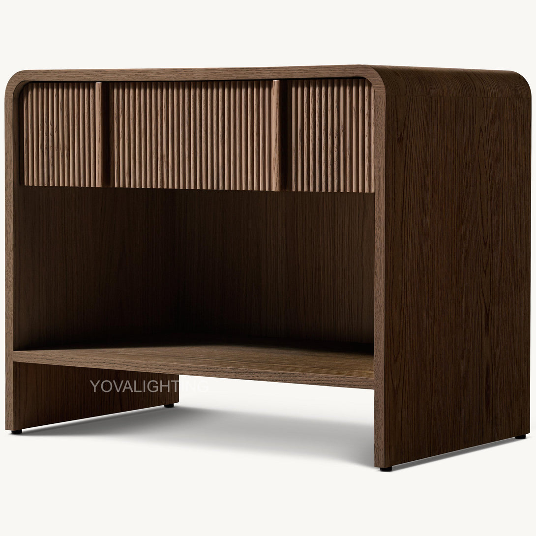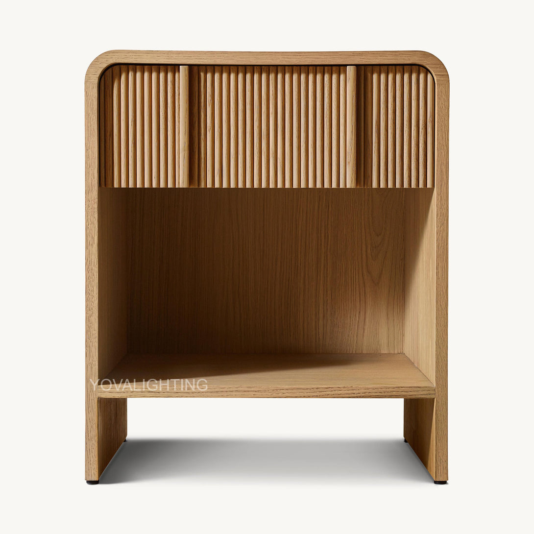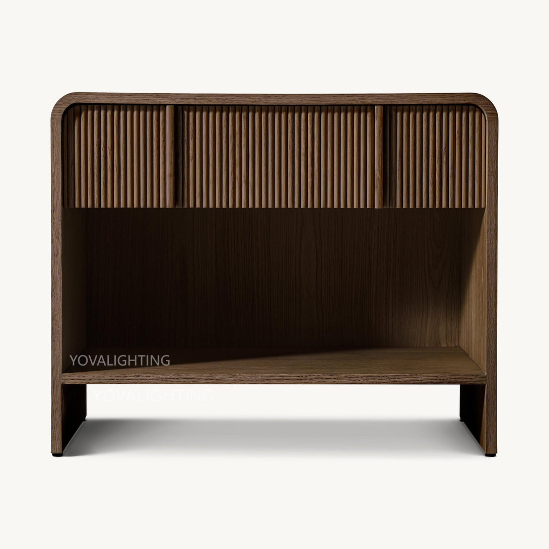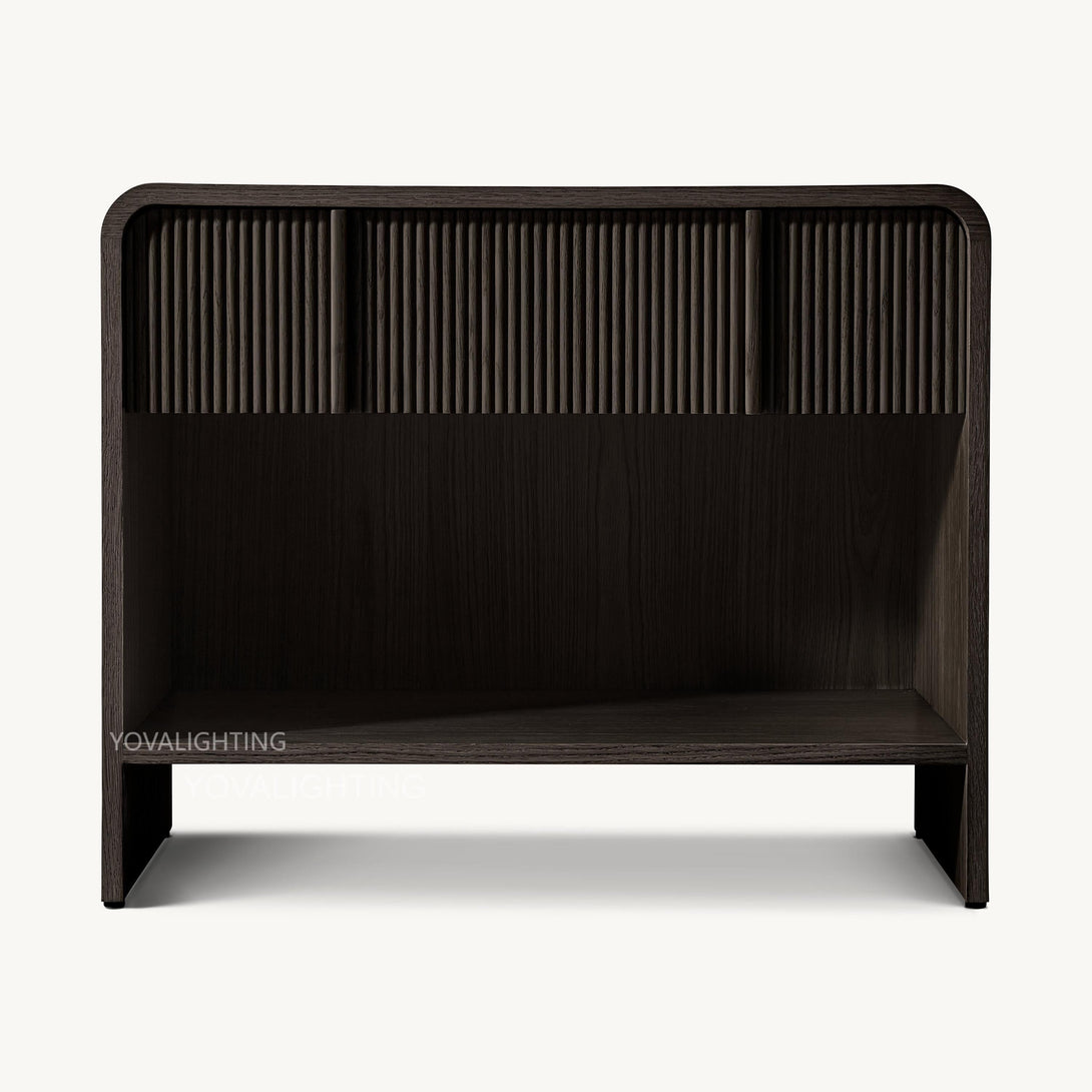 -The drawer fronts are crafted with solid American white oak reeding, showcasing a commitment to quality and craftsmanship.