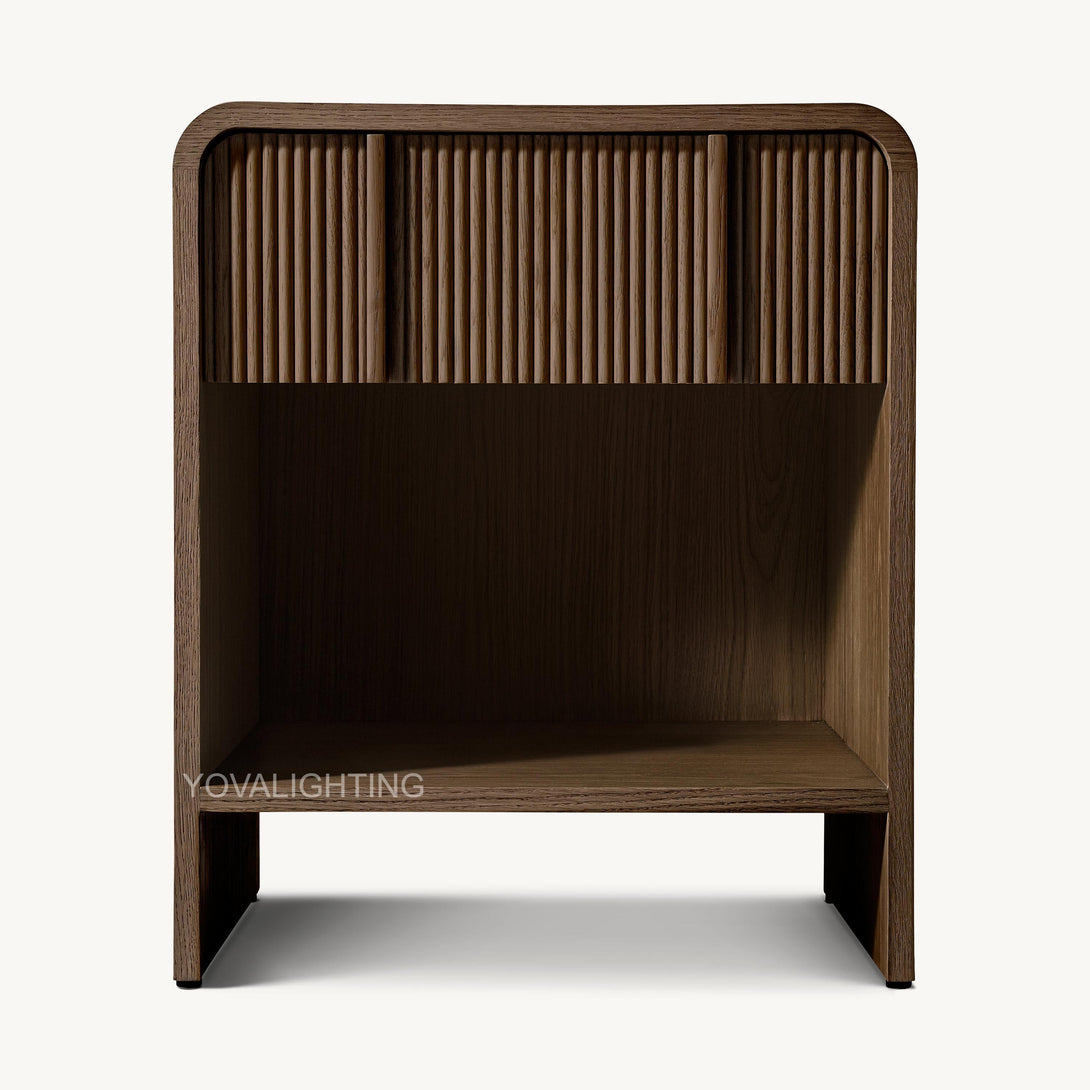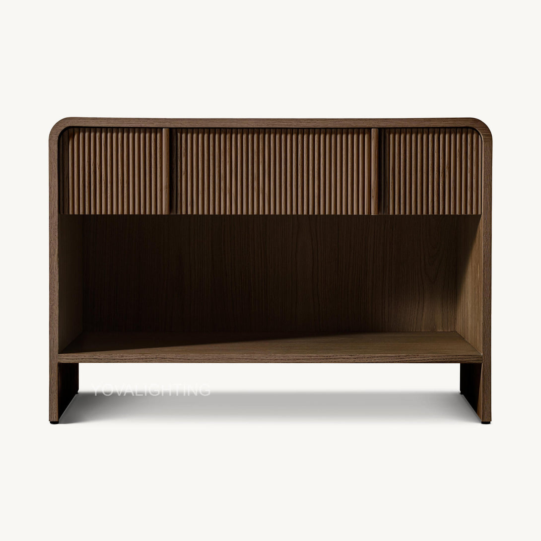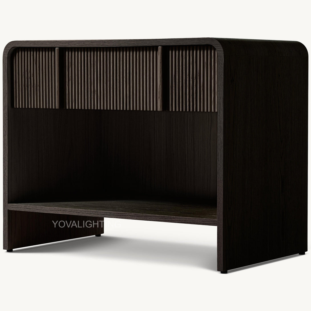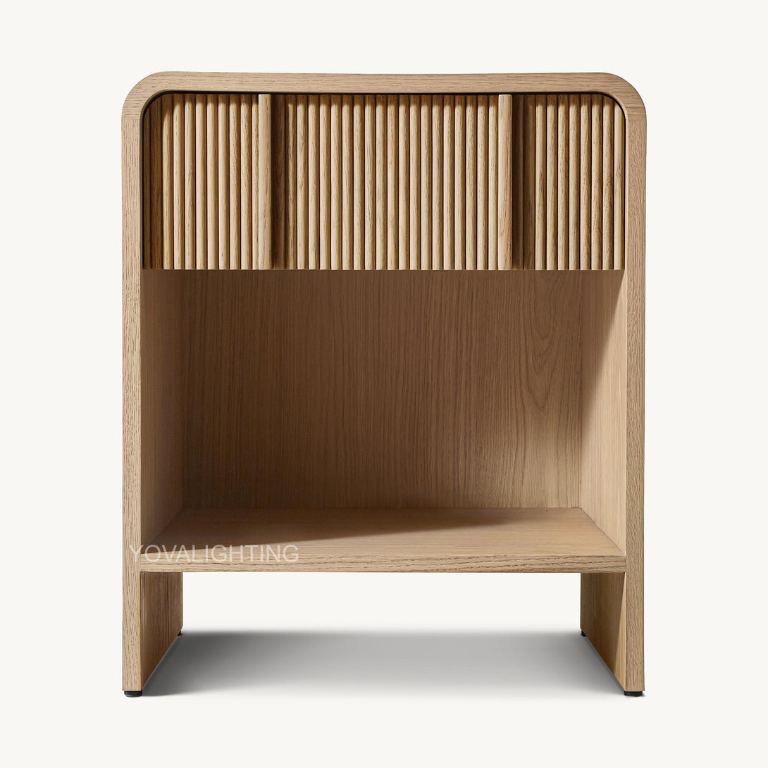 -The drawer fronts are crafted with solid American white oak reeding, showcasing a commitment to quality and craftsmanship.
