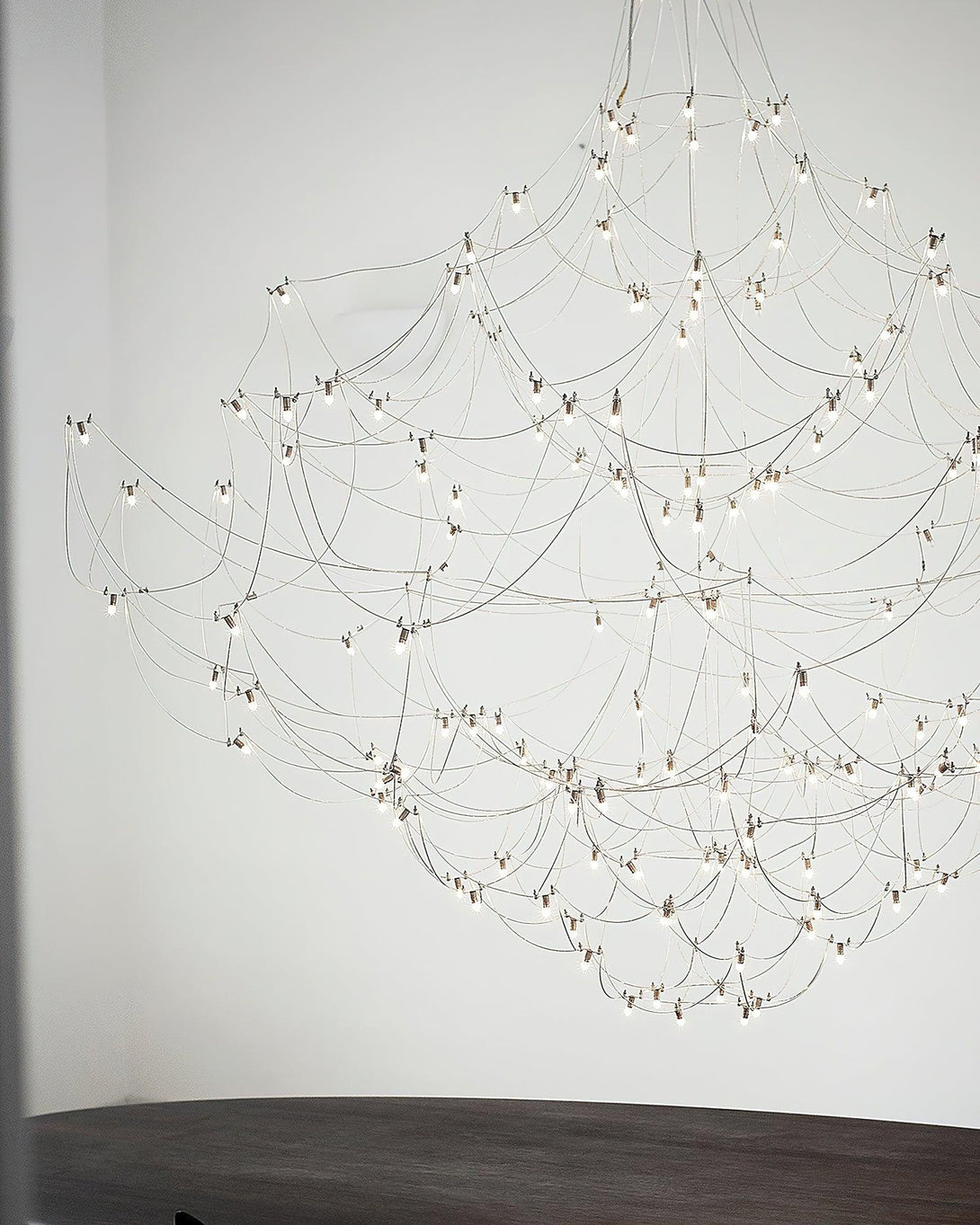 Perfectly brightens any area while adding a touch of luxury and sophistication. Stainless steel with a chrome finish is bent and assembled to form the structure of this chandelier. LEDs fixed in filaments bring an elegant ambience to your environment, creating the illusion that a swarm of fireflies are stunningly lighting up the space. Adds a beautiful and functional element to a stylish living room or hotel room, leaving a stunning impression on all visitors.