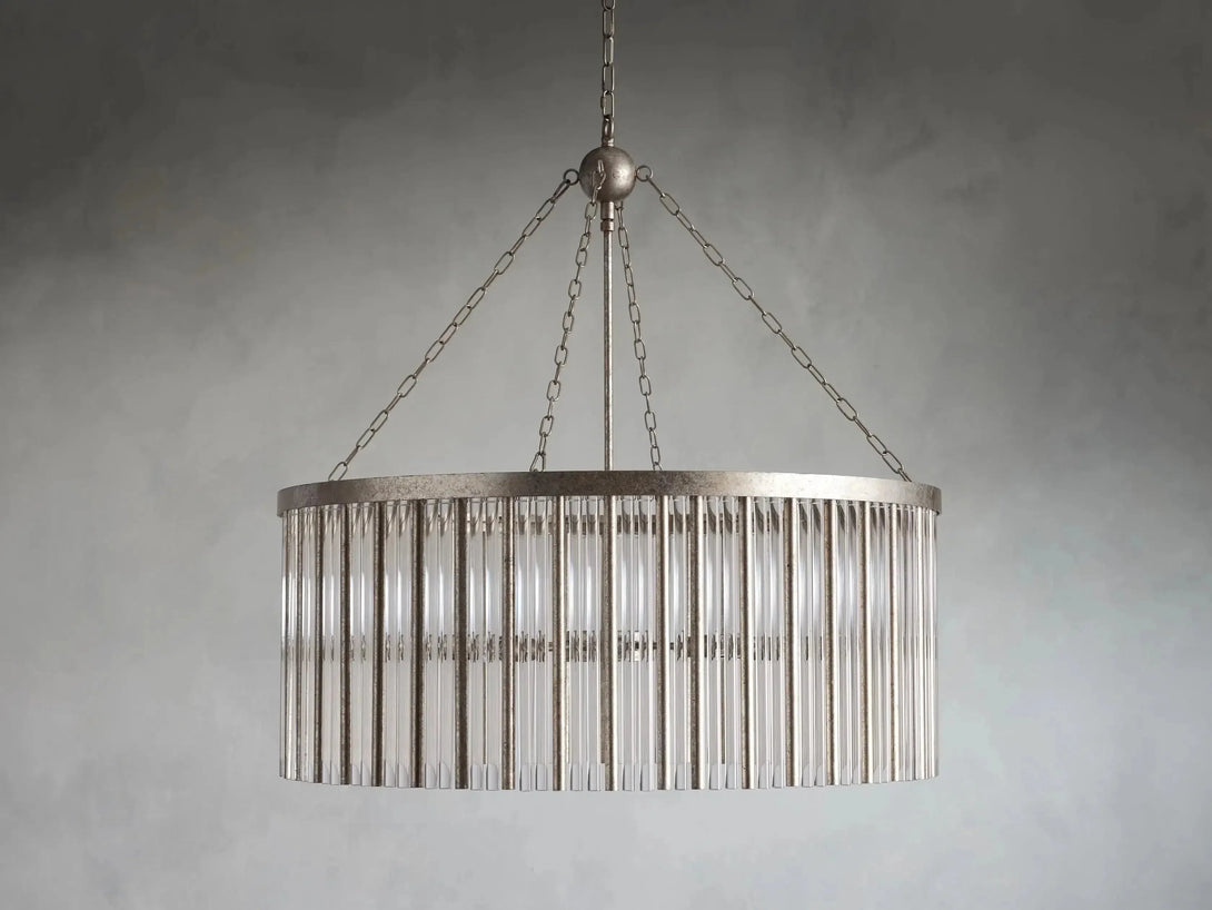 - Stunningly elegant and enchantingly glamorous, our Andalucia Chandelier showcases glass crystals arranged around an iron frame with a hand-worked Antique Silver foil finish.