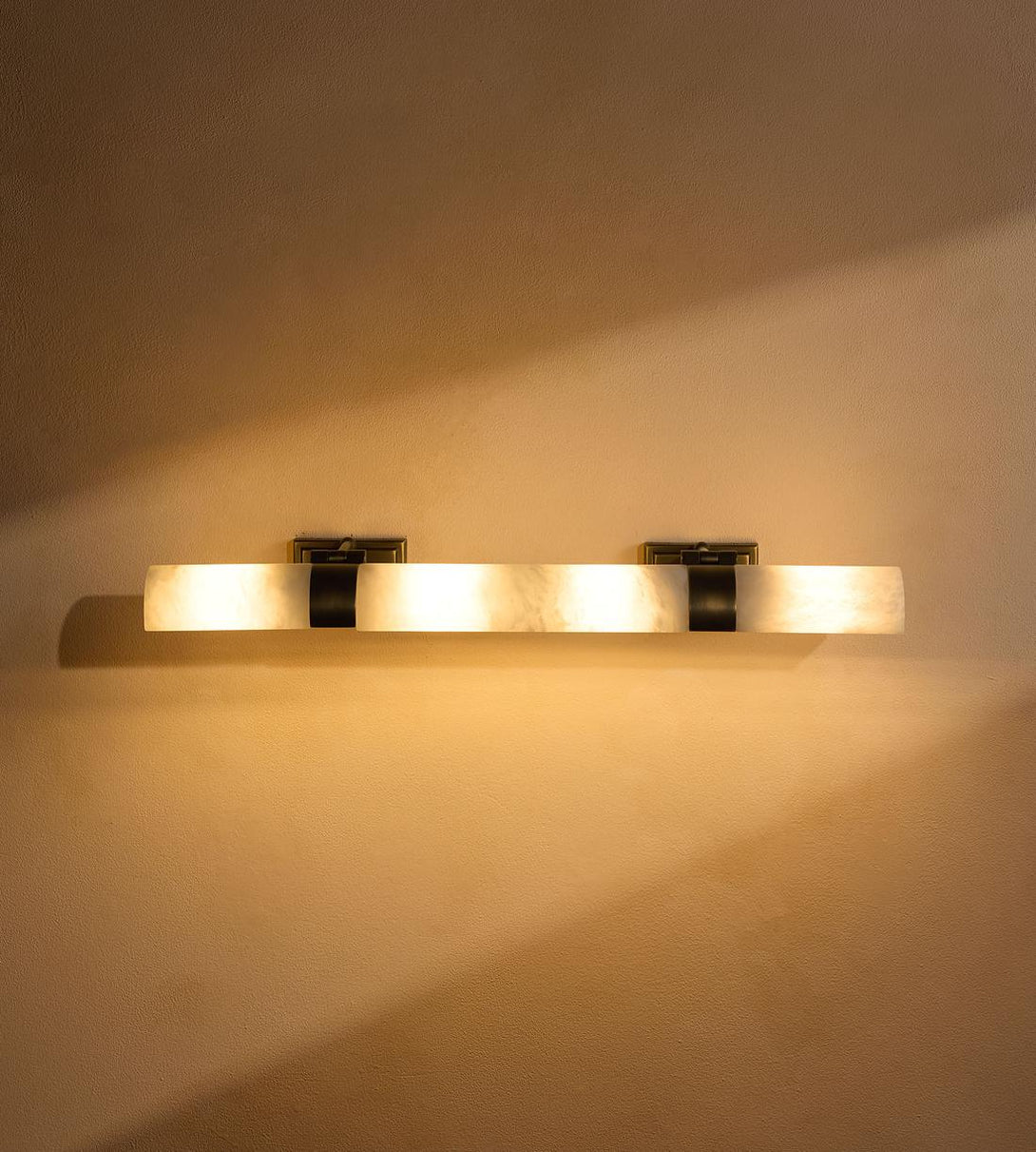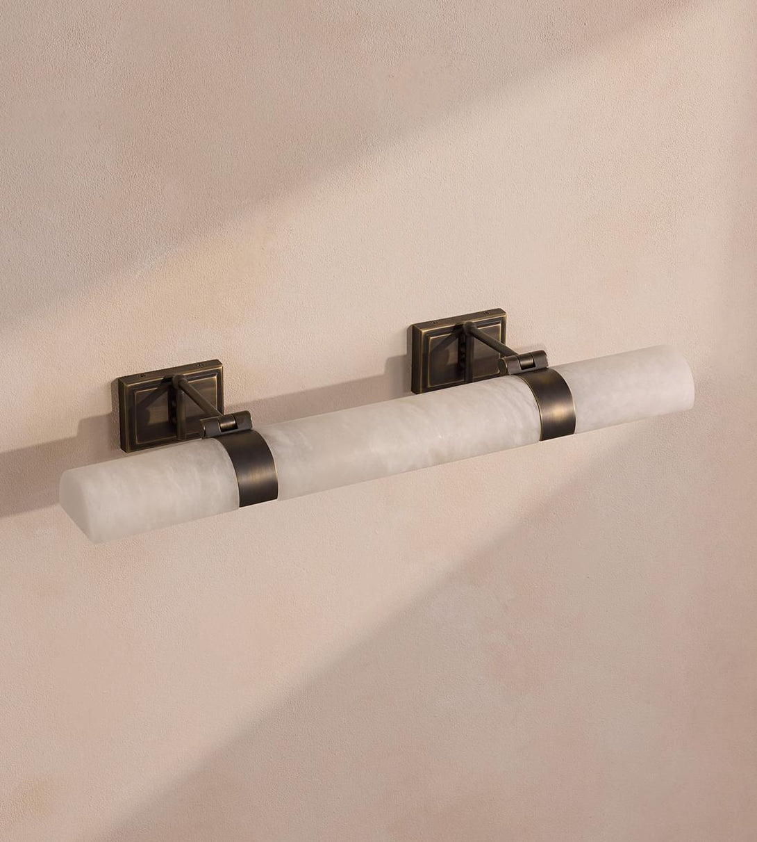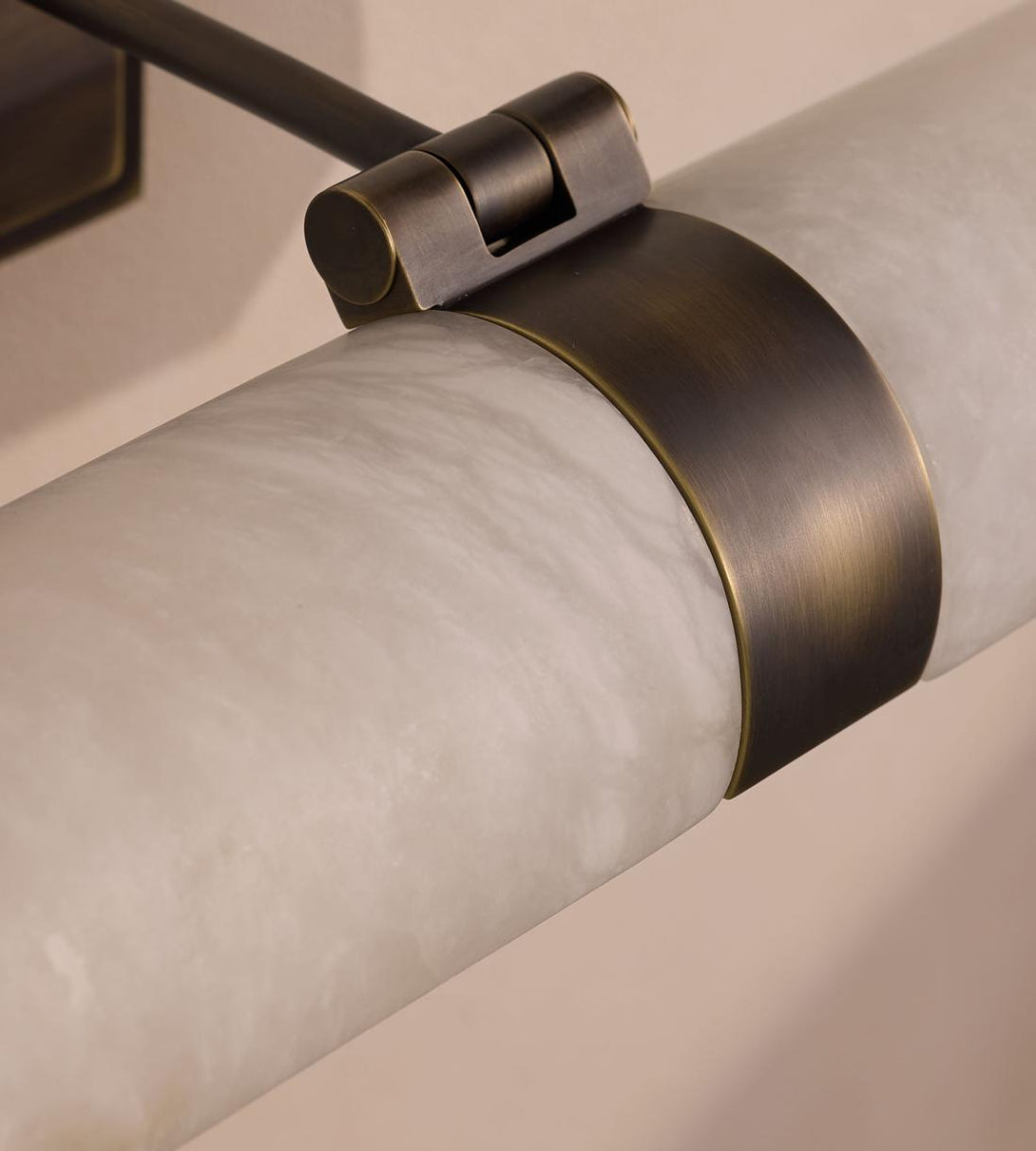 Mounted on a blackened brass frame, honed alabaster shades can be adjusted to direct the light onto your artworks.