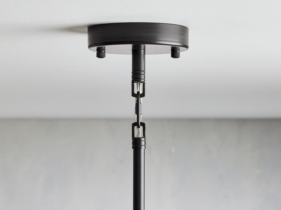 - Includes five interchangeable extension rods for hanging—one 8" and four 15".