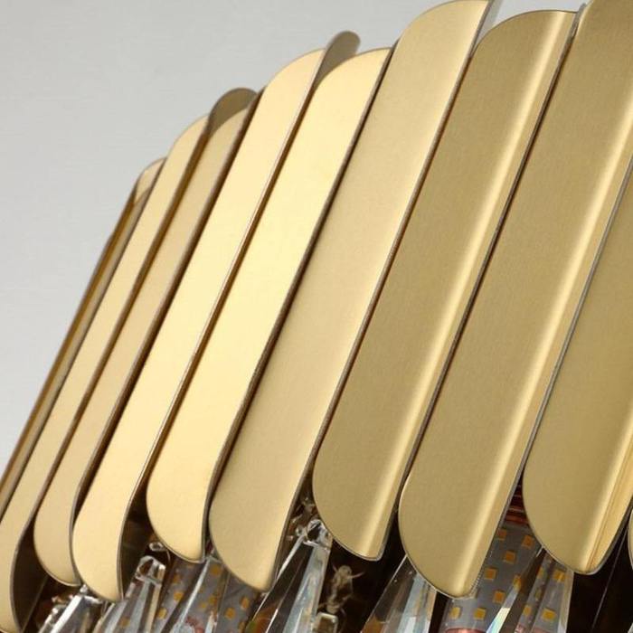 Our April Crystal Chandelier was inspired by the French era of the 18th century, including a grand chandelier, light fixtures, and pendant lamps. We electroplated the stainless steel with gold and the glass parts are hand-made of clear crystals, to create a luxurious look. Your dining room can be transformed into a dreamy and elegant area with the April Crystal Chandelier