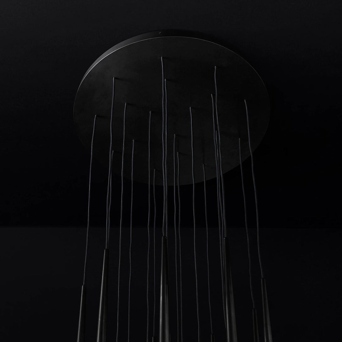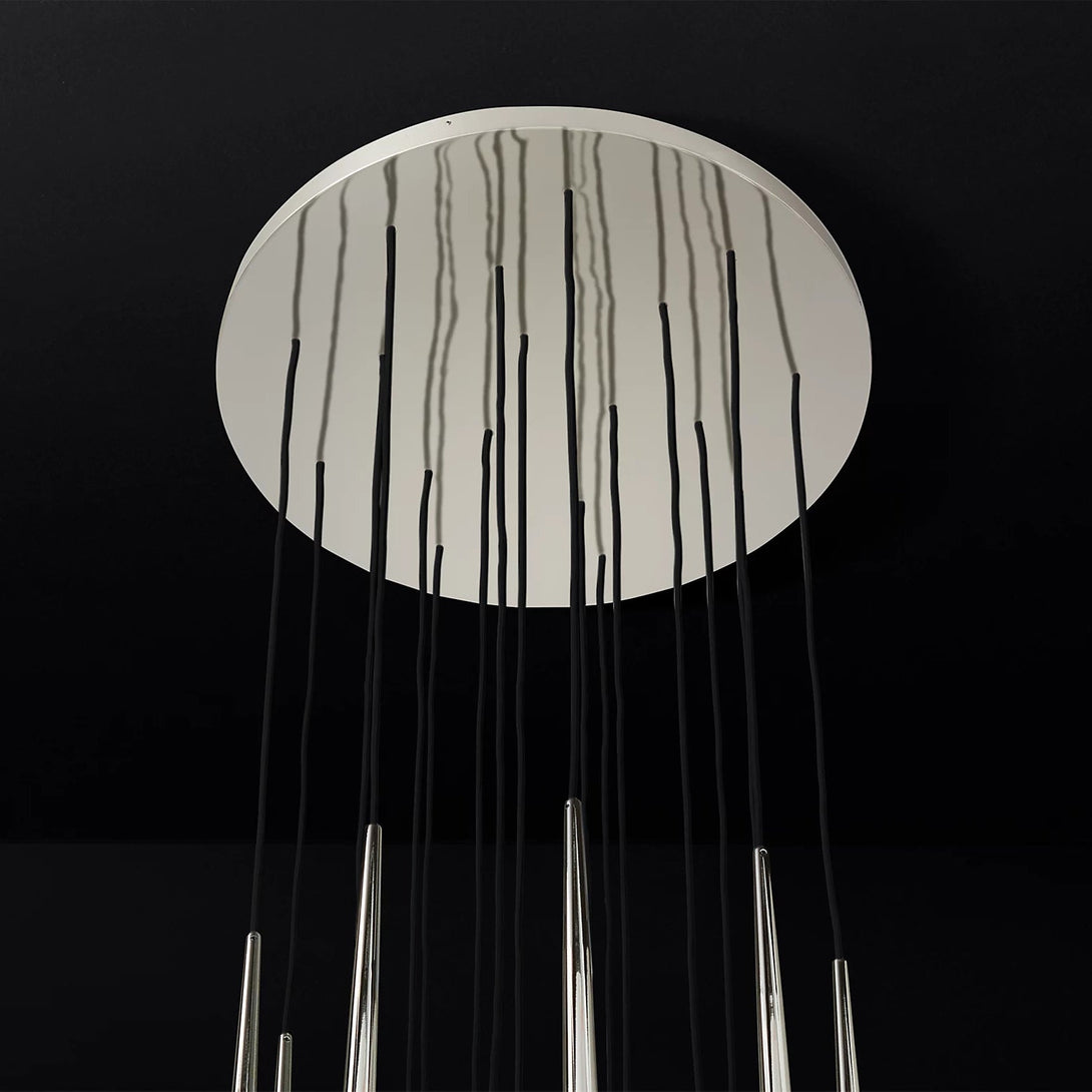 - *Overall: 30" diam., 84¾"H (maximum) ; Canopy: 30" diam., 1¾"H ; Maximum Cord Hang Lengths: 9 at 60¾", 6 at 72½" and 3 at 84¾" (adjustable) ; Cord: ¼" diam. ; Brass Form: 24½"H ; Weight: 108 lbs.