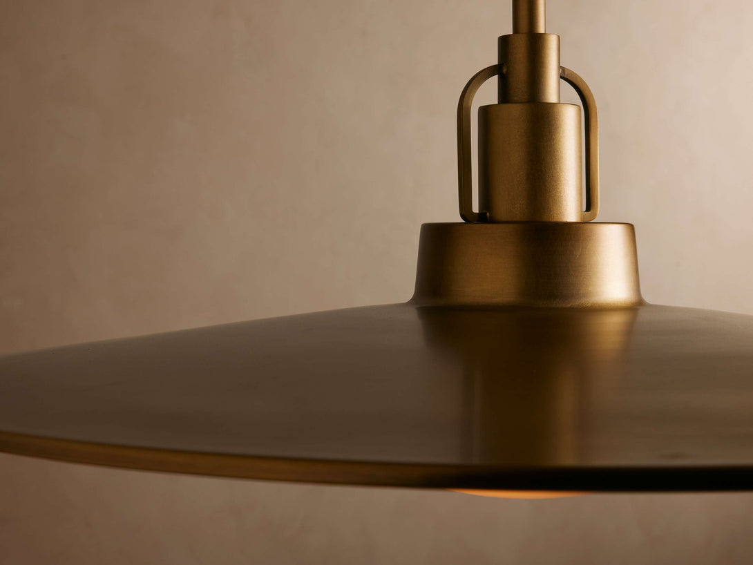 Forged from iron with a lustrous brass finish, our Argent Lighting Collection displays a modern-yet-simple silhouette. Featuring a distinctive disc-shaped shade, complemented by an opal glass dome that diffuses a soft glow, Argent adds a minimalistic flare to any setting.