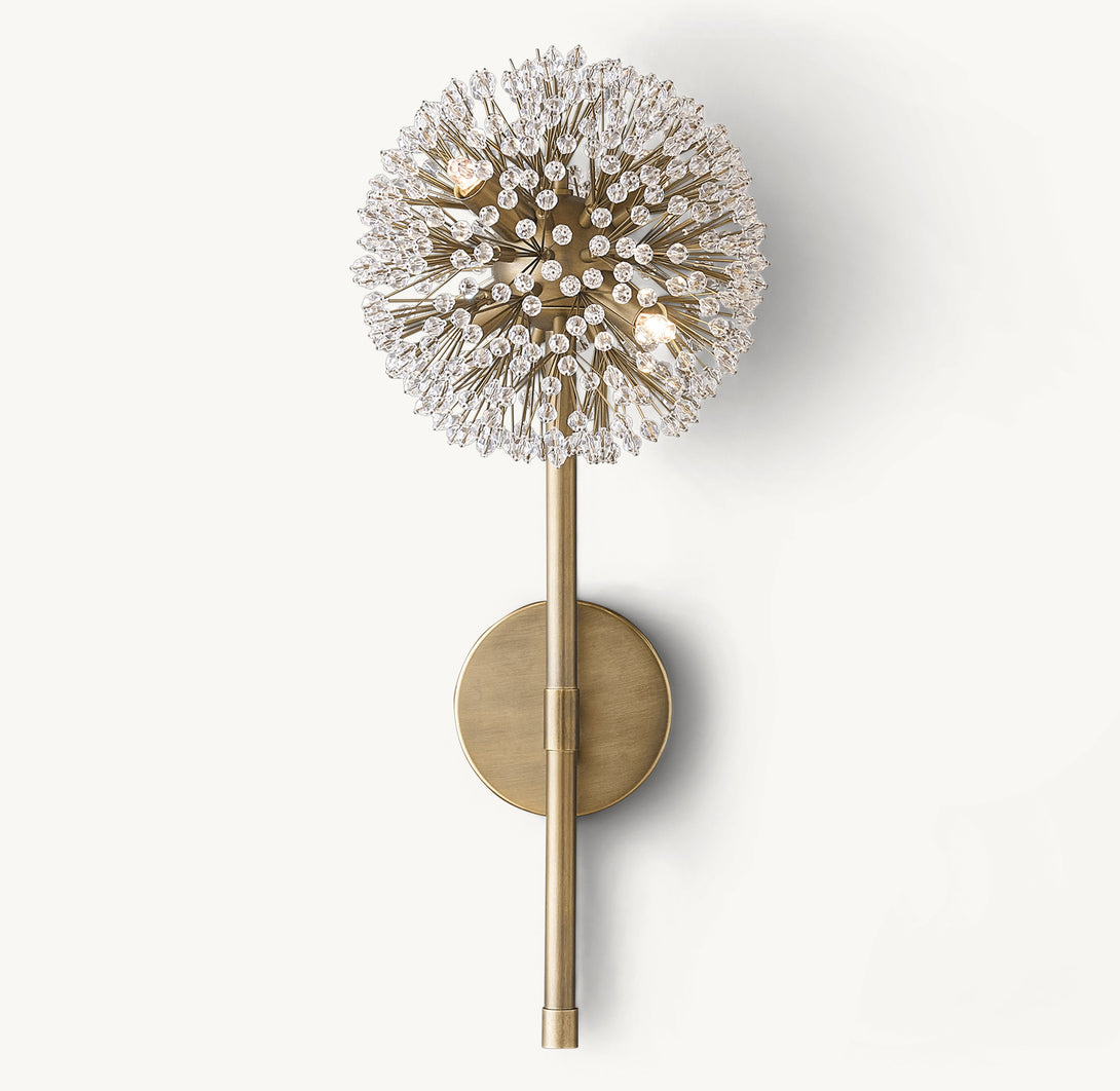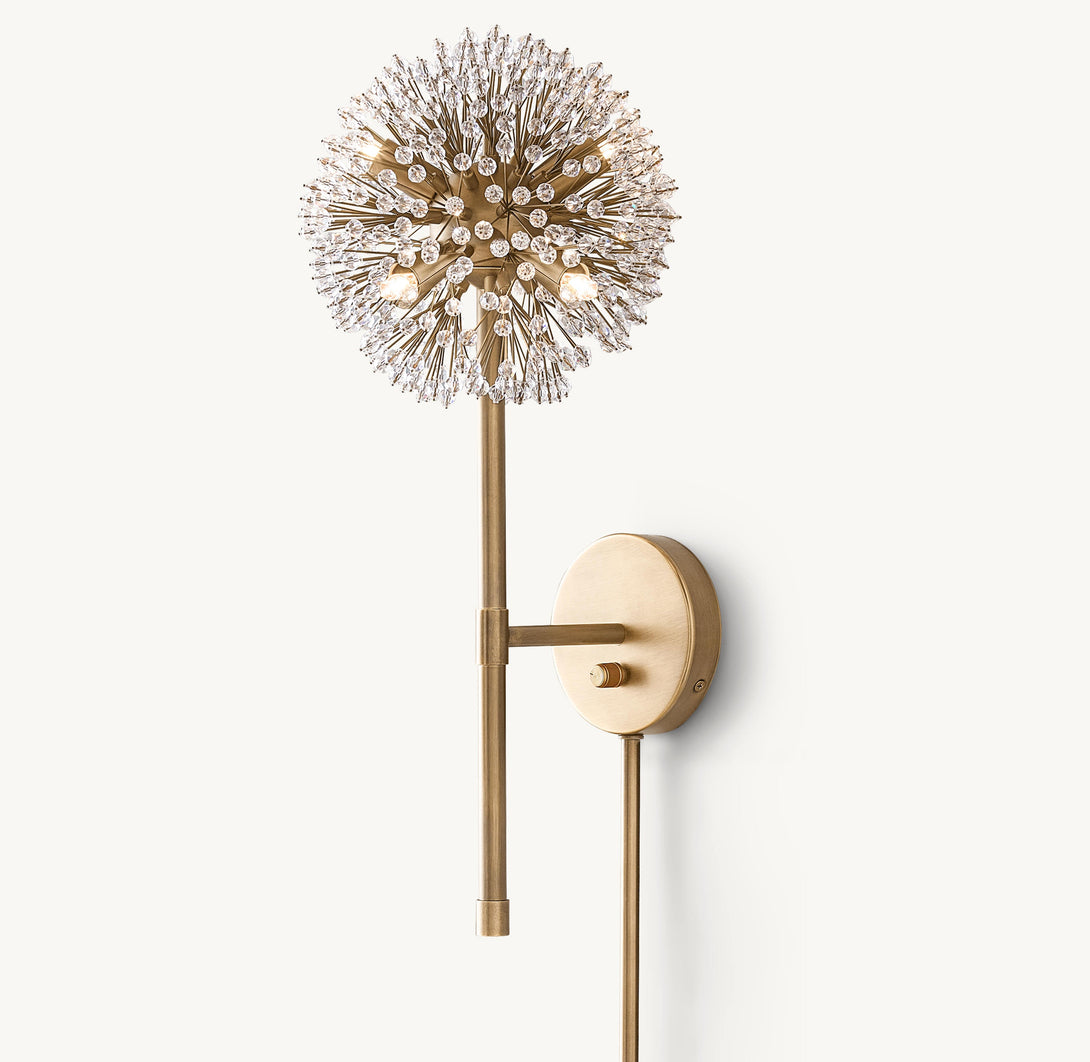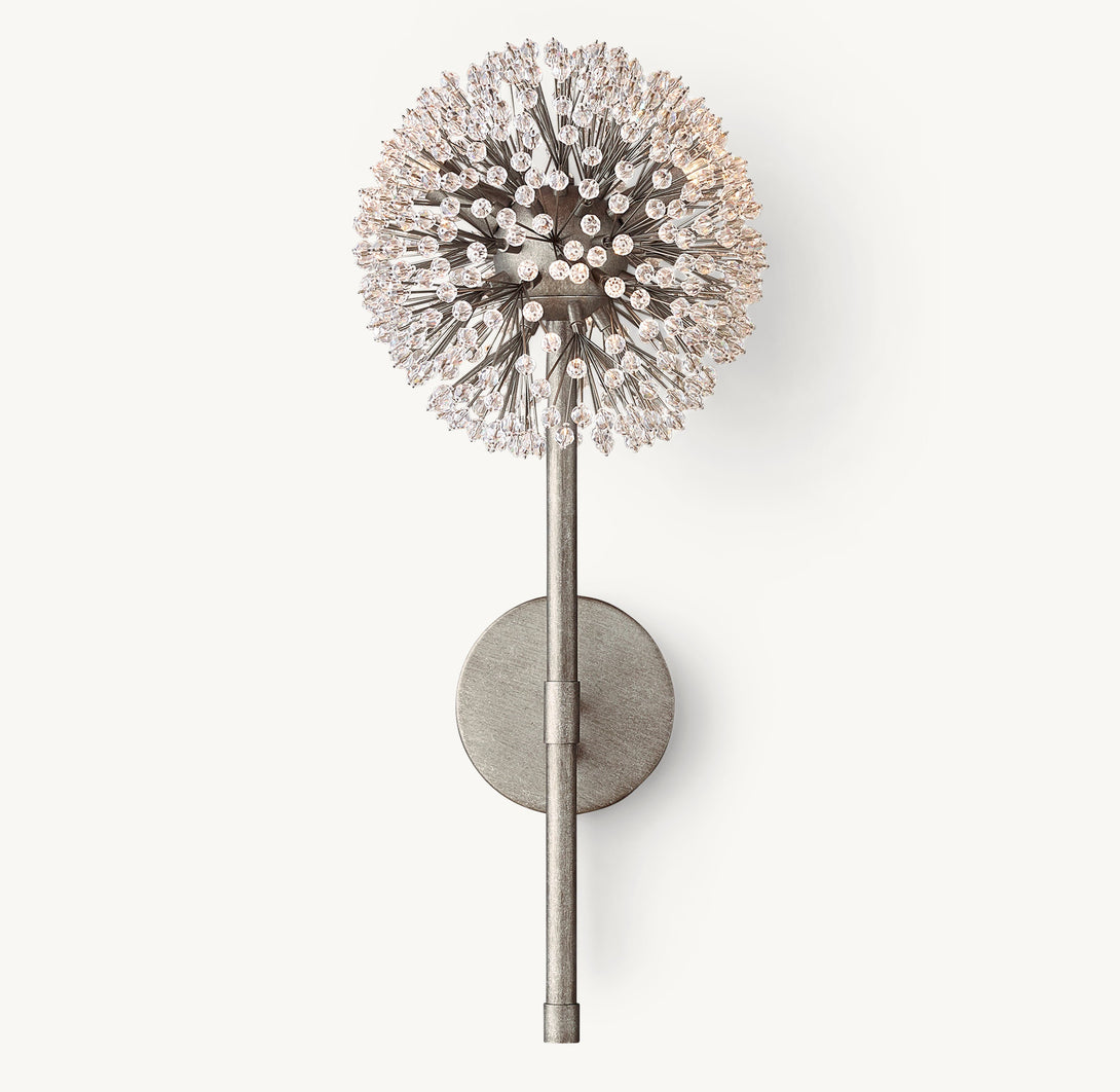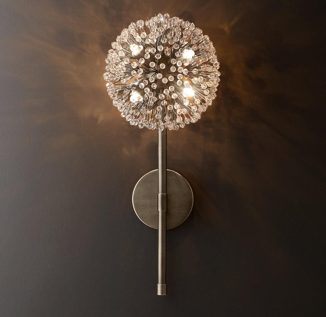 - Features a radial arrangement of wire arms fitted with tiny, faceted crystals
