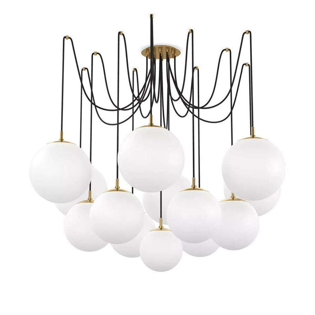 The Spider Chandelier is an incredibly delicate piece that you can enjoy in your home! Matte glass spheres of varying lengths float in the air to make a striking piece. Each sphere is hand blown, molded and sculpted over the course of an hour. The matte glass is specially manufactured to diffuse light evenly.