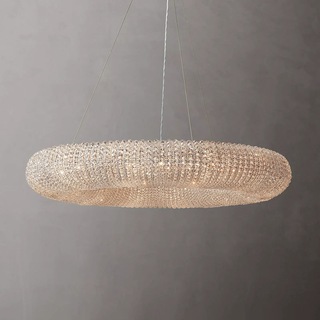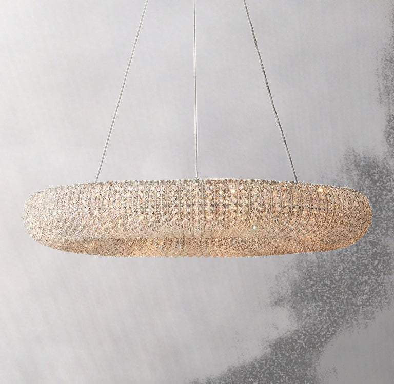 Dimension:Chandelier Body: 32" diam., 6½"H ; Minimum Height: 47" ; Maximum Height: 108" ; Canopy: 7¾" diam., 2"H ; Cable: 10'L max. ; Weight: 45 lbs.Chandelier Body: 41" diam., 6½"H ; Minimum Height: 47" ; Maximum Height: 108" ; Canopy: 7¾" diam., 2"H ; Cable: 10'L max. ; Weight: 73 lbs.