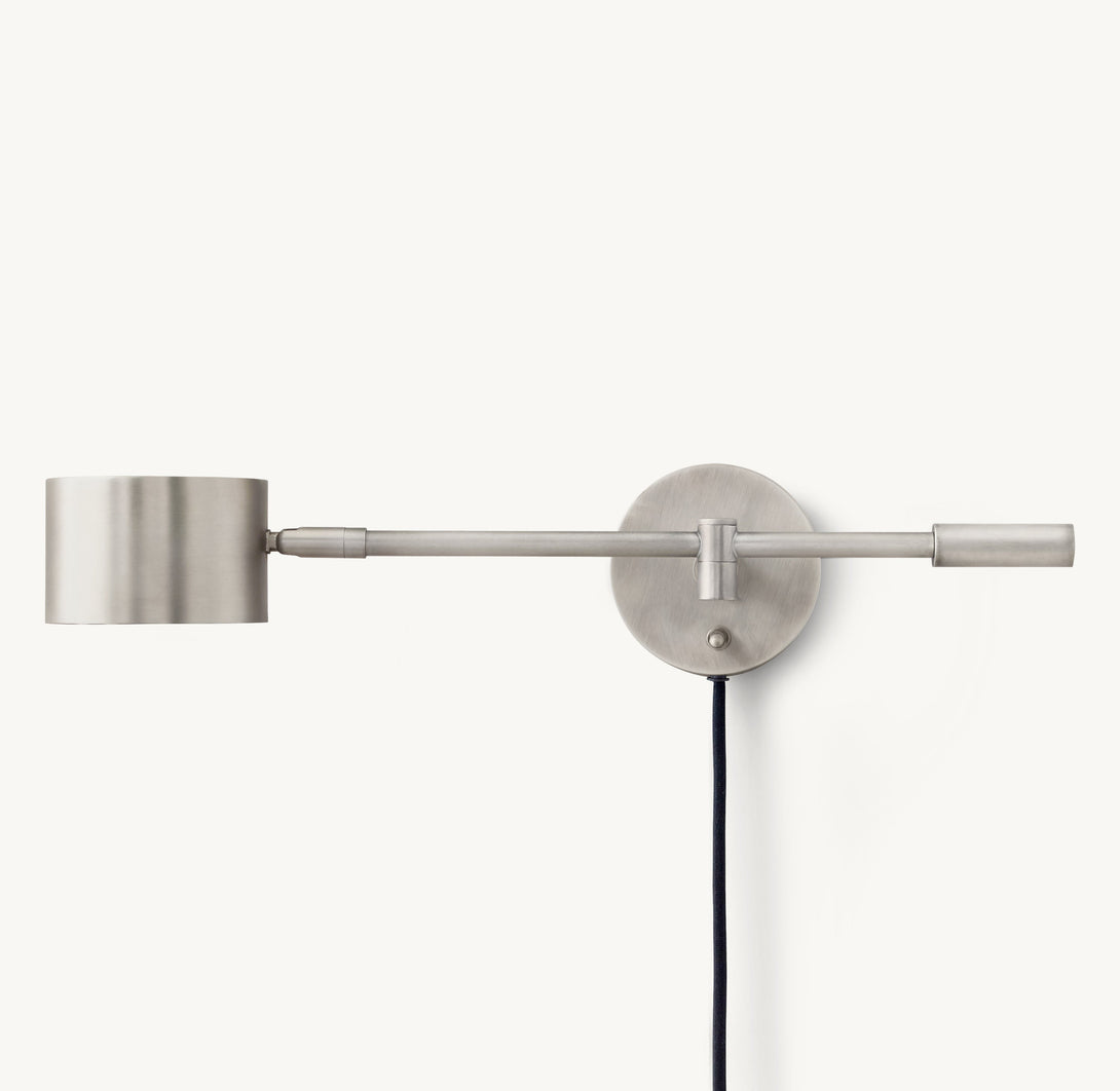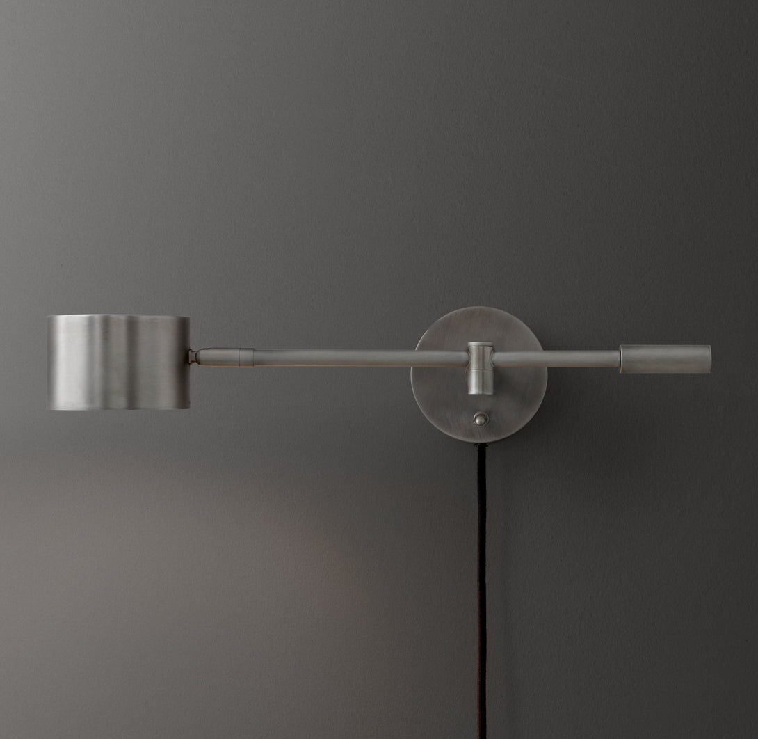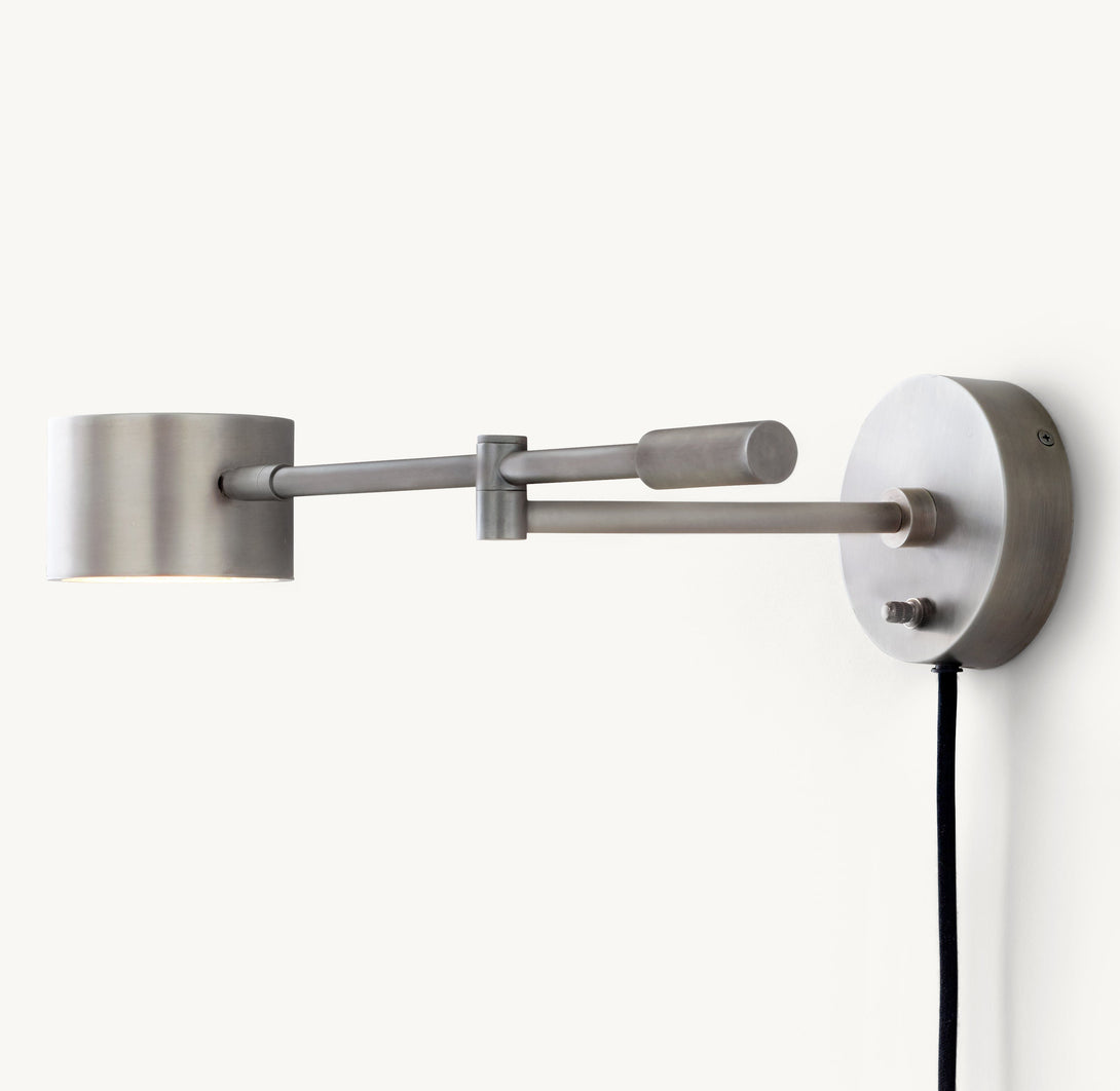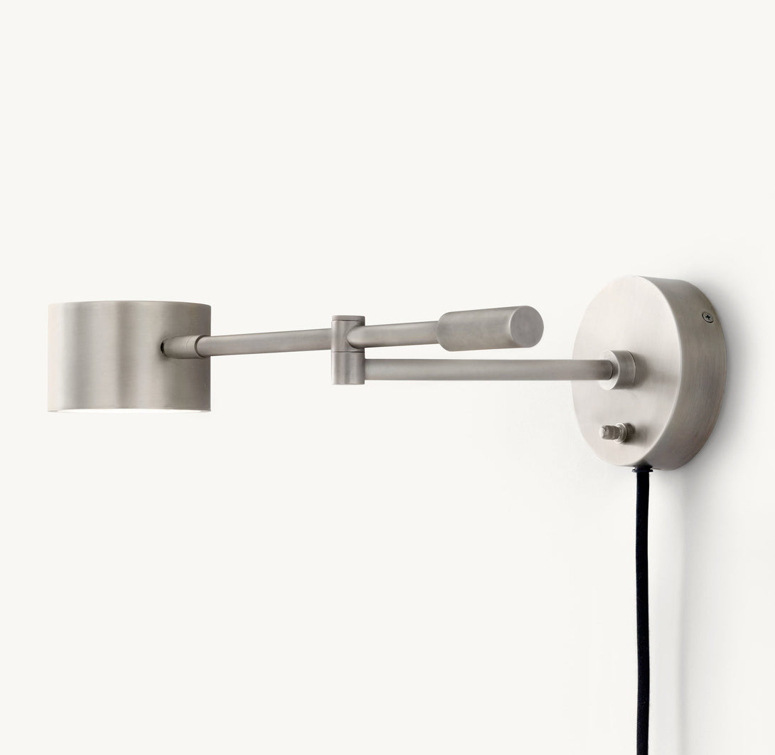 - Swing arm articulates side to side to direct light where it's needed most; head swivels up and down and laterally