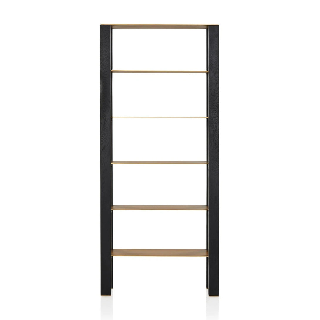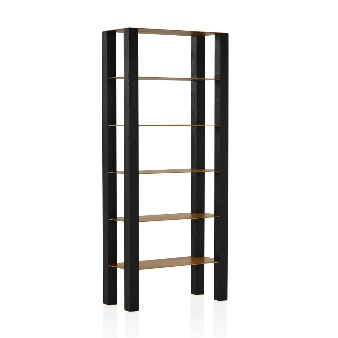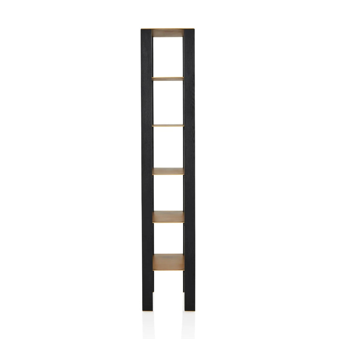 A bold geometric shelving unit featuring high contrast materials such as brass and brass painted steel.|Referencing artistic heritage with its high contrast materials of brushed brass and solid timber the Bleeker collection will make a statement in any contemporary setting. The Bleeker Shelving unit offers ample display possibilities for your living or study areas.