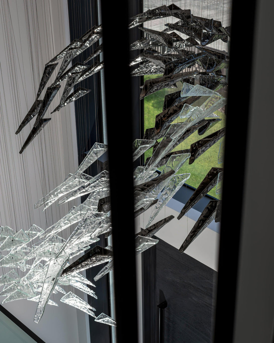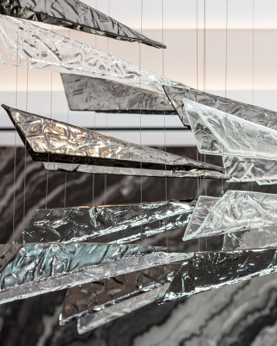 Experience the graceful beauty of nature with Breeze Chandelier. Inspired by the fluid movement of wind-blown leaves, this contemporary glass form adds an elegant touch to any space. Unleash the charm of the outdoors in your home with Breeze Chandelier.