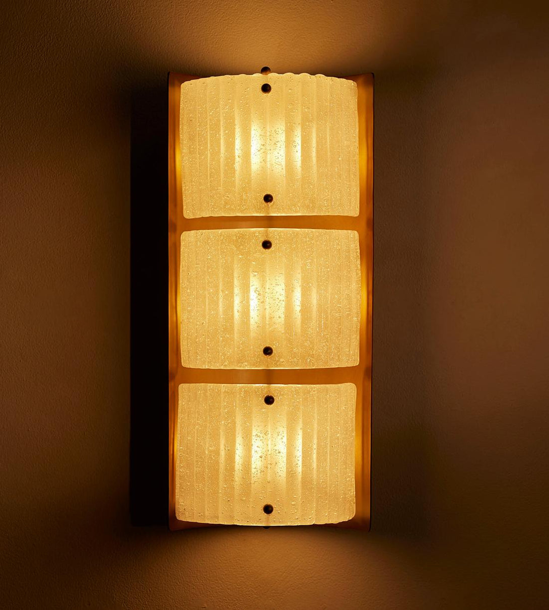 The domed silhouette of this wall sconce plays with texture through ribbed glass treated with a semi-sheer frosted finish.