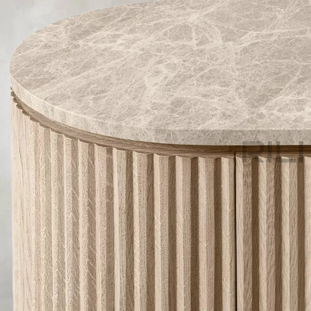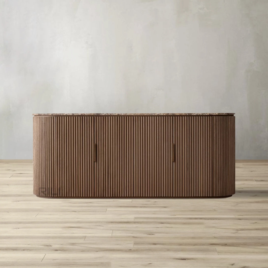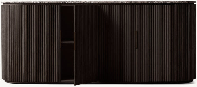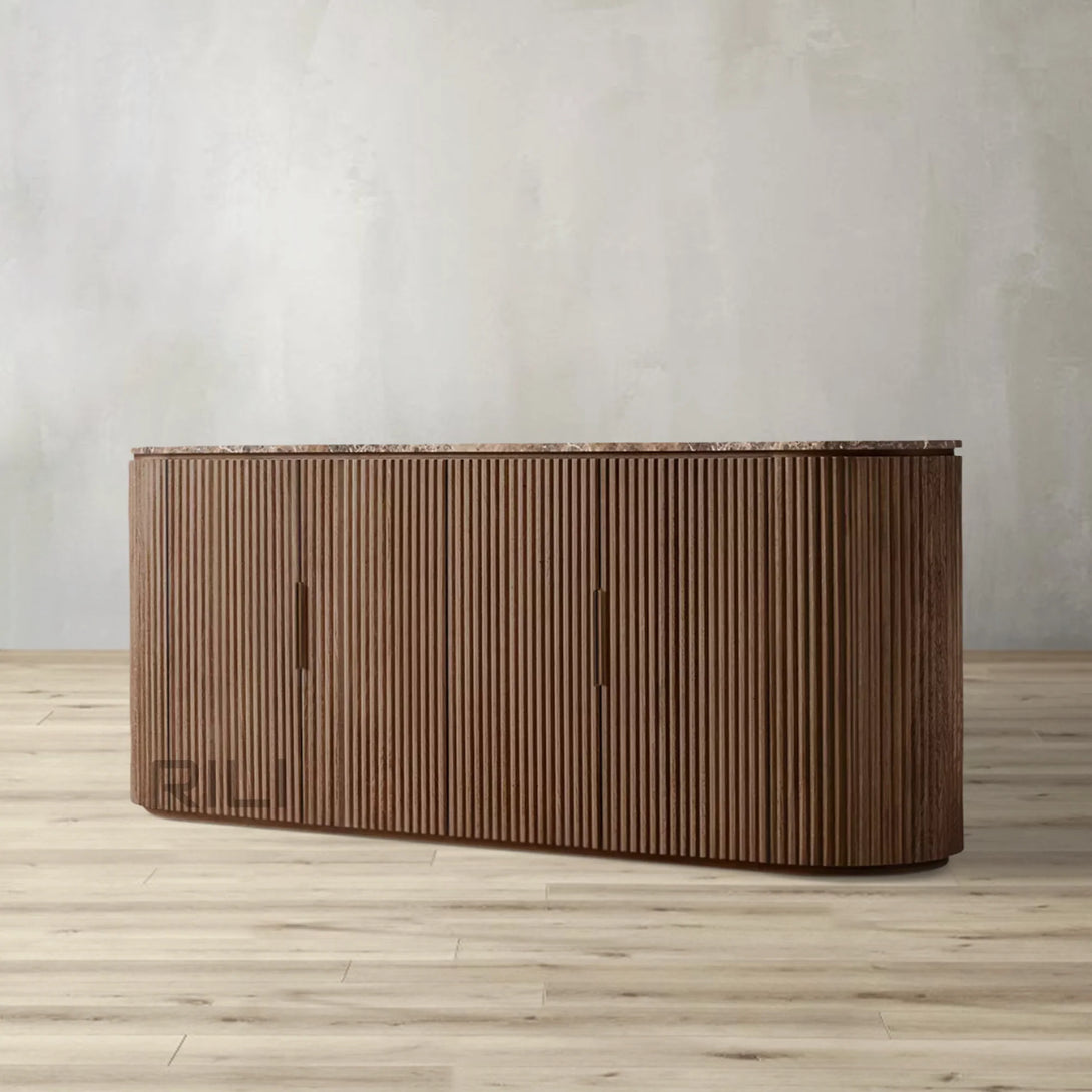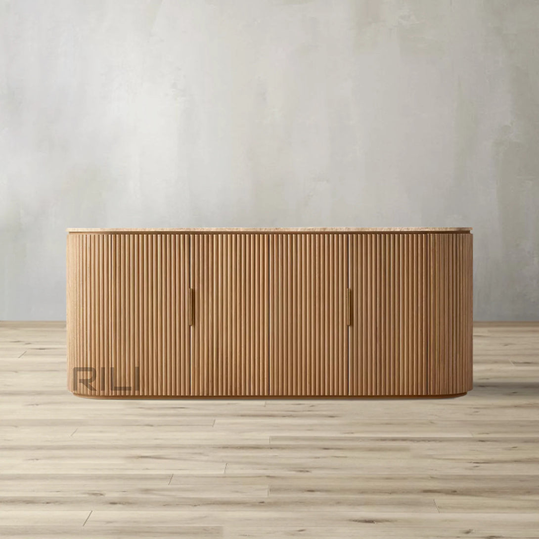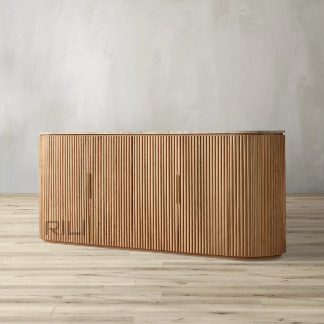 - Vertical oak reeding is finished in an intensive, multistep process that results in a smooth surface with visible grain