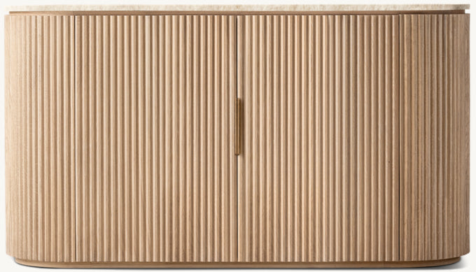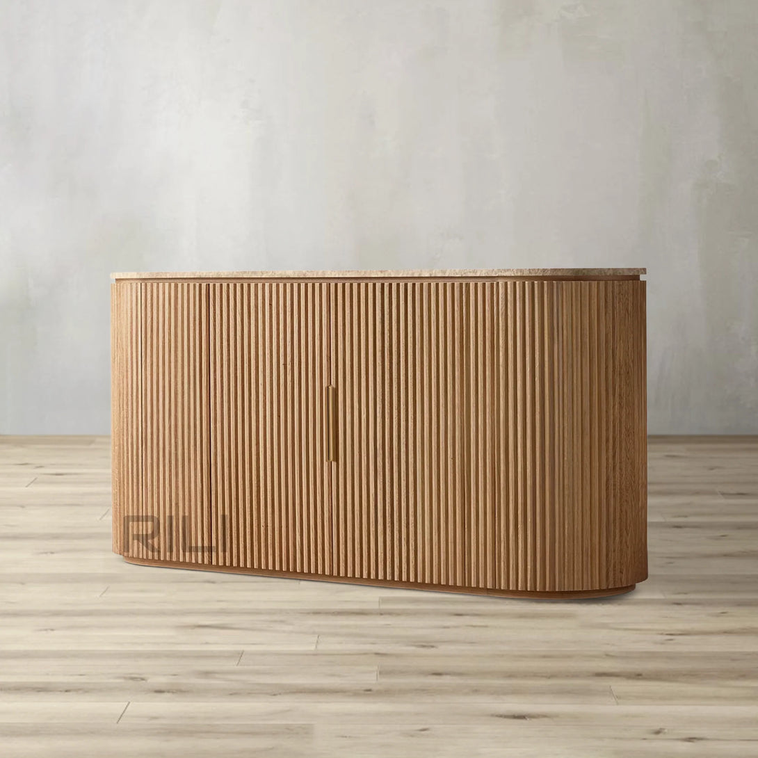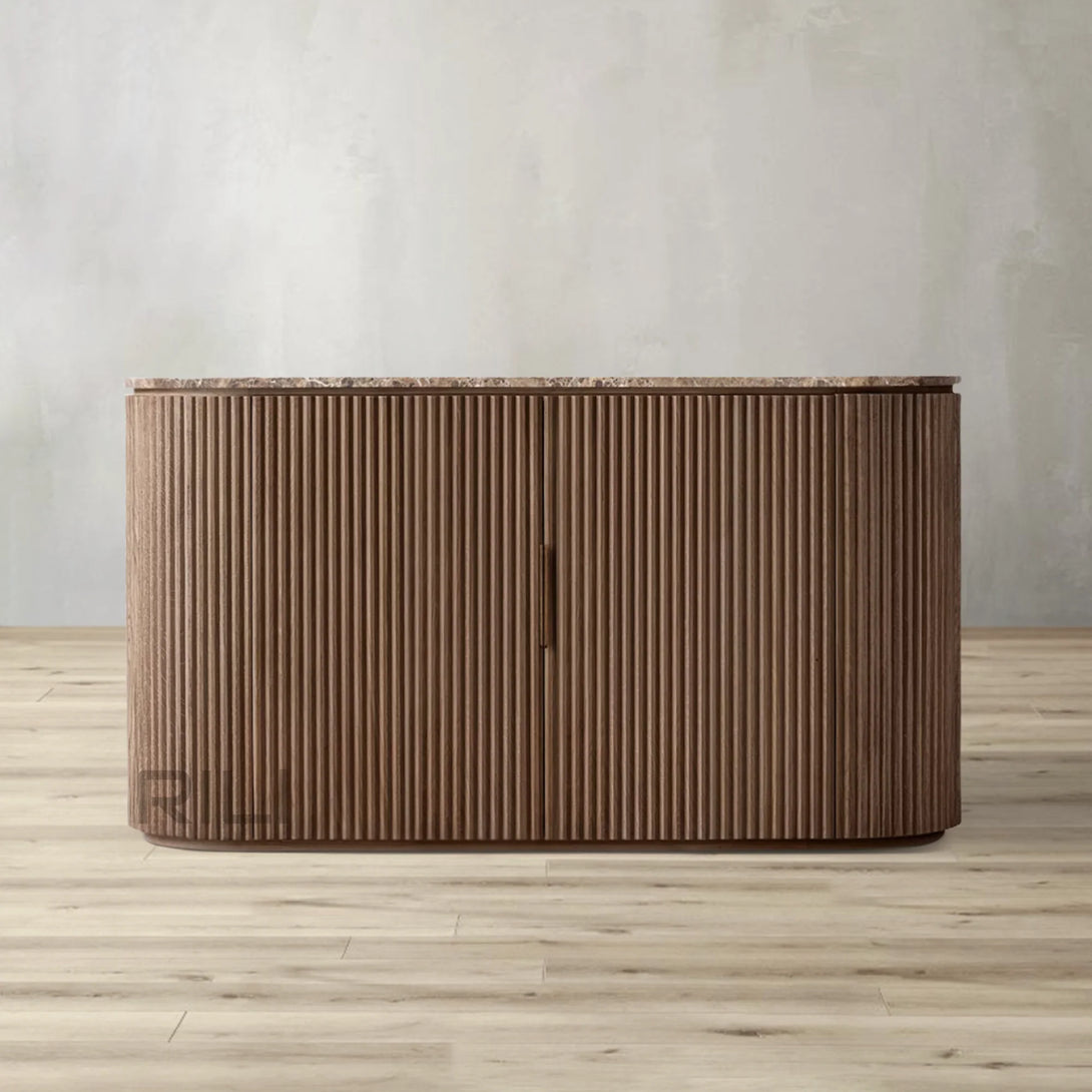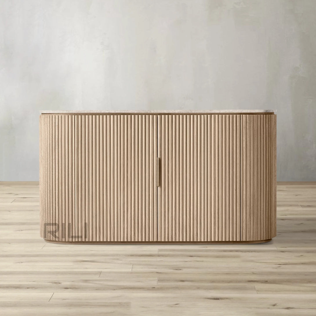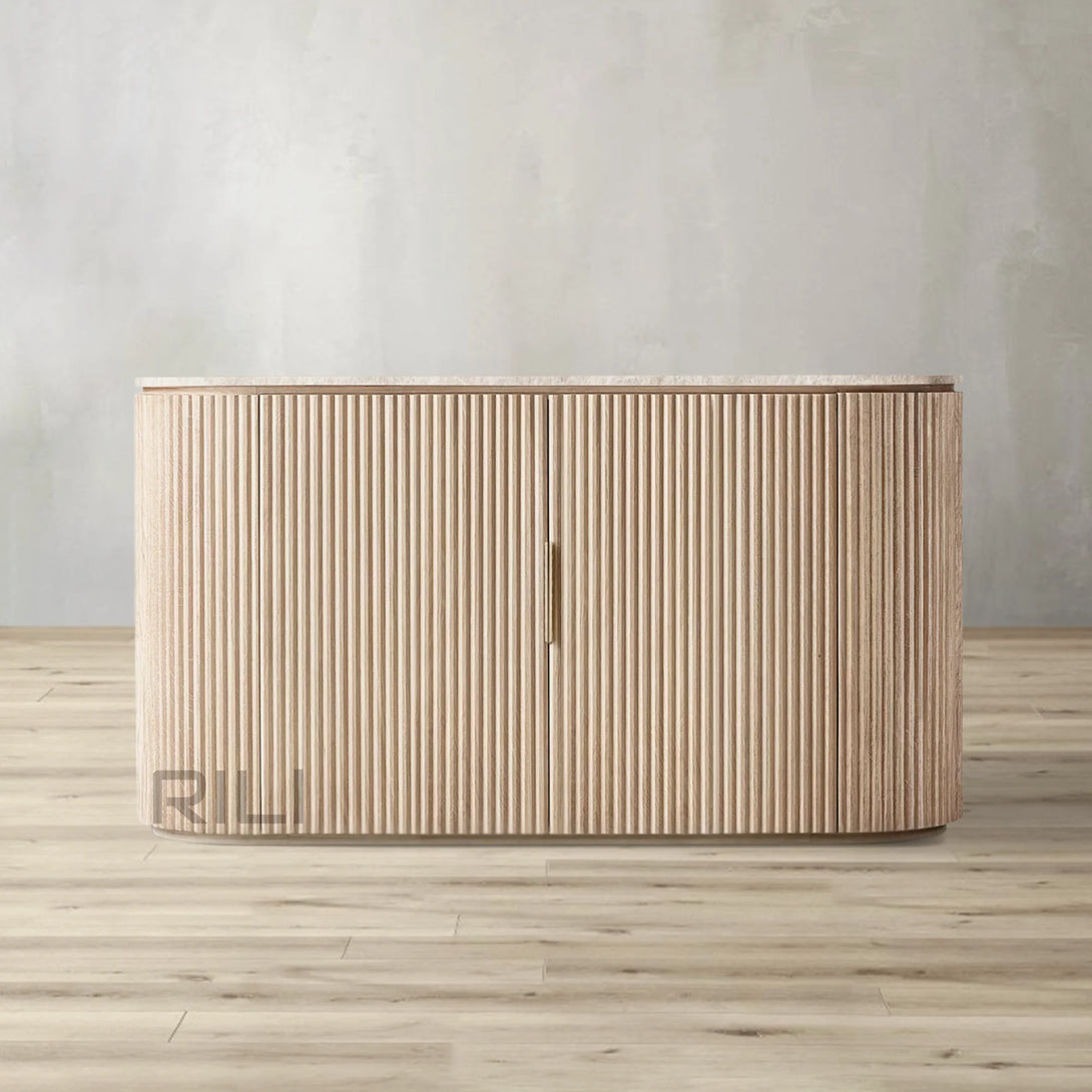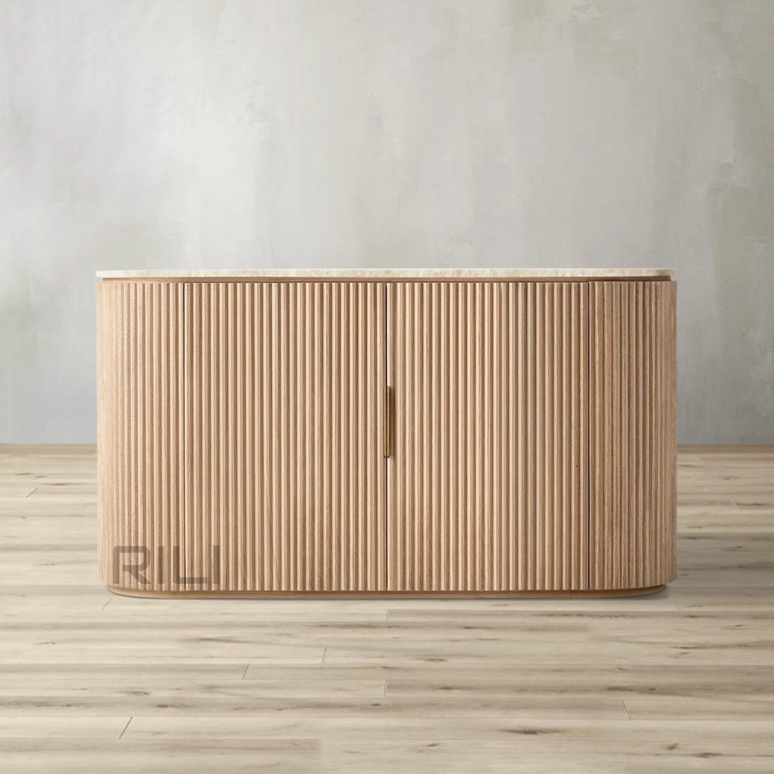 - Vertical oak reeding is finished in an intensive, multistep process that results in a smooth surface with visible grain