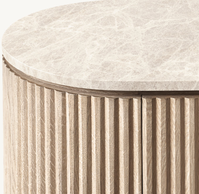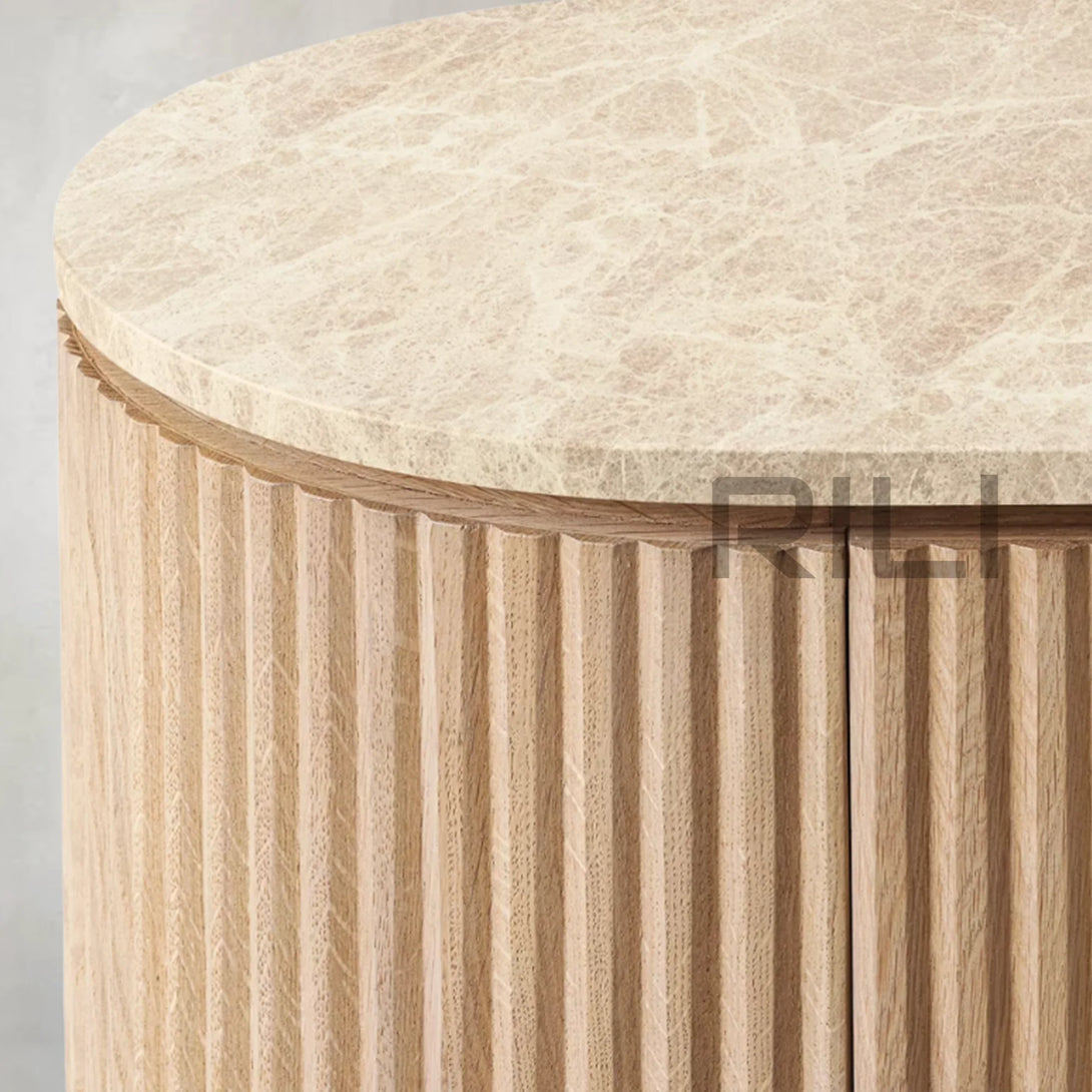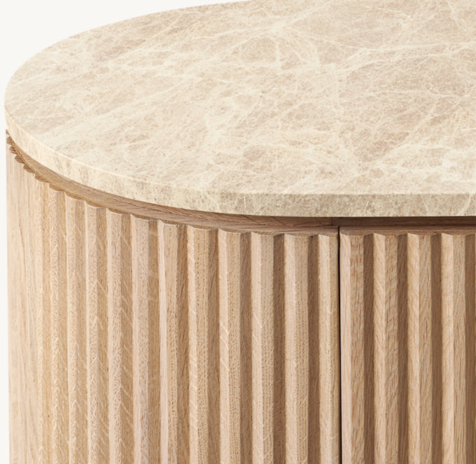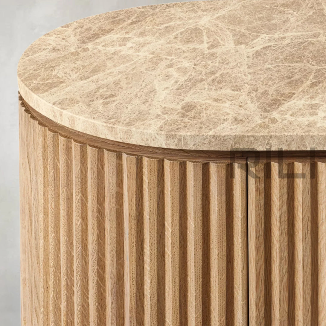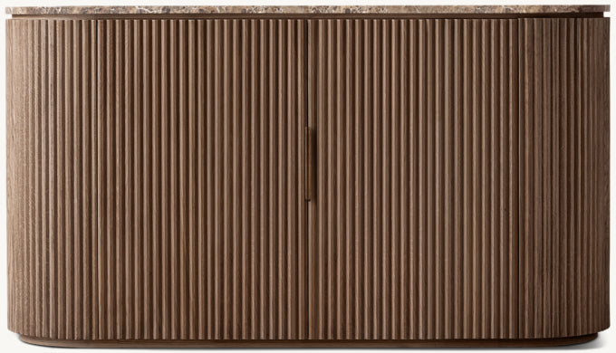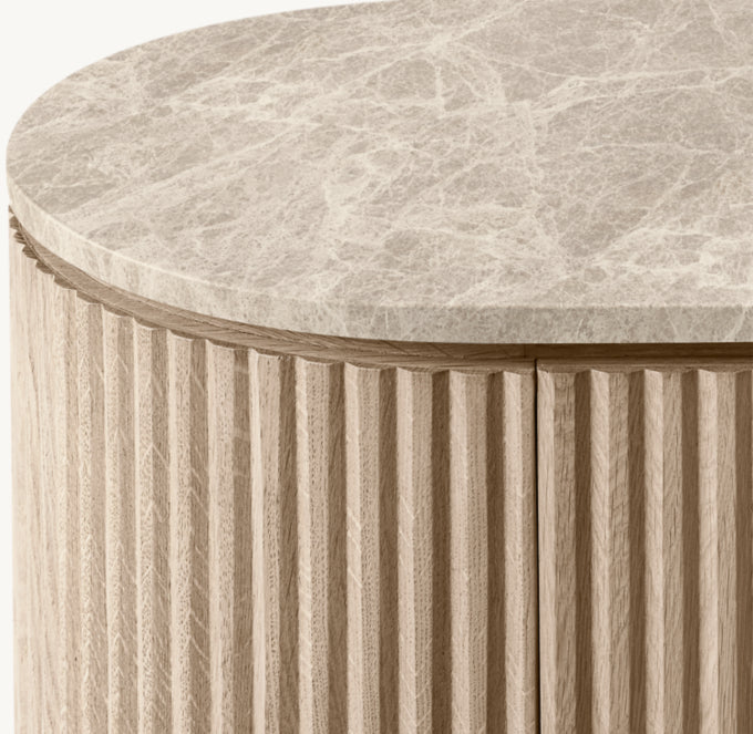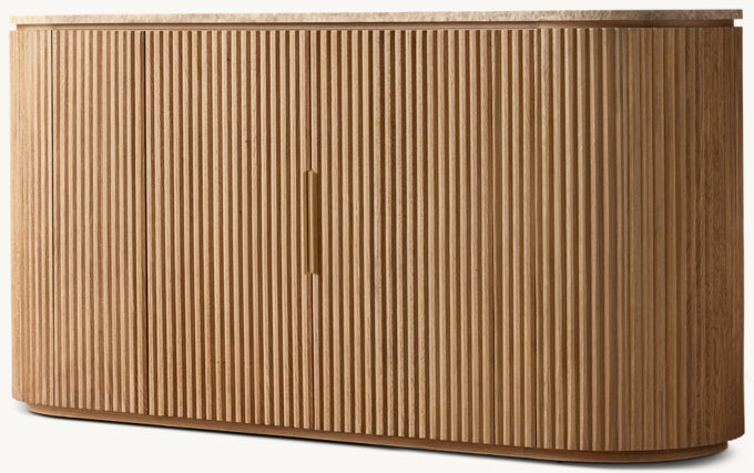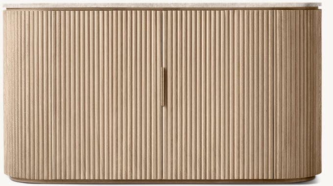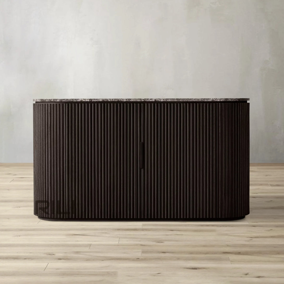 - Vertical oak reeding is finished in an intensive, multistep process that results in a smooth surface with visible grain