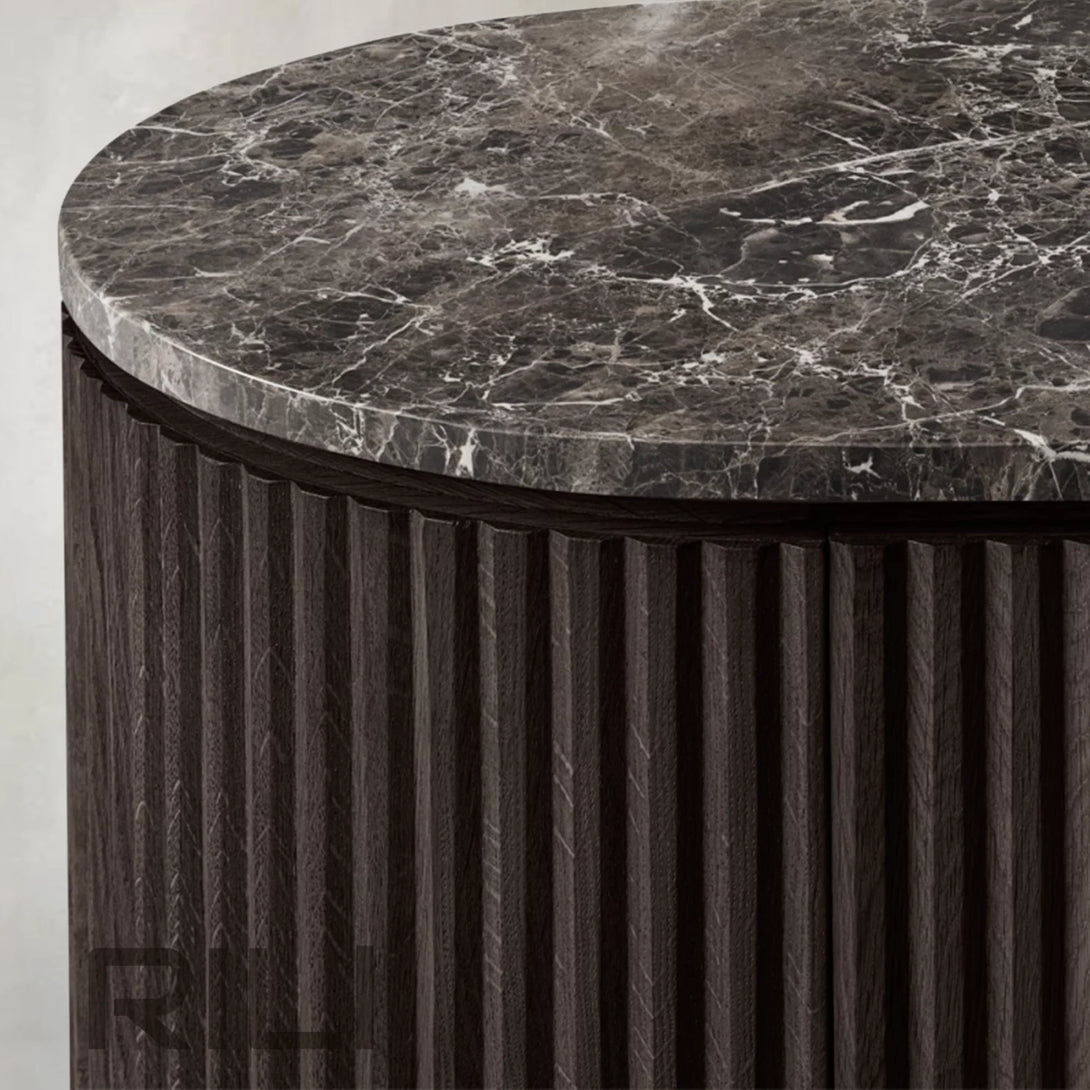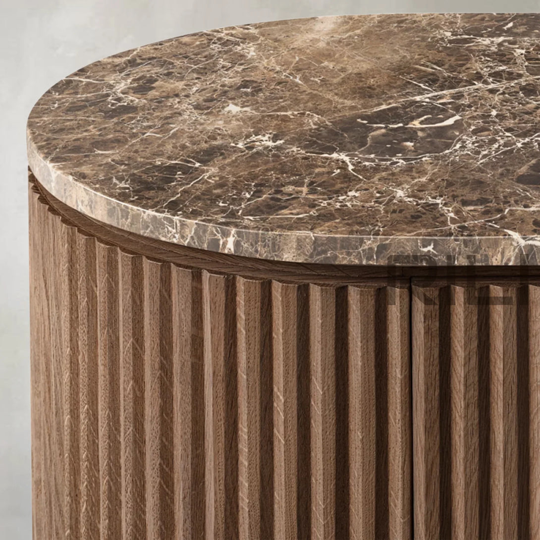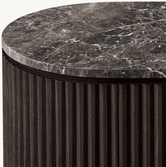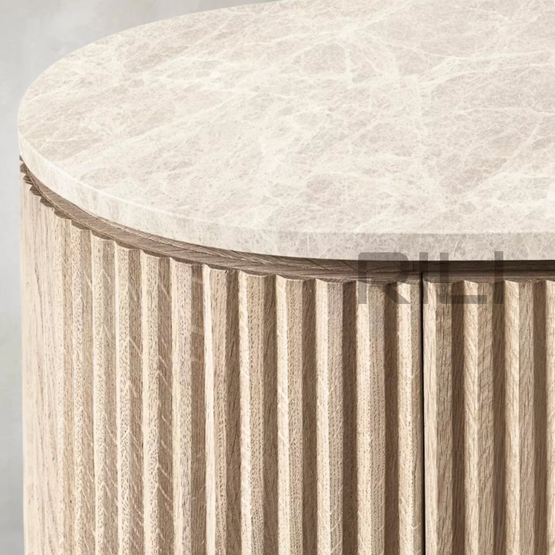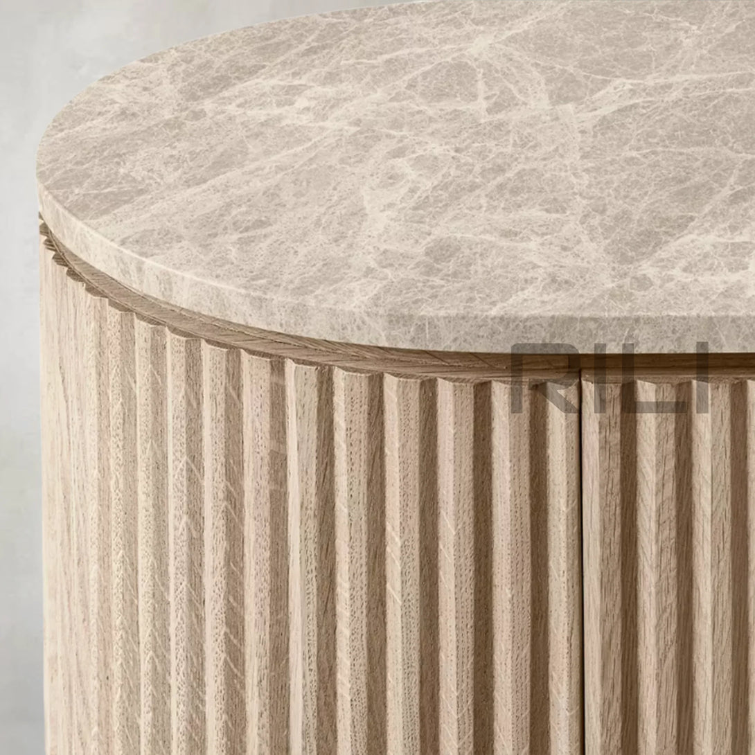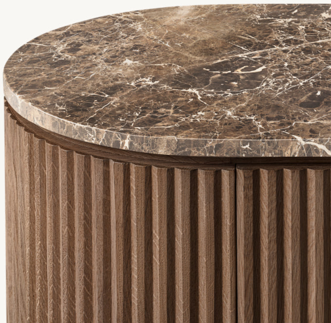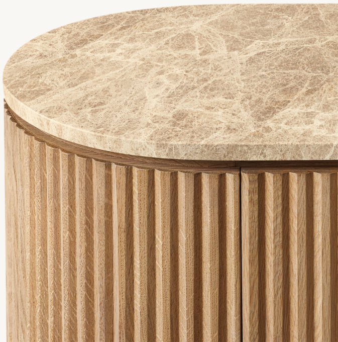 - Vertical oak reeding is finished in an intensive, multistep process that results in a smooth surface with visible grain