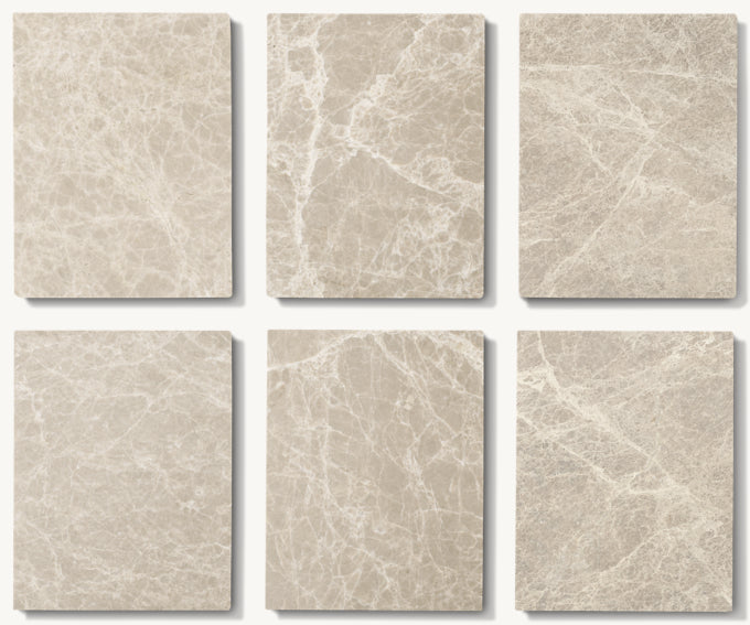 - Marble is honed and sealed for a smooth finish that enhances its distinctive vein patterning and natural color contrasts