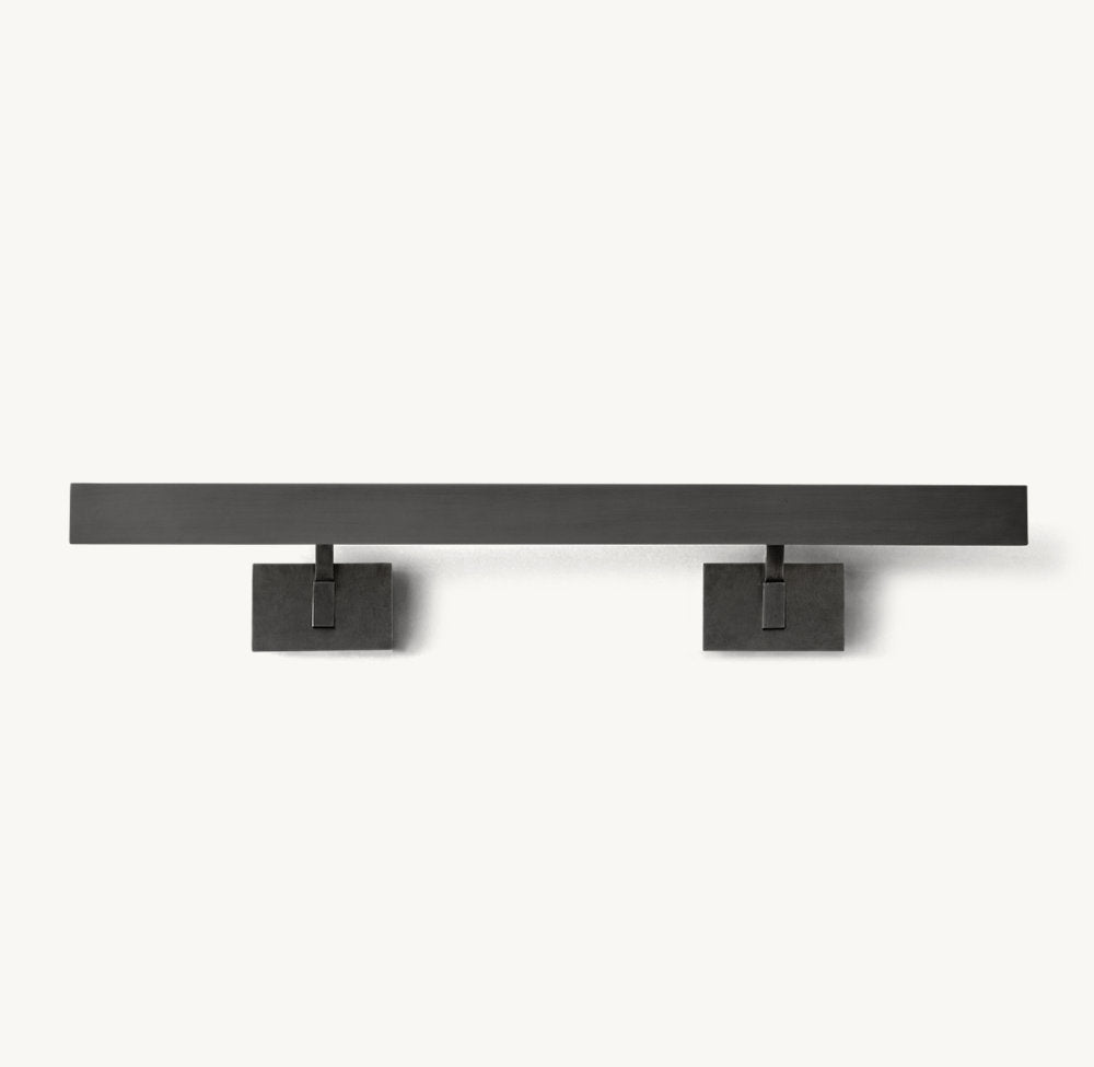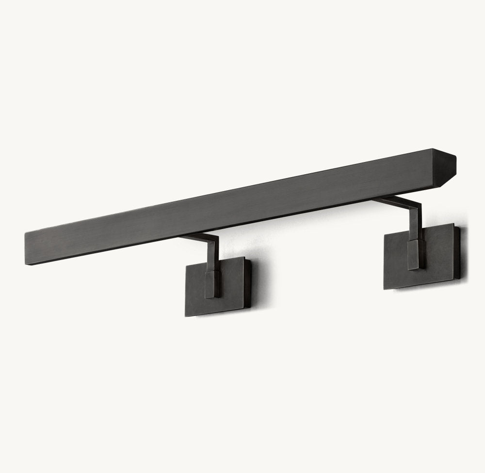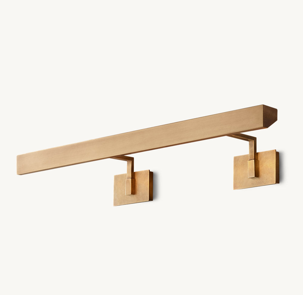 Pure of form, our Cabot gallery light offers streamlined functionality. Handcrafted of brass, the fixture's pentagonal shade features hinged adjustment points for customized illumination.