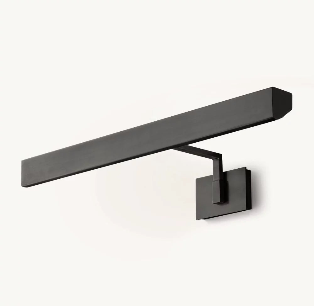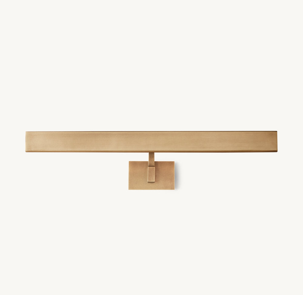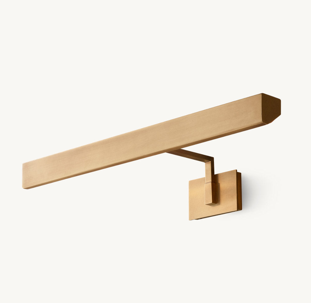 Pure of form, our Cabot gallery light offers streamlined functionality. Handcrafted of brass, the fixture's pentagonal shade features hinged adjustment points for customized illumination.