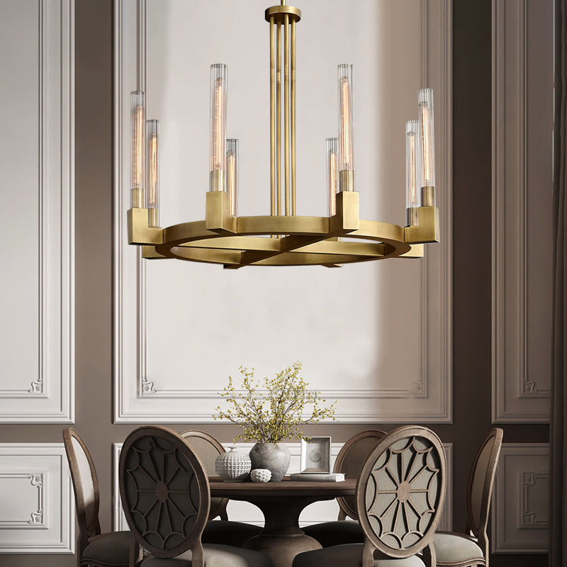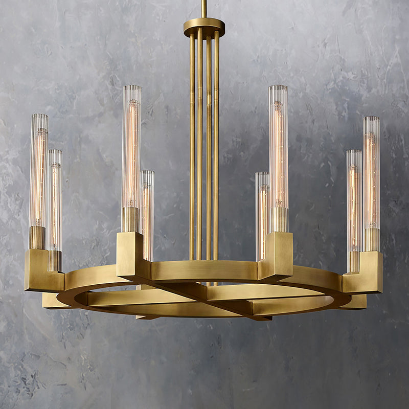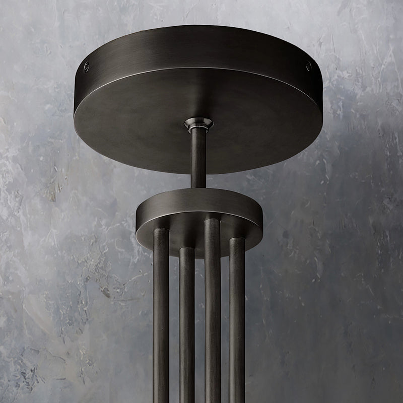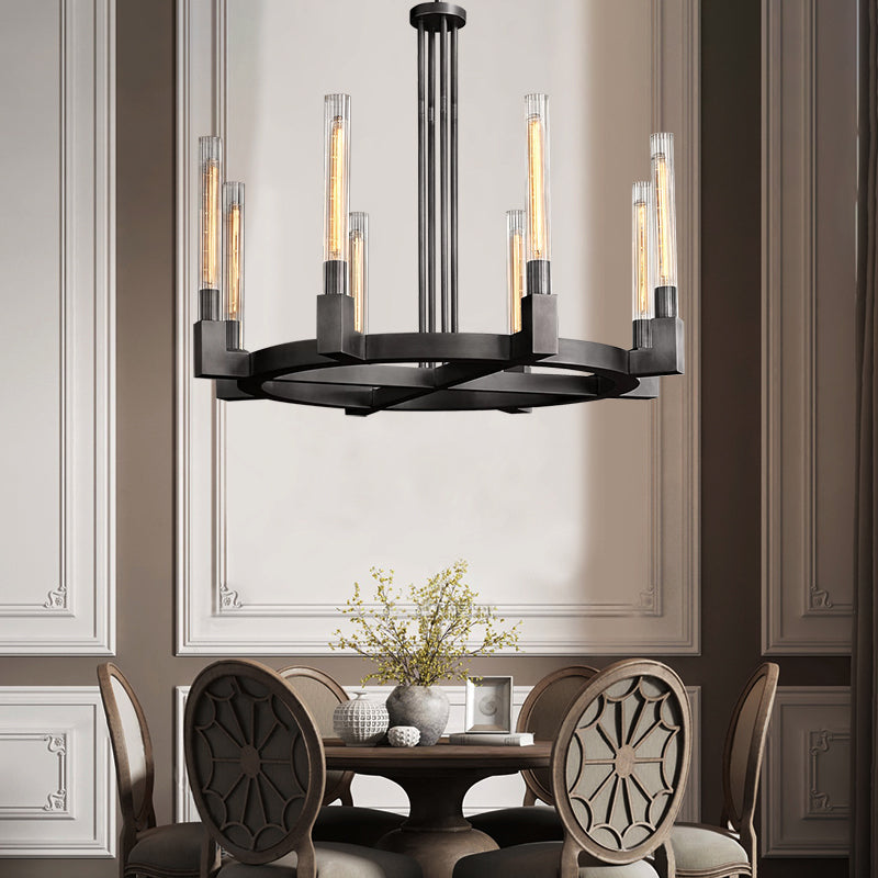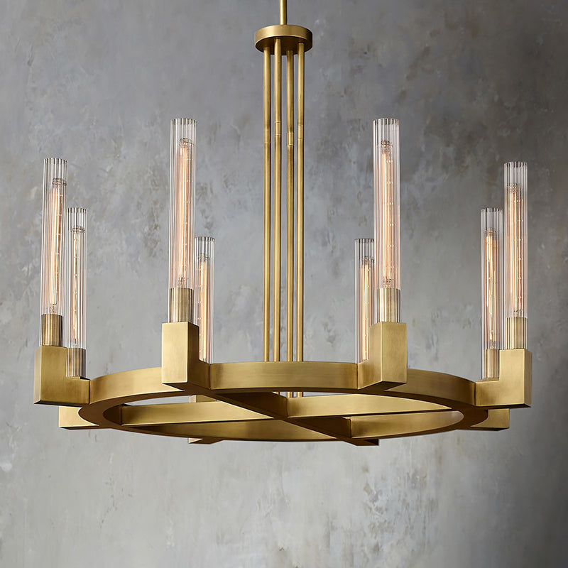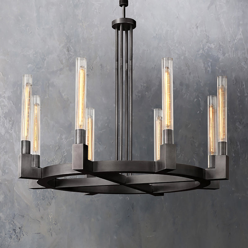 Dimension:Chandelier Body: 36" diam., 17"H ;Inner Ring: 29" diam.; Minimum Height: 17"; Maximum Height: 82"; Rods: eight 6", eight 12" and eight 18"; Canopy: 8" diam., 1½"H; Weight: 45 lbs.