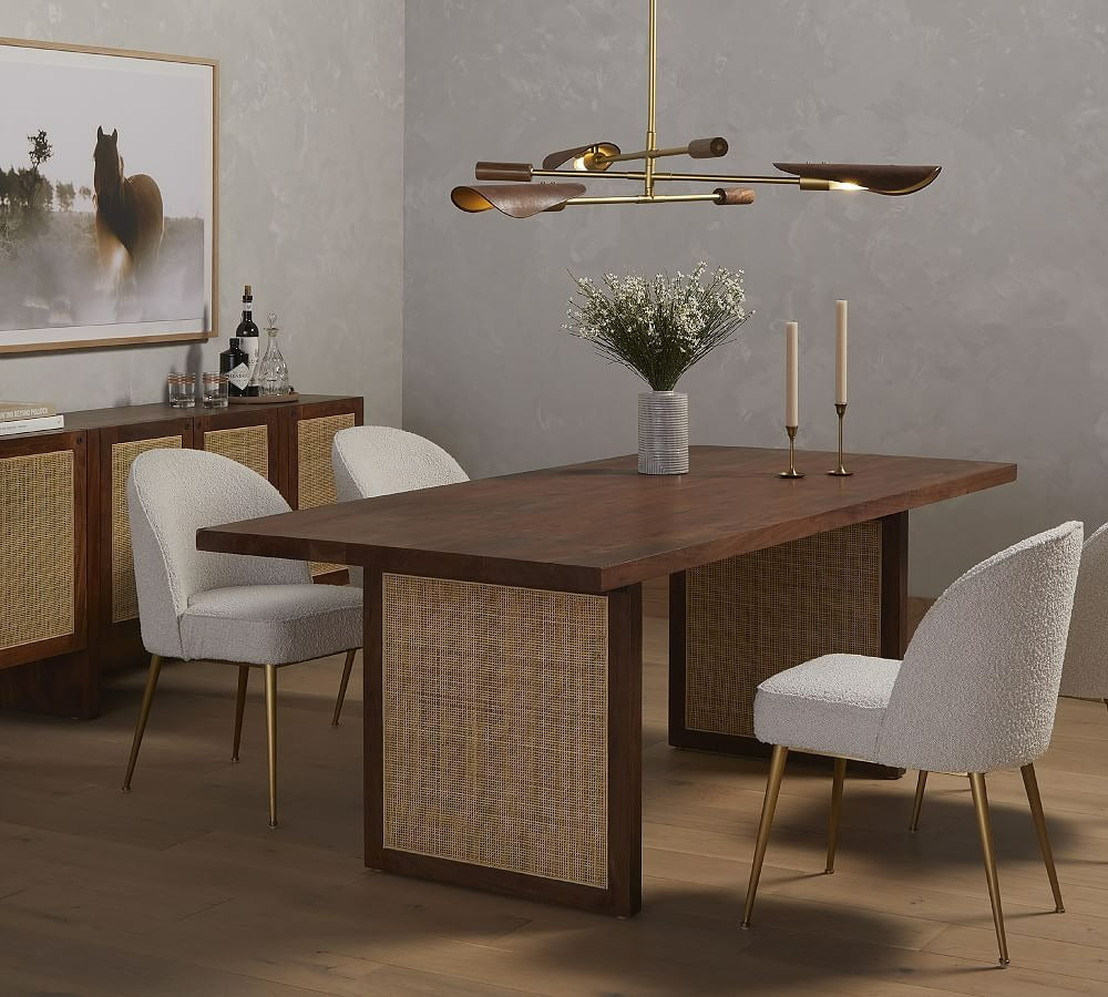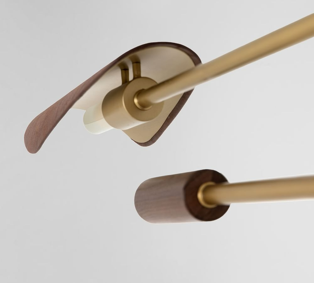 - Made from iron, walnut veneer, and top grain leather in a Brass finish.
