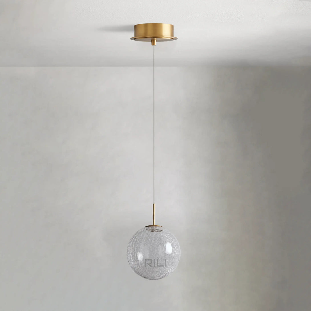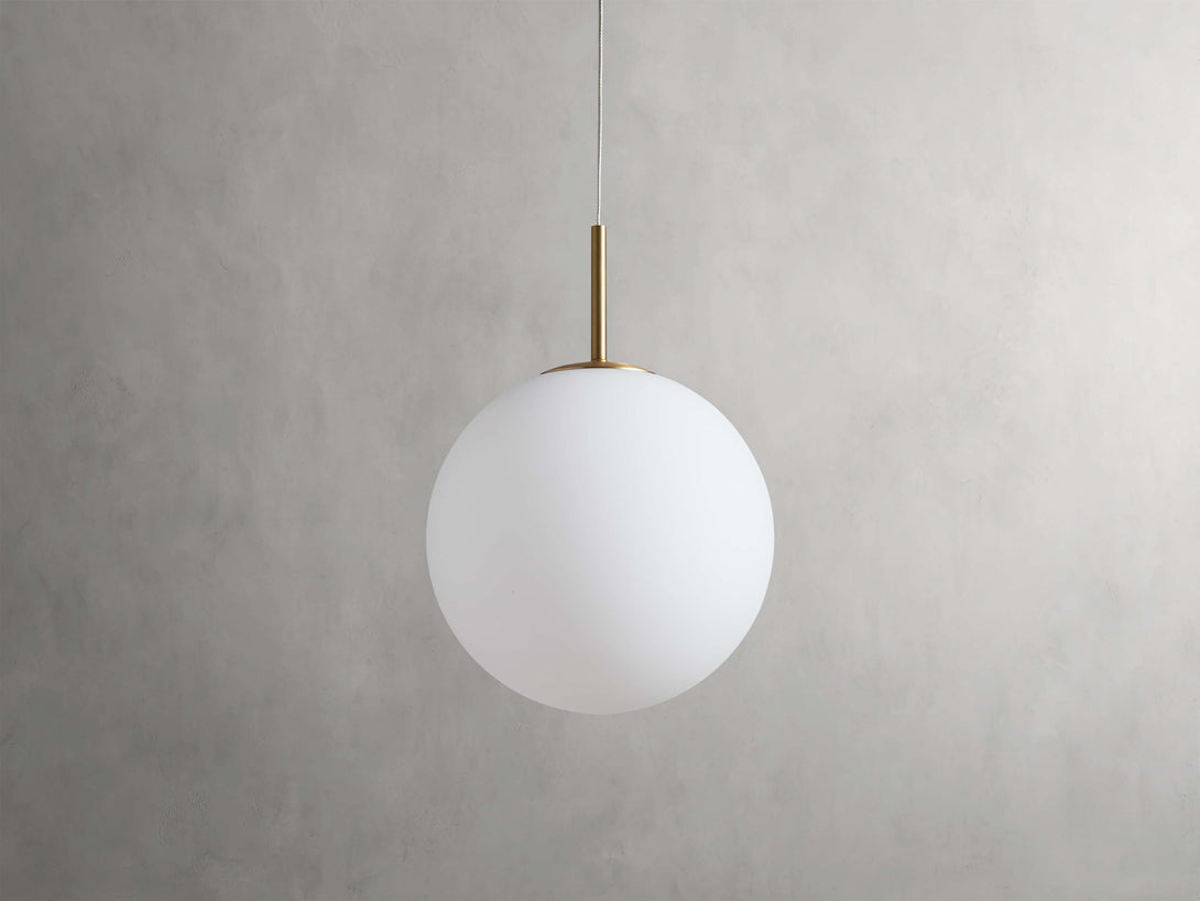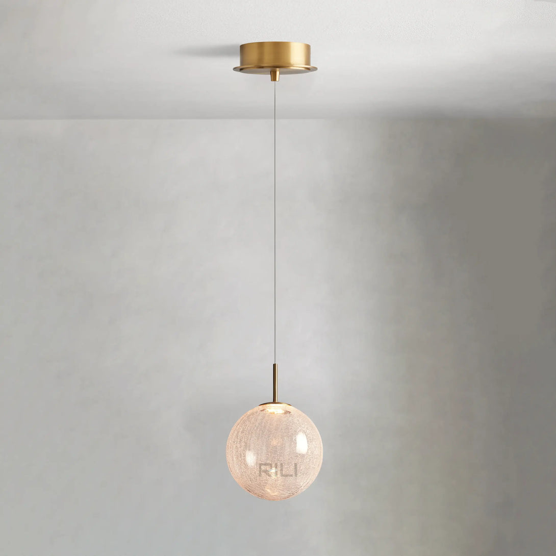 - Crafted from stainless steel with a satin brass finish and a mouth blown solid opal glass globe or crackle glass globe.