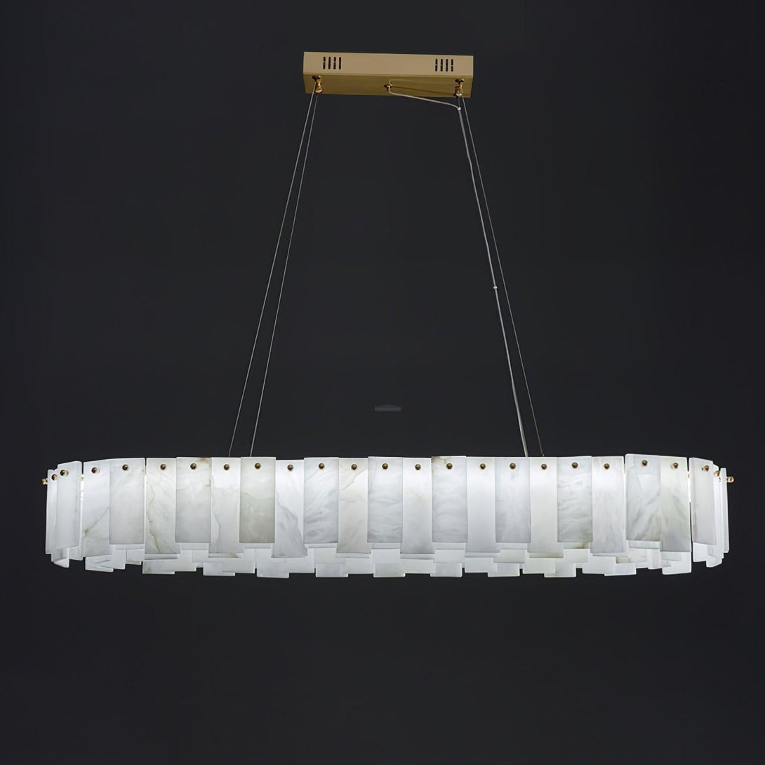 Elevate your space with the enchanting Celestial Alabaster Round Chandelier. Boasting a series of suspended alabaster discs. this chandelier effortlessly creates a celestial effect. Each disc is meticulously positioned to allow warm. soothing light to illuminate through the distinct marble patterns. The brass accents introduce a touch of modern elegance to this mesmerizing piece. Illuminate your surroundings with celestial charm and sophistication.