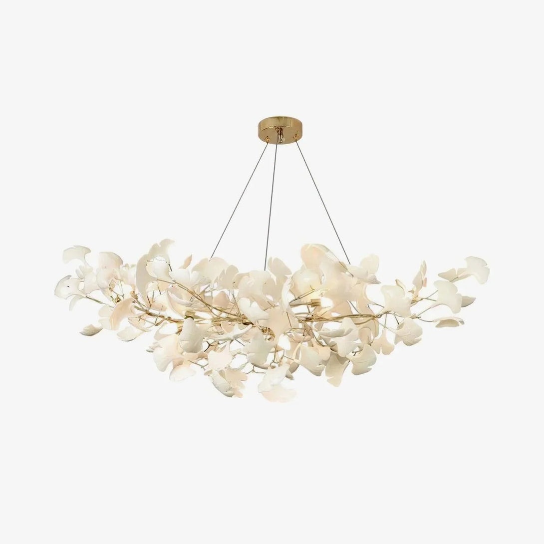 This ceramic ginkgo tree petal chandelier shows its luxurious style in overall design, material, and manufacturing technology. The metal lamp body is covered with exquisite ceramic petals, which reflects the perfect combination of lighting design and natural plants.