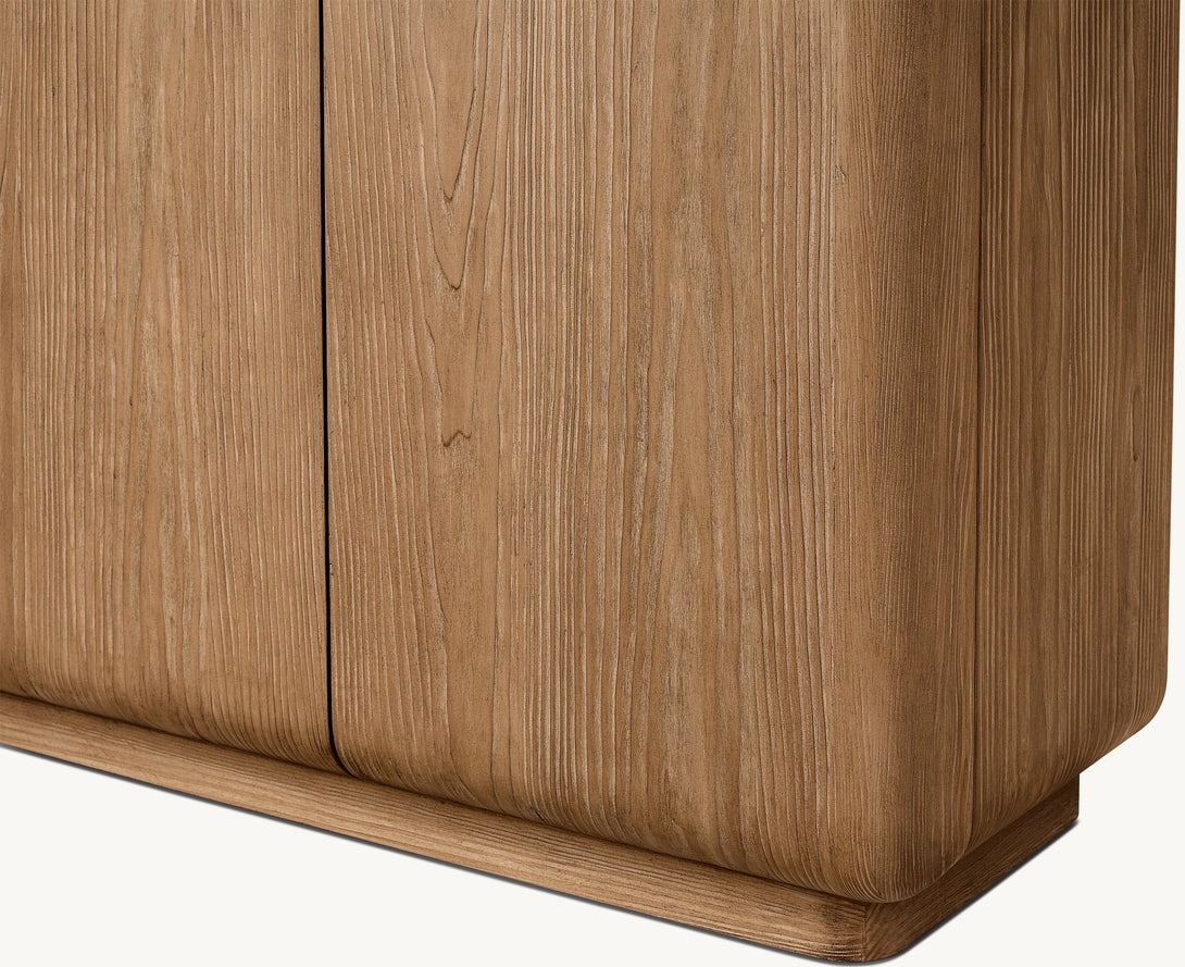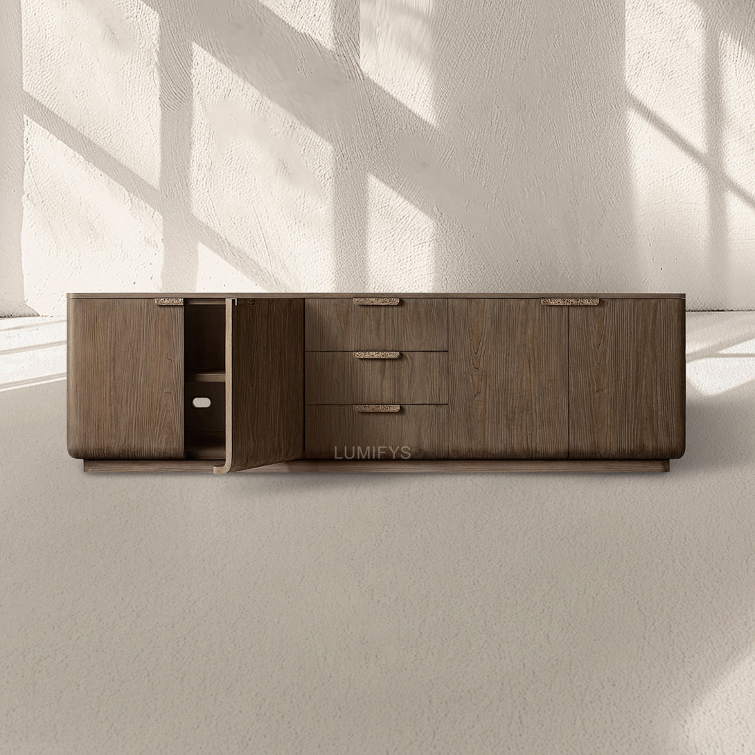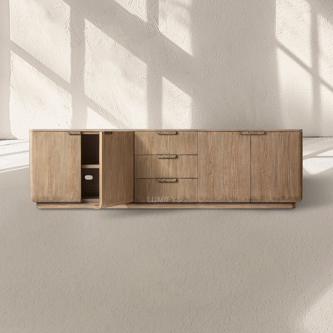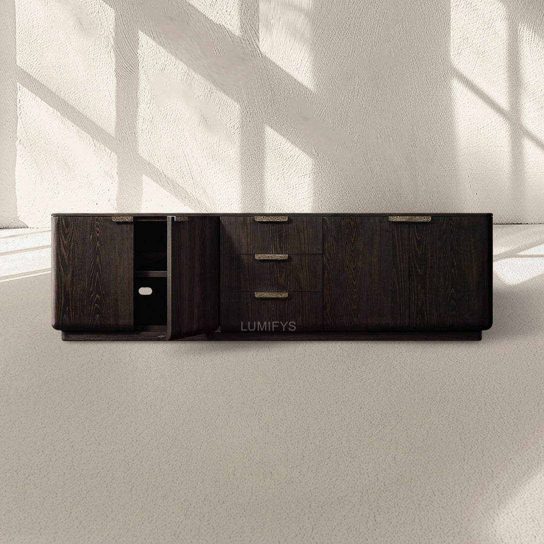 - Back of media console has a complementary finish; cabinet interior is fully finished