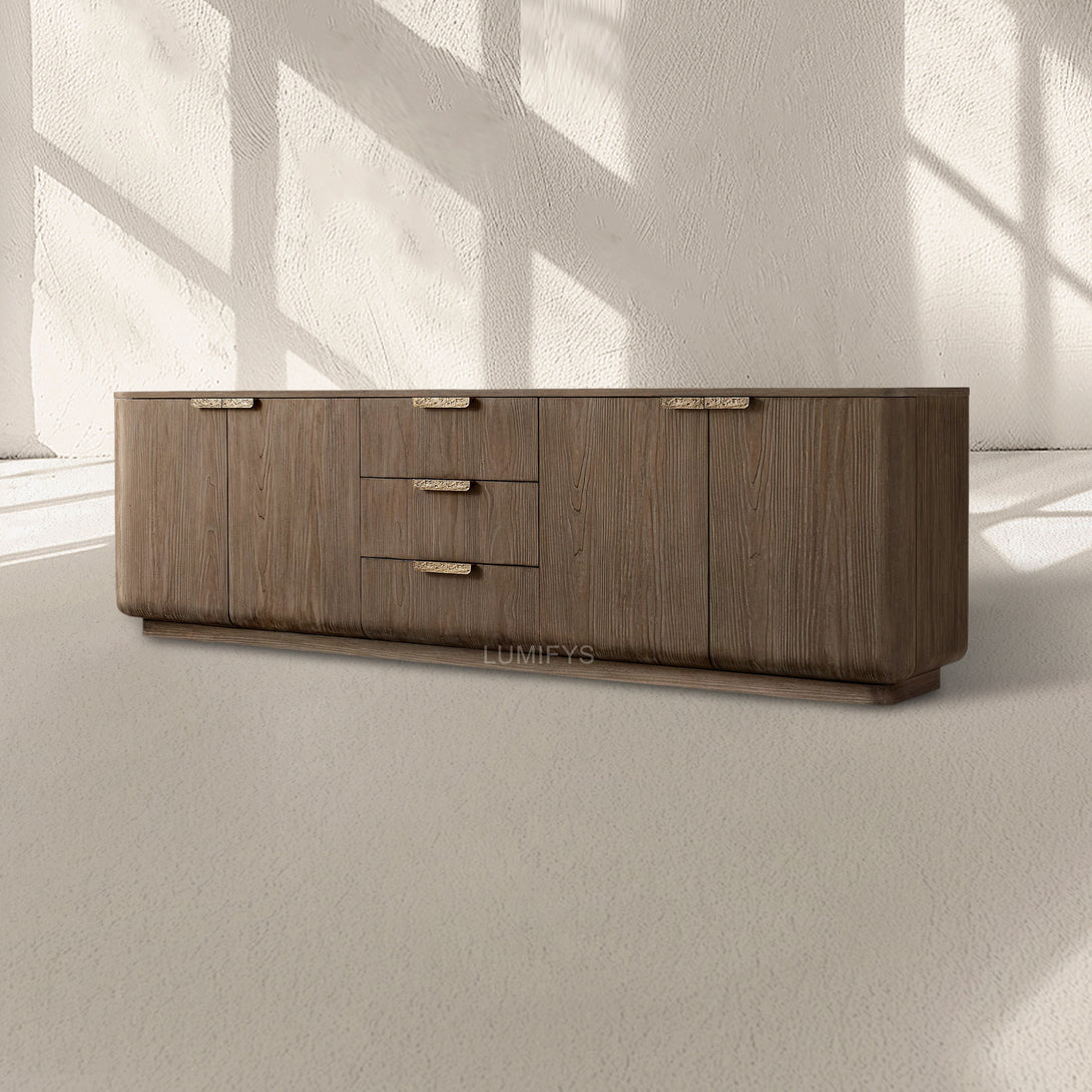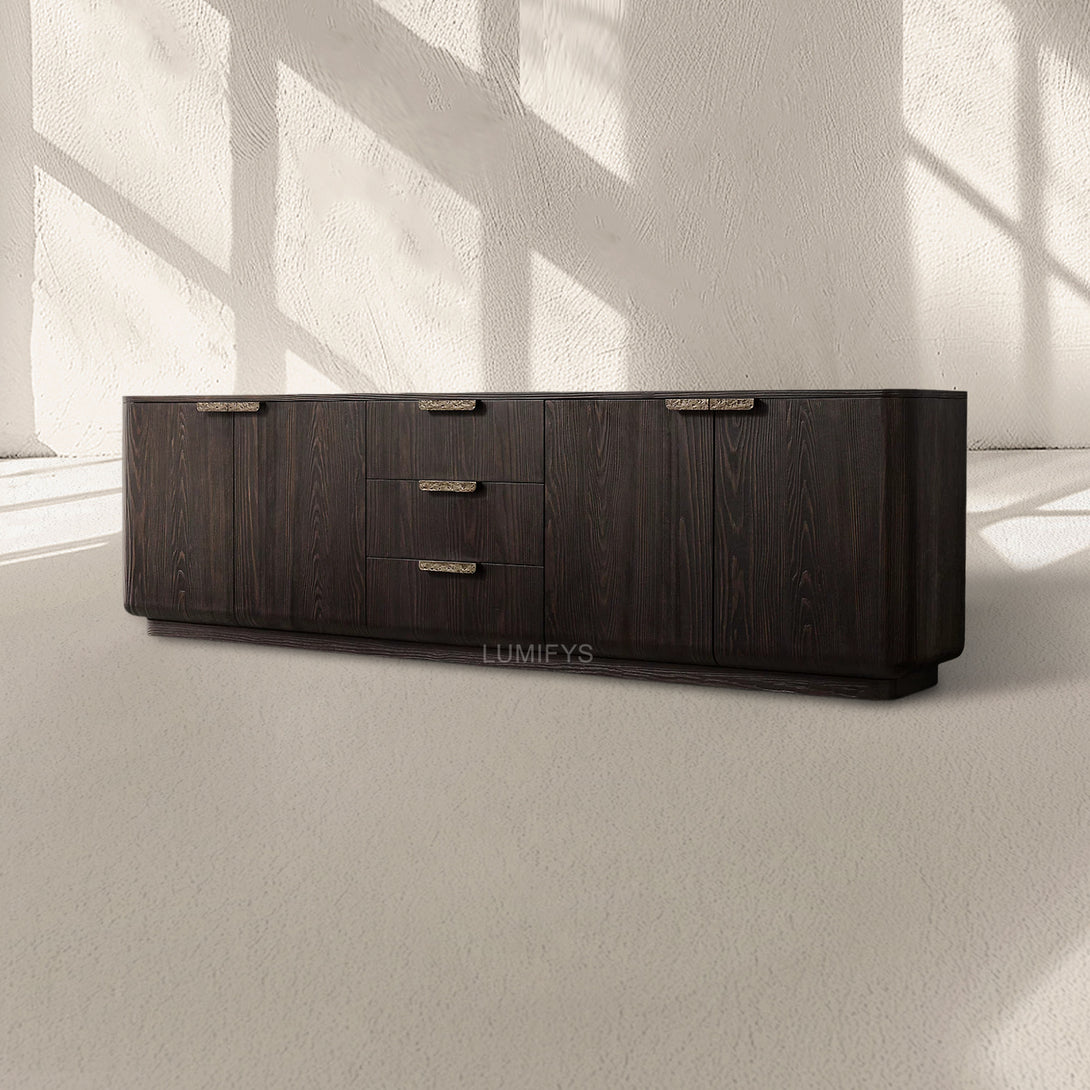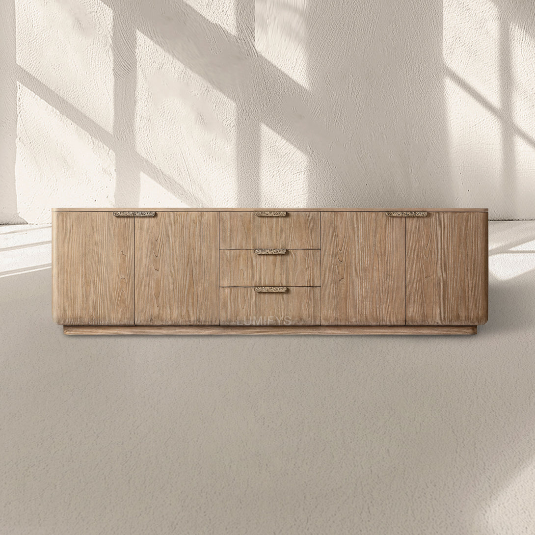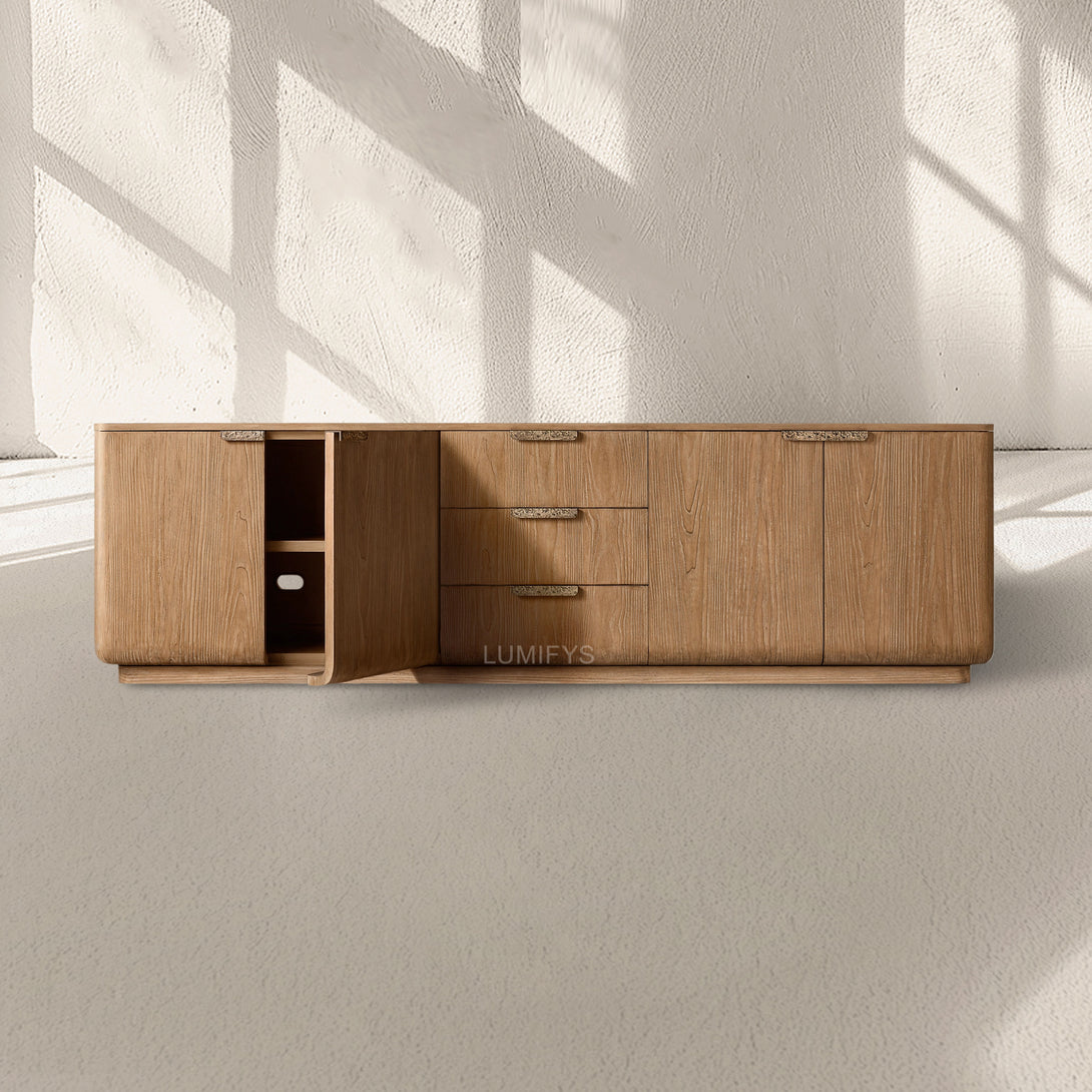 - Back of media console has a complementary finish; cabinet interior is fully finished