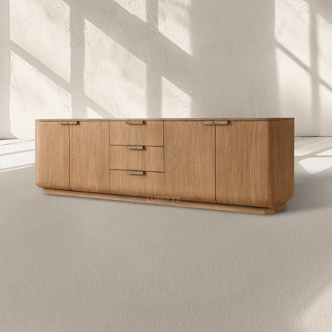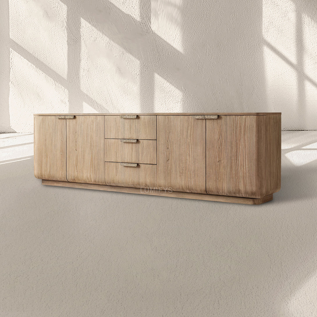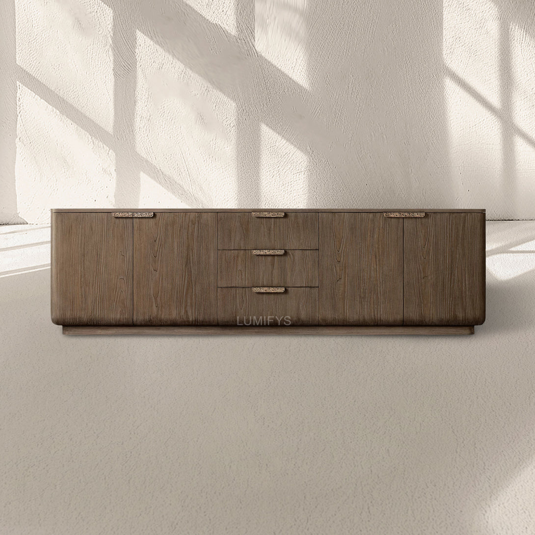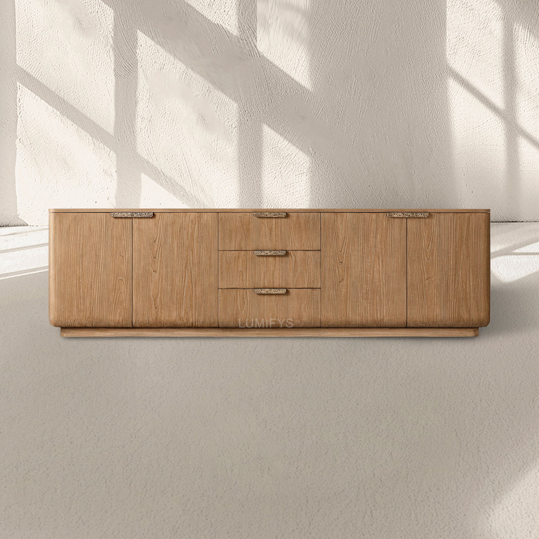 - Back of media console has a complementary finish; cabinet interior is fully finished