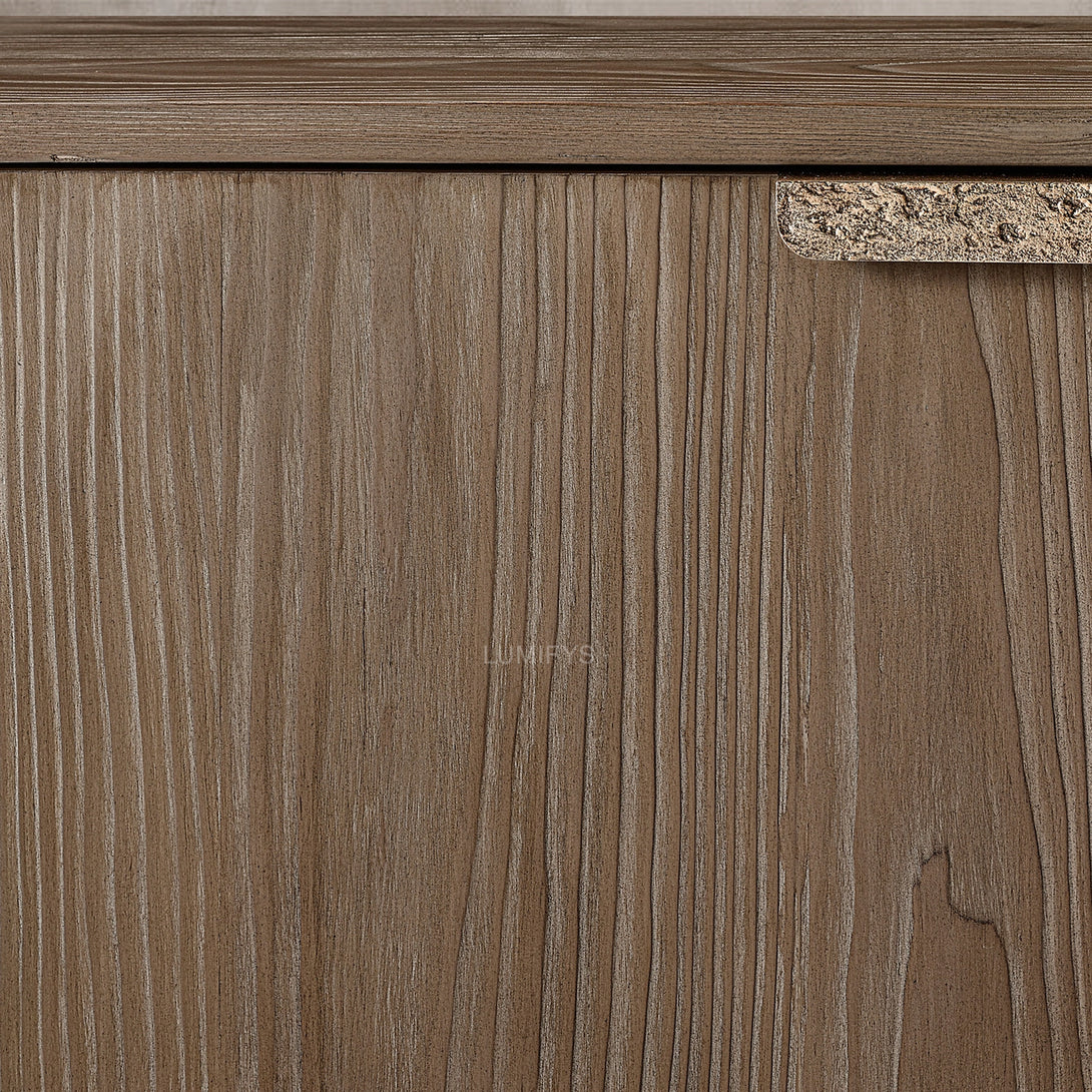- Hardware crafted of hand-cast stainless steel with a textured finish. Greige European Fir features Champagne hardware; all other finishes feature Cast Aged Brass hardware.