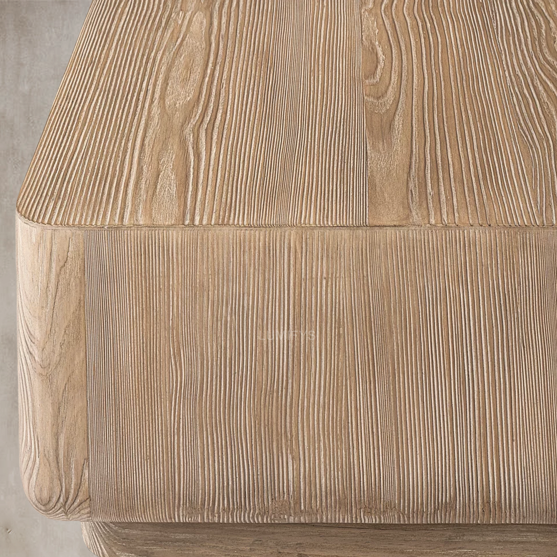 - An intensive, multistep finishing process, including dry brushing and sanding, results in a matte surface with deeply textured grain