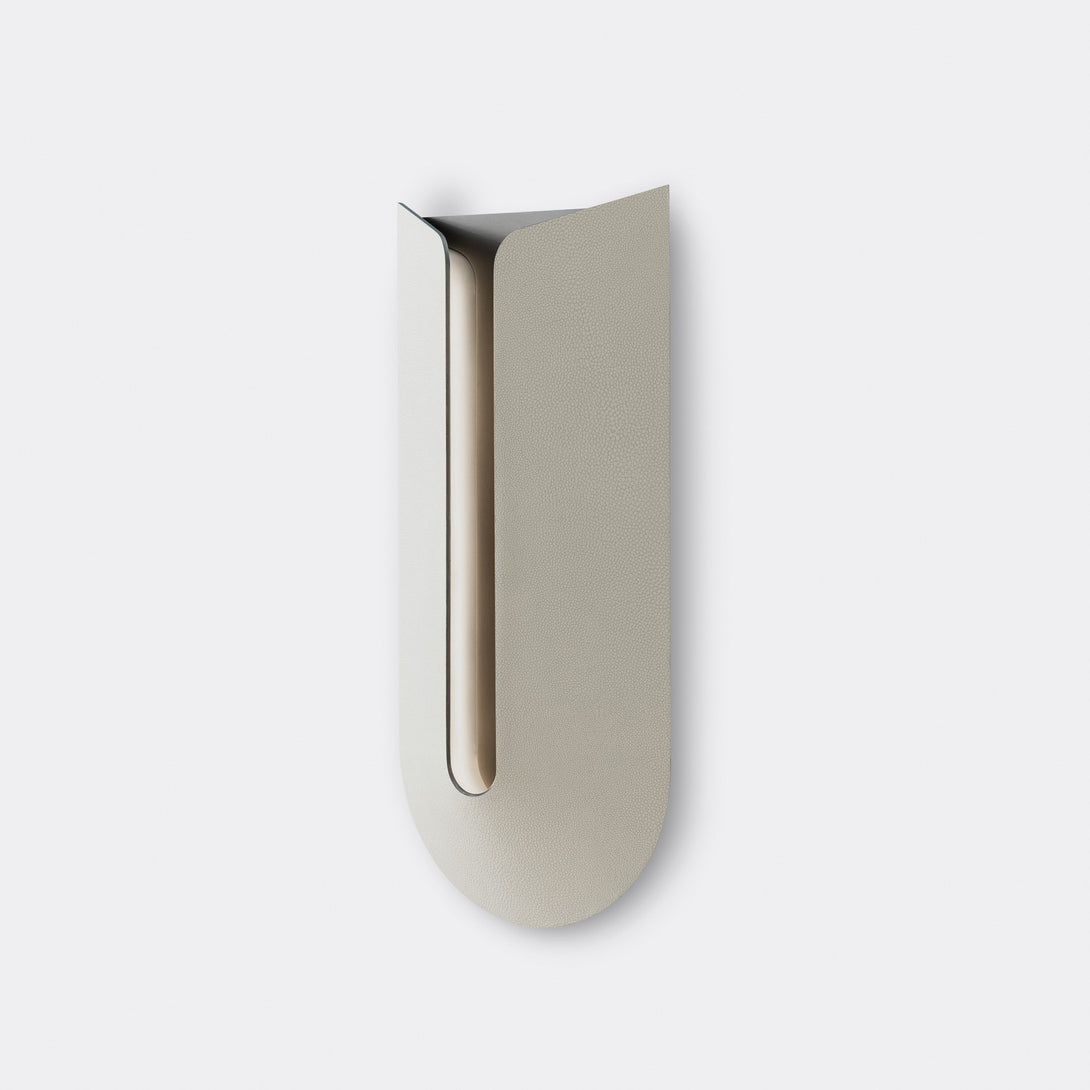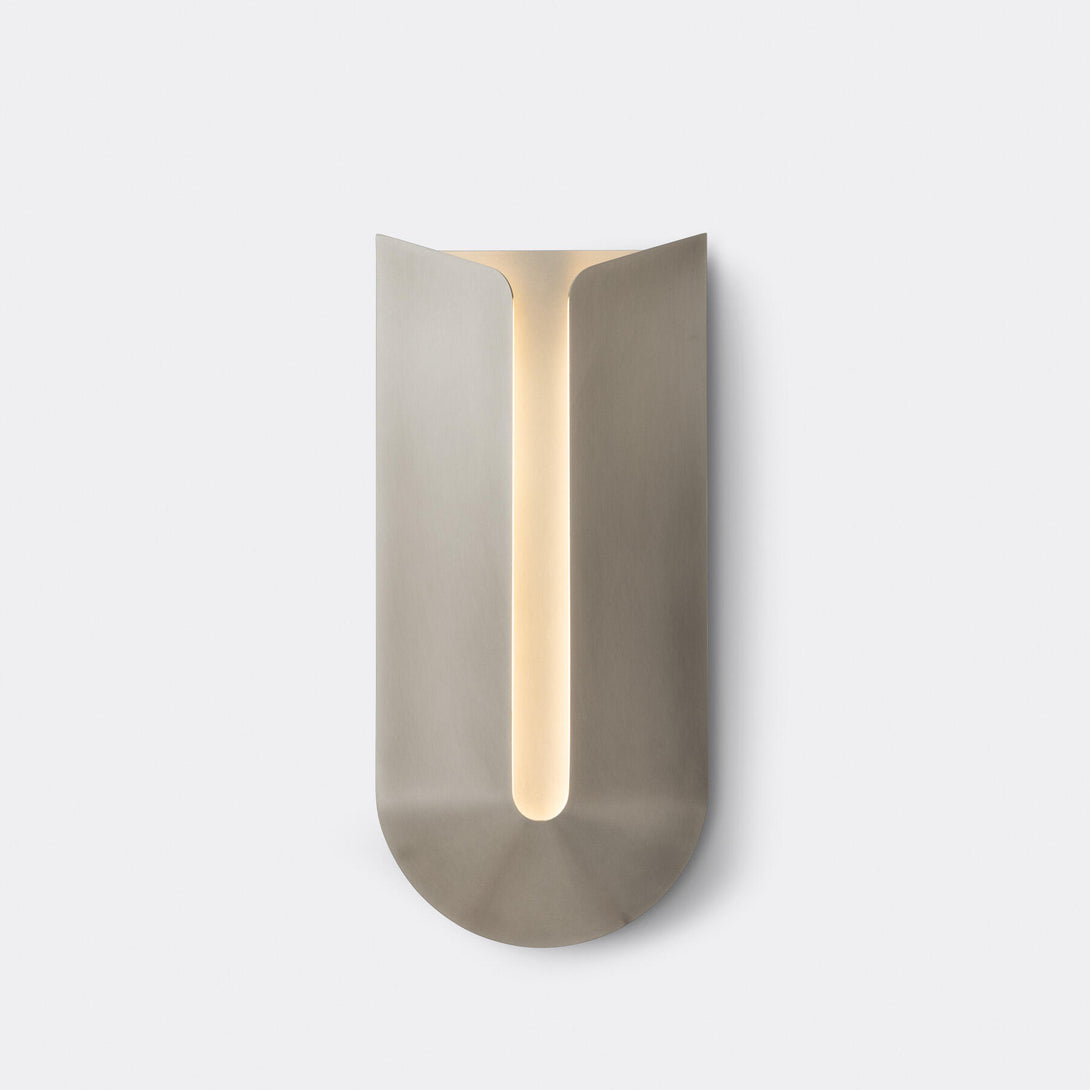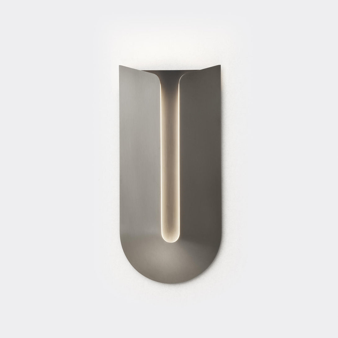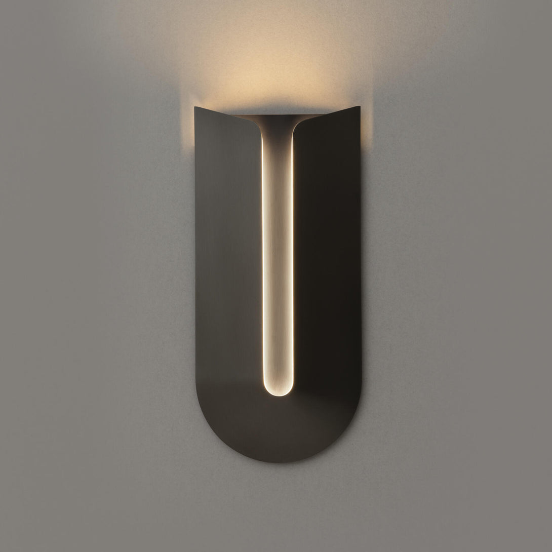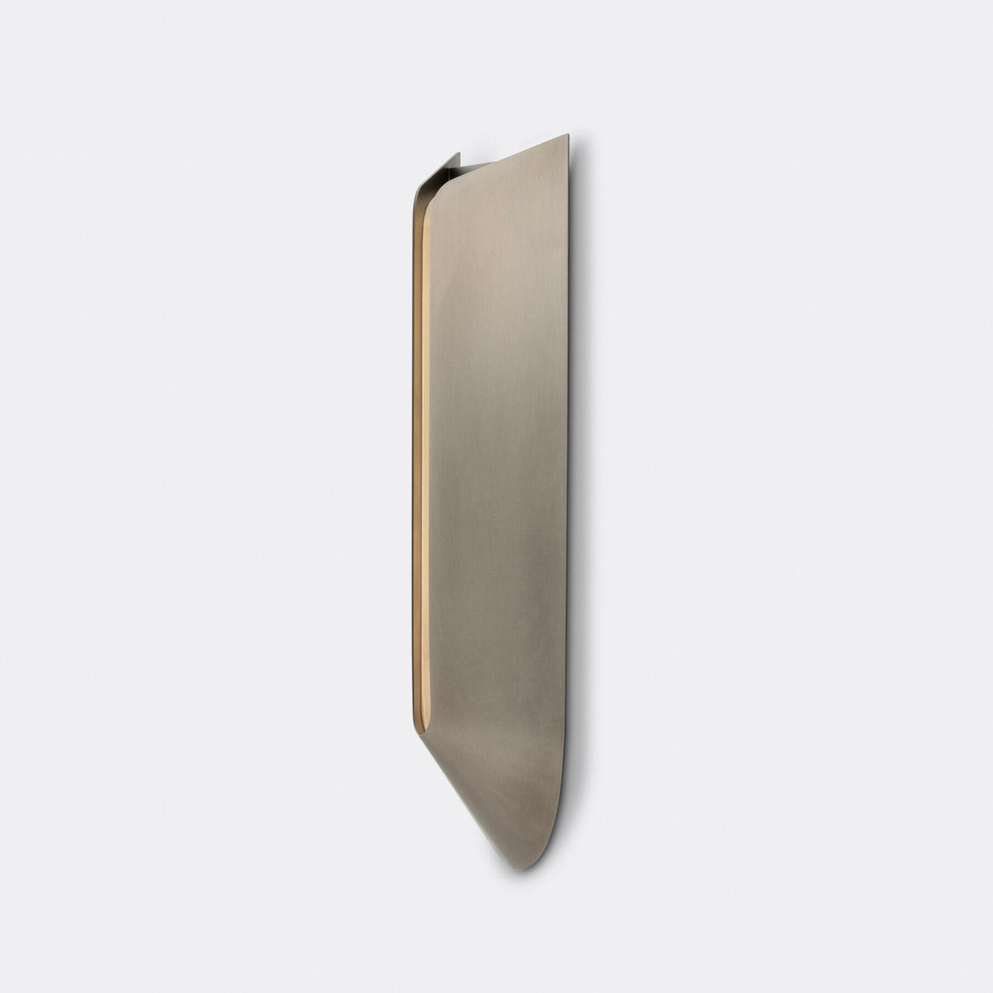 Cove is a low-profile but sizable sconce, with a minimal design that celebrates form and materiality in seemingly endless combinations. Whether mounted to wash light from above or below, the architectural curves of this ADA-compliant piece gently extend from a wall, accented by a range of metal finishes.